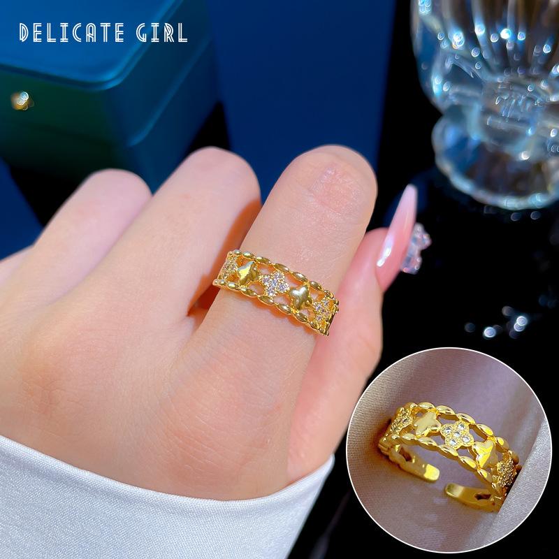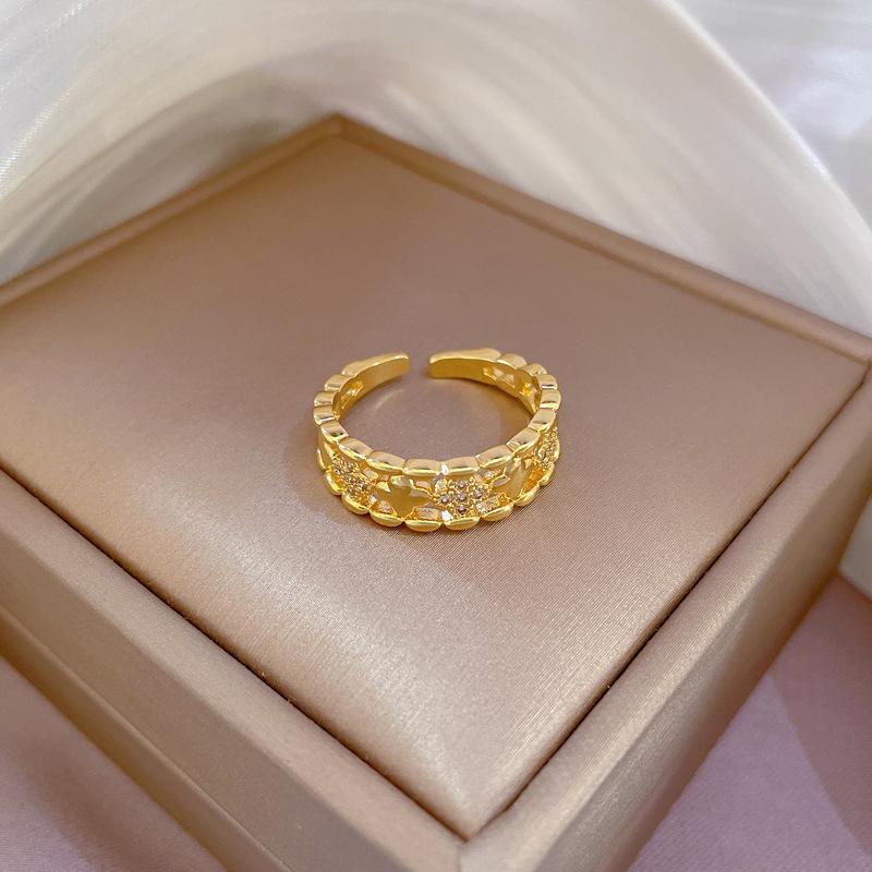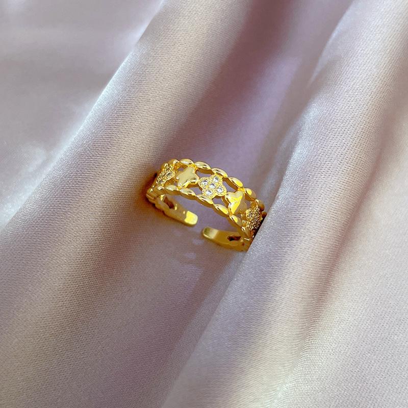 [Oro Real] Anillo de Flor de la Suerte de Lujo Ligero Abierto Ajustable Joyería Simple Anillo Japonés Anillo de Pareja