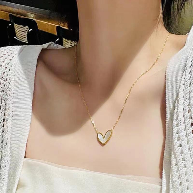 Collar de acero de titanio con colgante de corazón de fritilaria blanca de lujo ligero de nicho para mujer 2022, nuevo diseño avanzado, cadena de clavícula simple