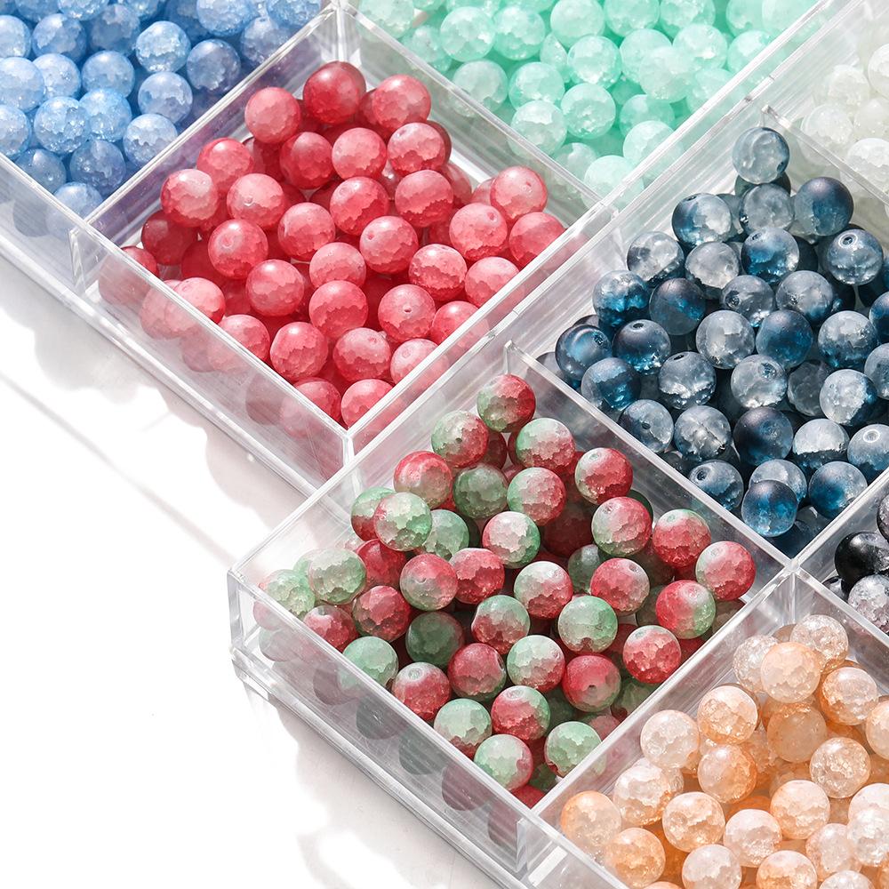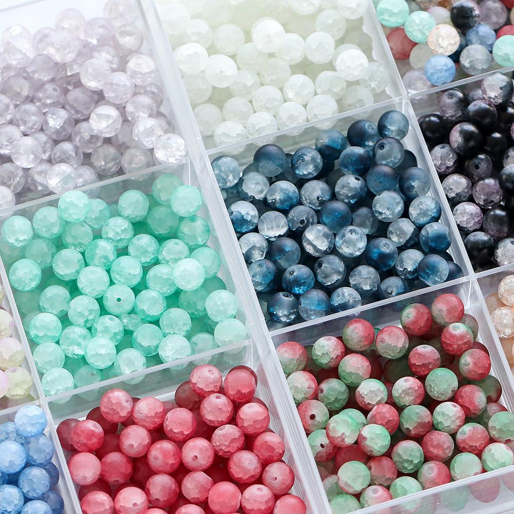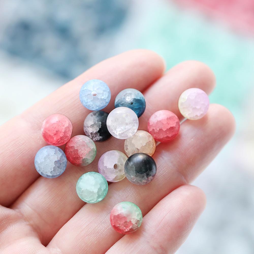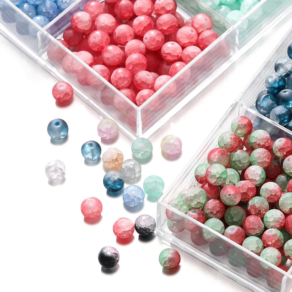Cuentas de vidrio esmerilado 2024, cuentas bicolores a juego, cuentas con efecto hielo agrietado, accesorios para pulseras de bricolaje, cuentas sueltas, cuentas redondas