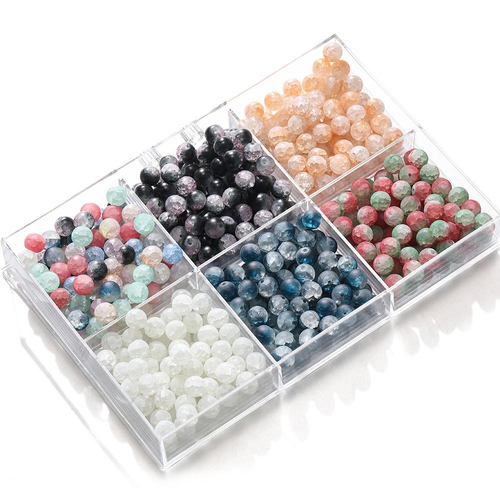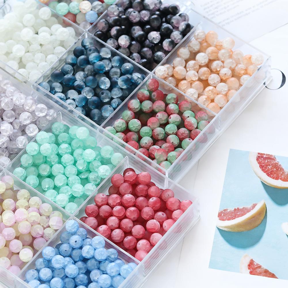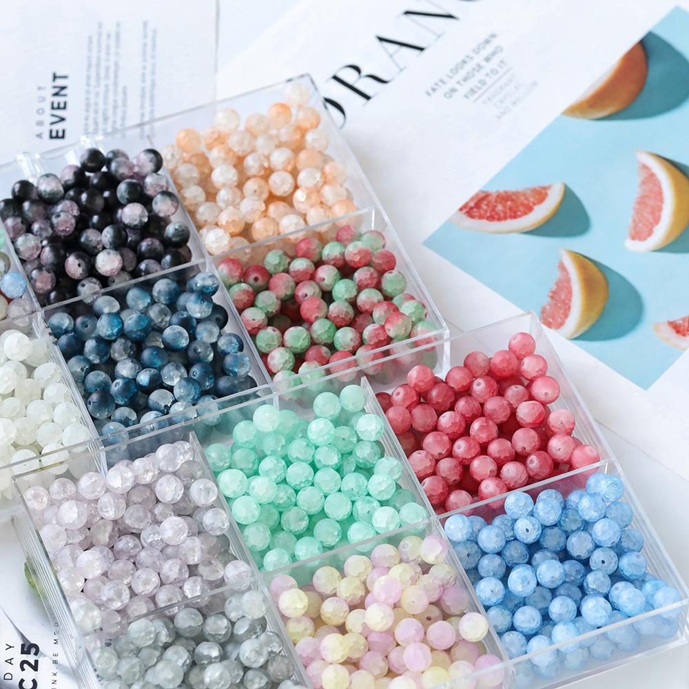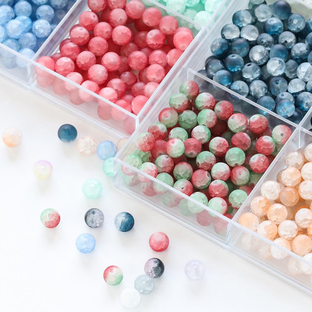 Cuentas de vidrio esmerilado 2024, cuentas bicolores a juego, cuentas con efecto hielo agrietado, accesorios para pulseras de bricolaje, cuentas sueltas, cuentas redondas