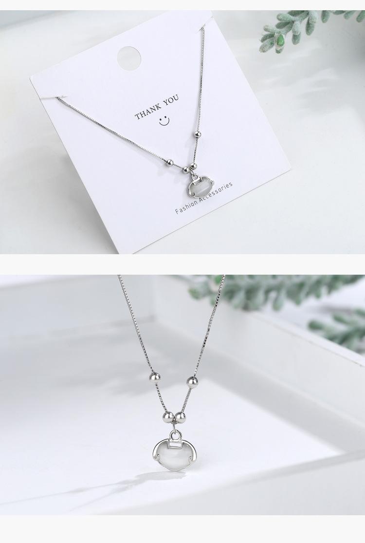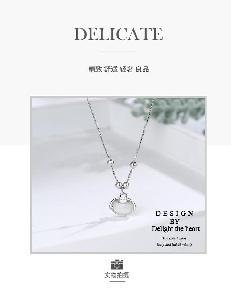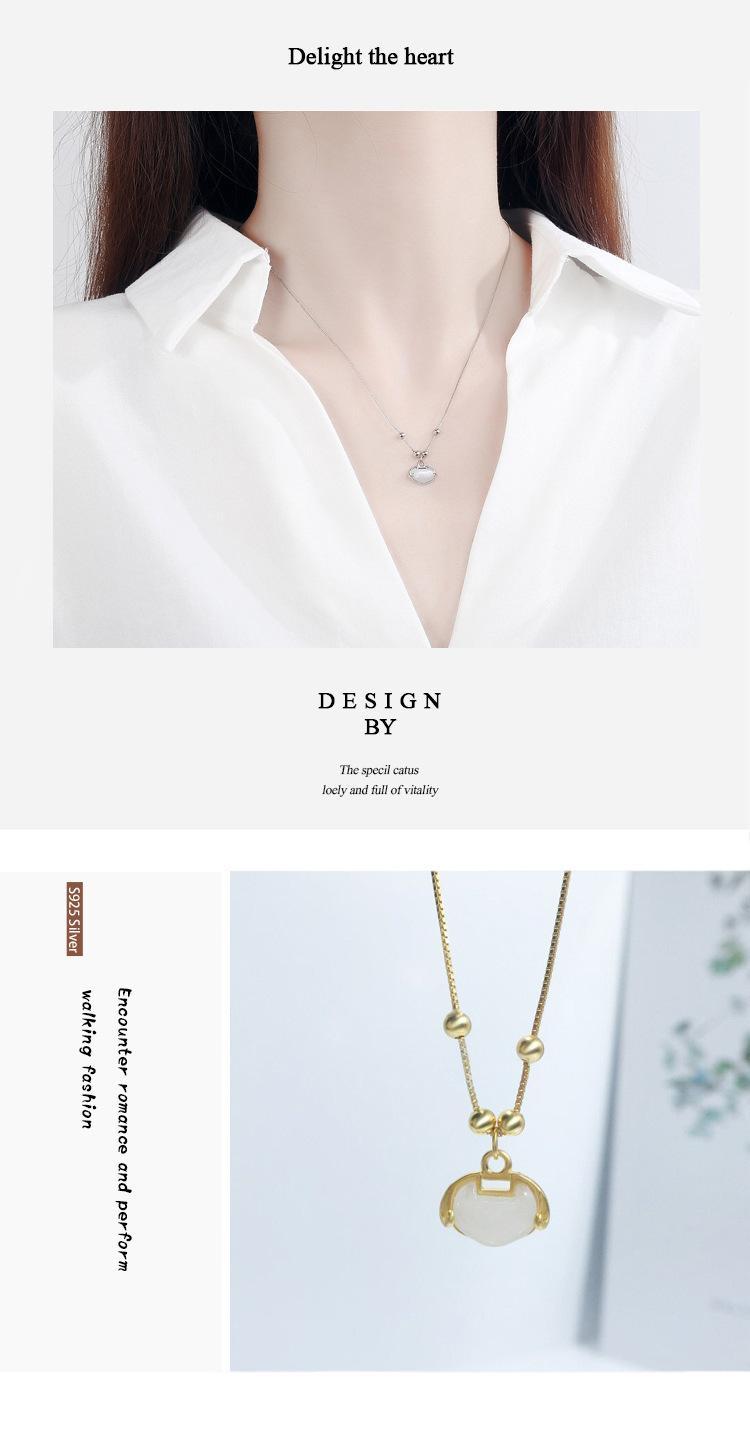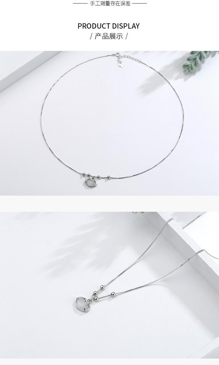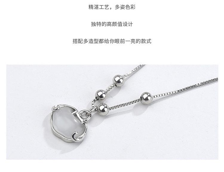 Collar auspicioso para mujer Candado Ruyi simple retro fresco ojo de gato candado de larga vida cadena clavicular de cuentas redondas