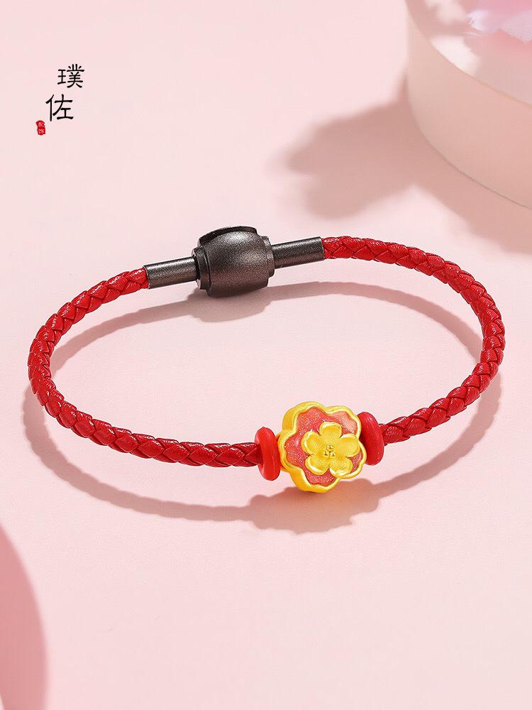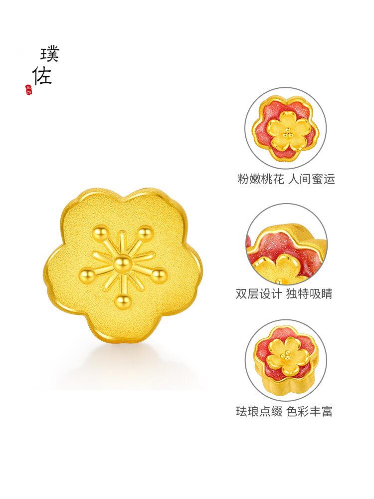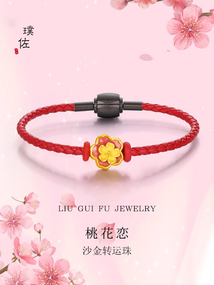 Tienda de oro con cuentas de transferencia de oro y arena, cuentas de esmalte de flor de durazno, accesorios de bricolaje, pulsera, pulsera, regalo para novia