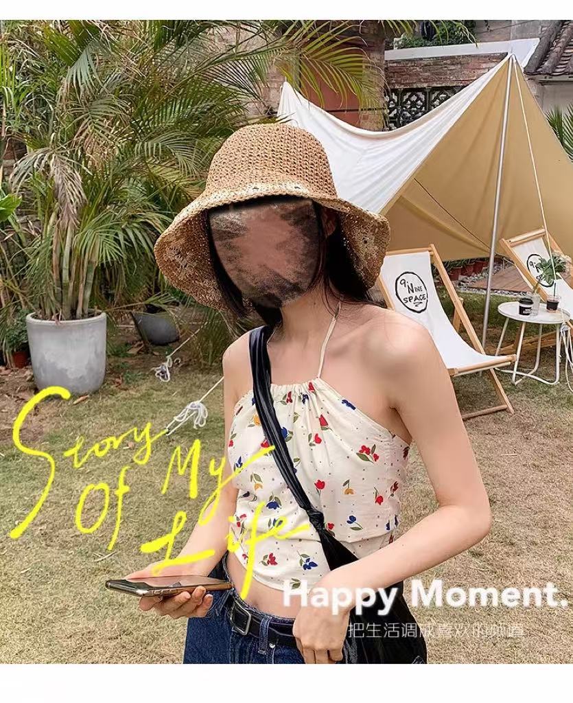 Sombrero de paja de ala ancha de verano, tejido a mano, para exteriores, vacaciones, playa, protector solar, resistente a los rayos UV, sombrero de protección facial, moda femenina