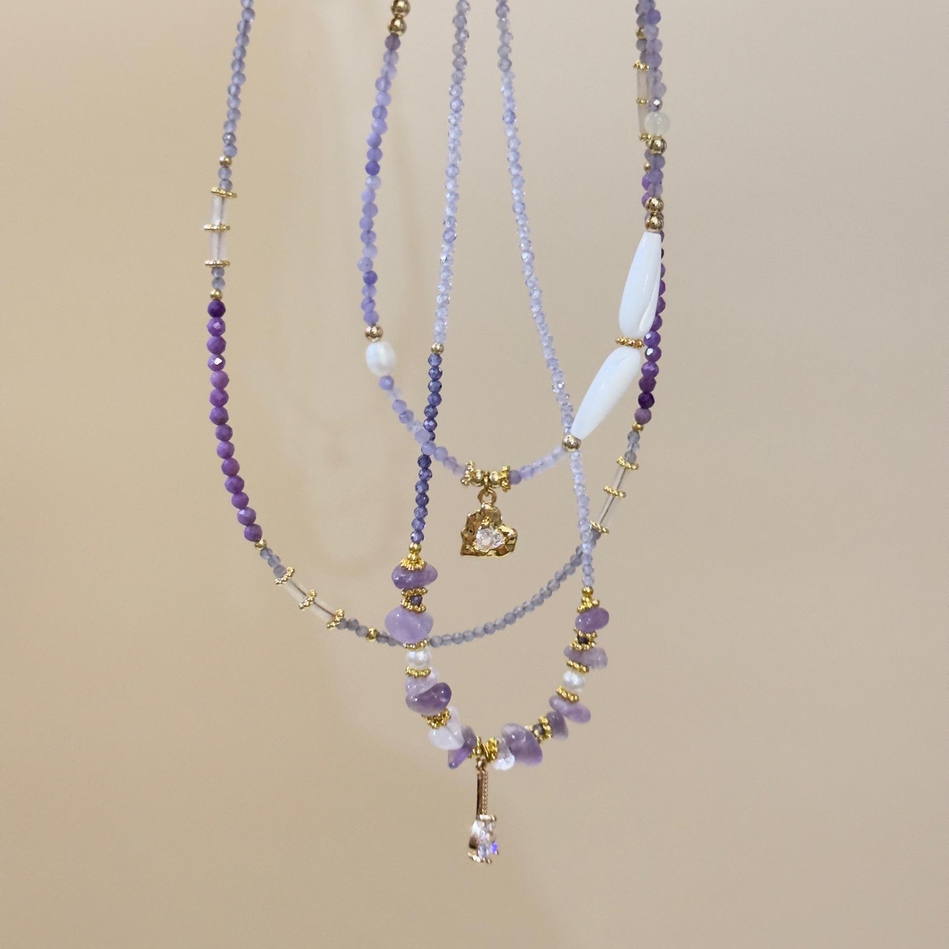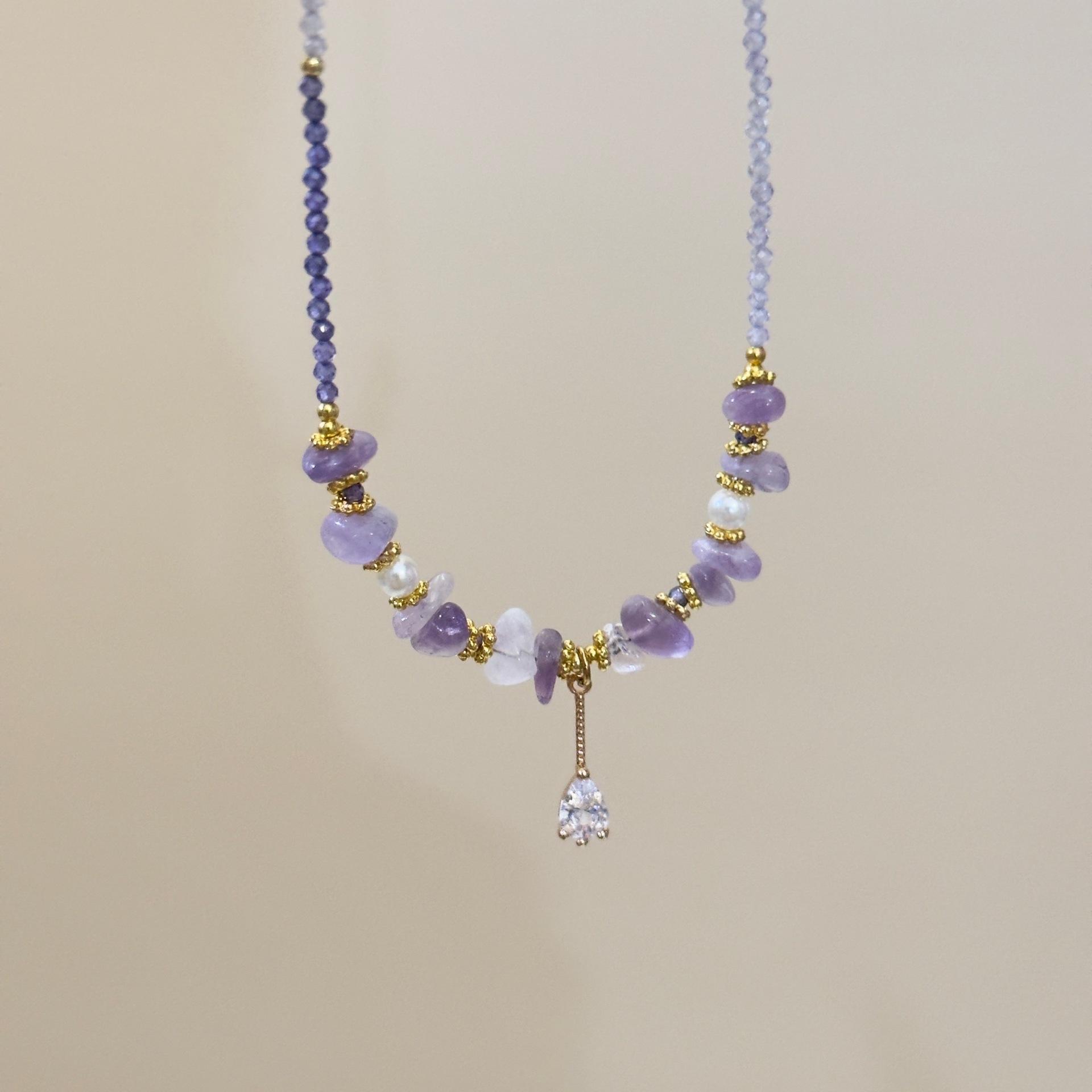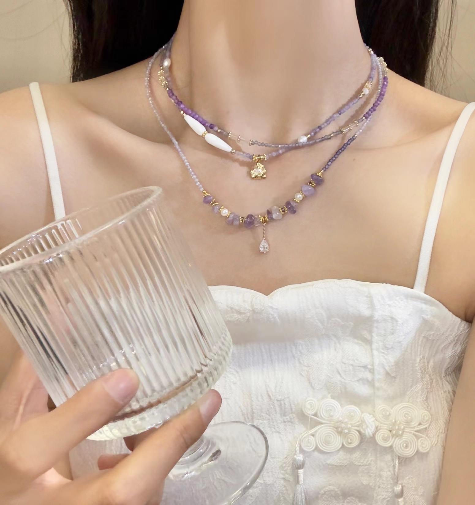 Cadena de cuello de perlas naturales exquisitas de estilo nicho, nuevo estilo chino, amatista natural, temperamento dulce original, cuentas de dopamina