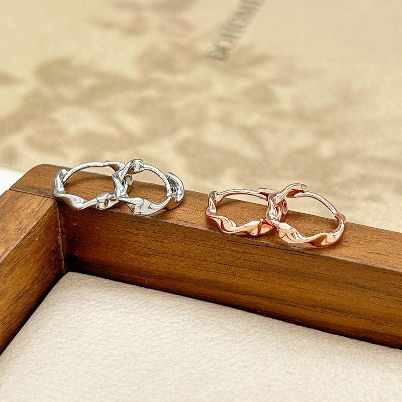 Pendientes de plata de ley S925 para niñas, elegantes pendientes de botón de moda Moebius con diseño de ondas de nicho avanzado y hebilla para la oreja.