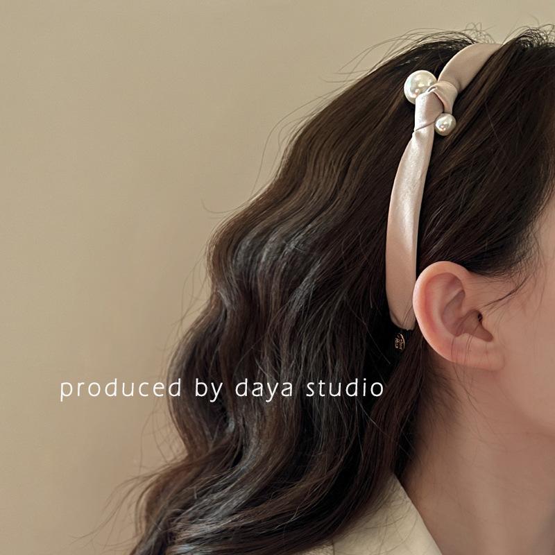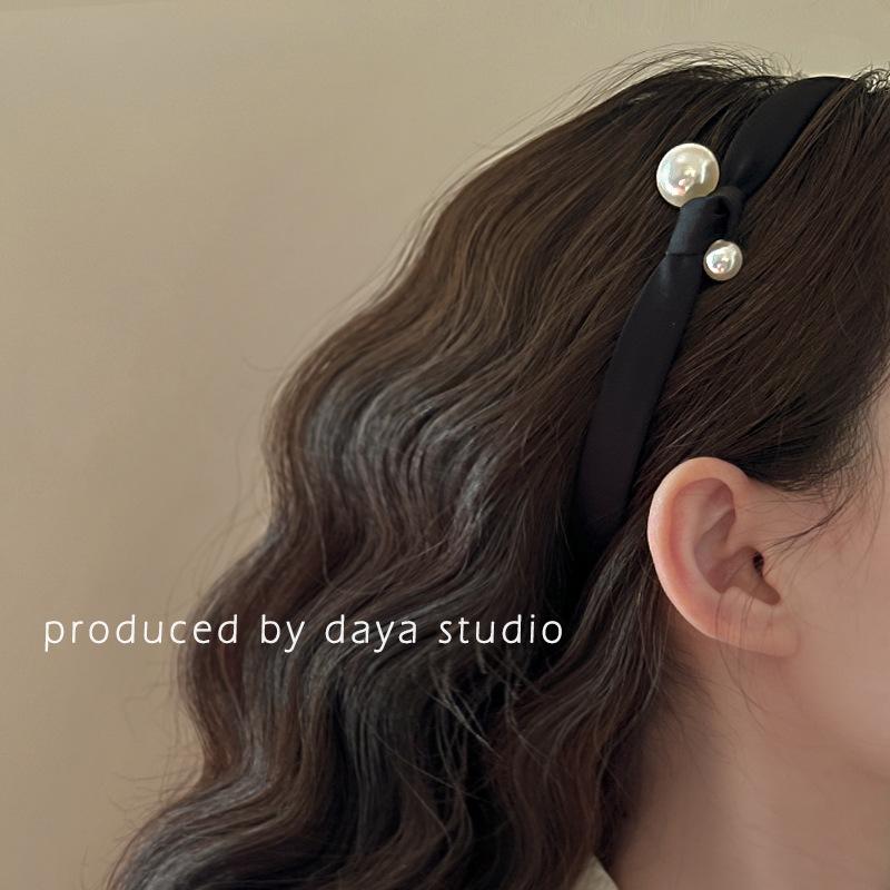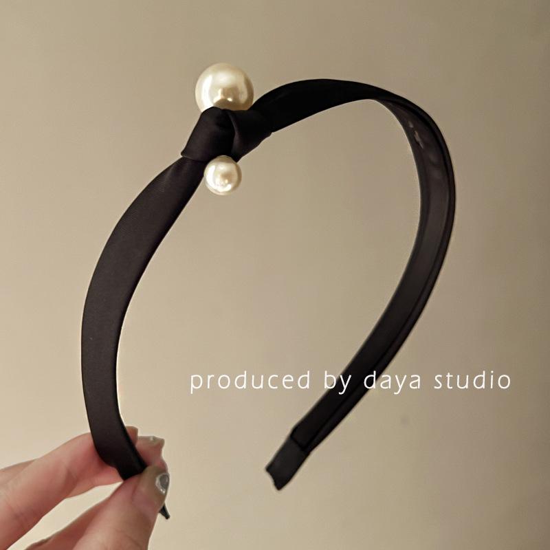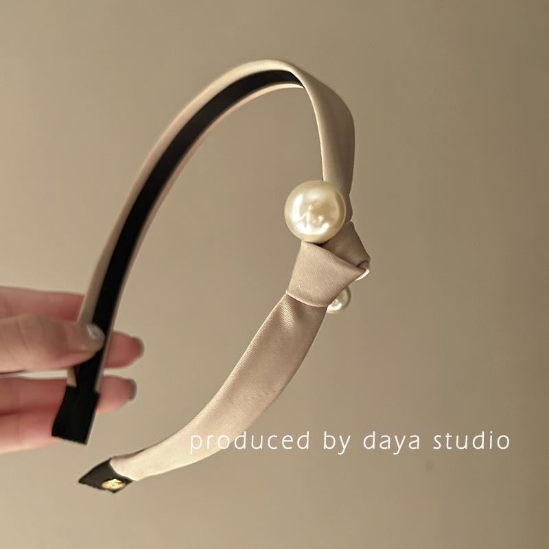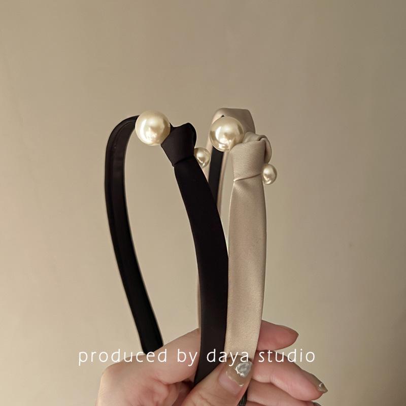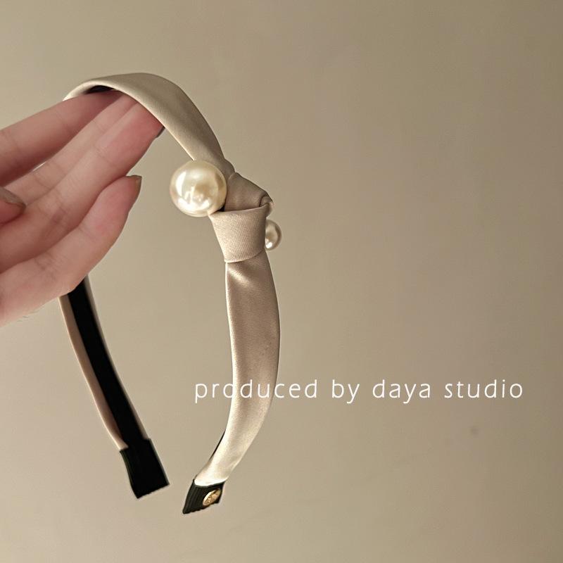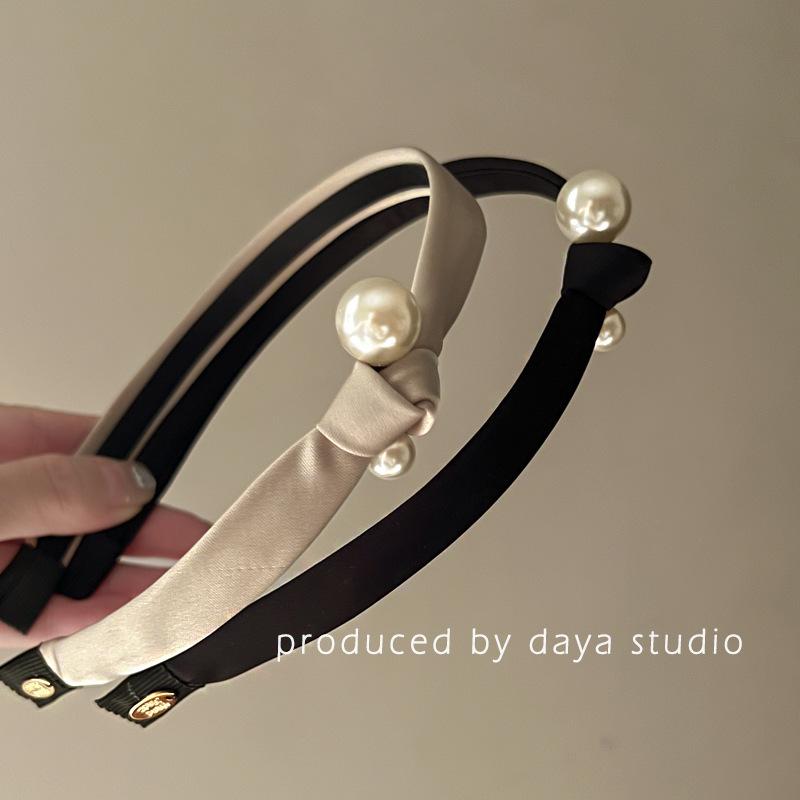 2025 Nueva Diadema Retro Francesa de Satén Accesorio para el Cabello con Nudo Perla Diadema Fina Diadema de Temperamento para Mujer de Alta Gama