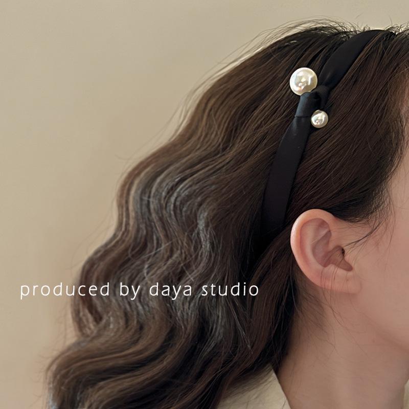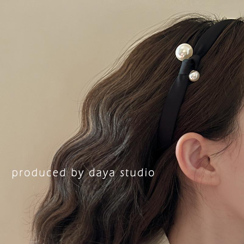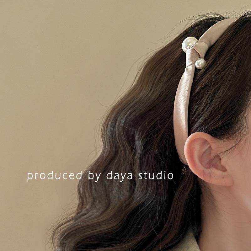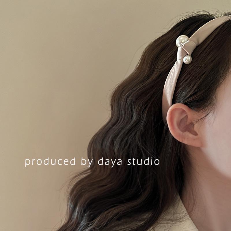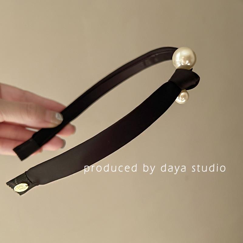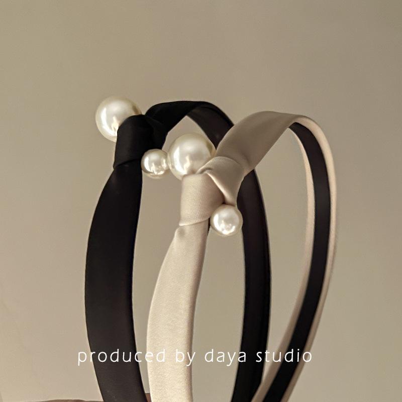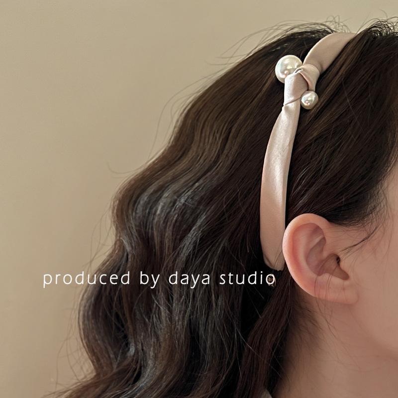 2025 Nueva Diadema Retro Francesa de Satén Accesorio para el Cabello con Nudo Perla Diadema Fina Diadema de Temperamento para Mujer de Alta Gama