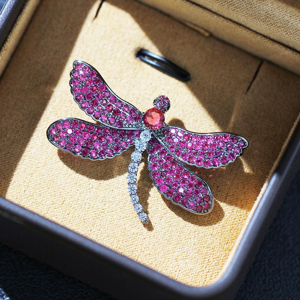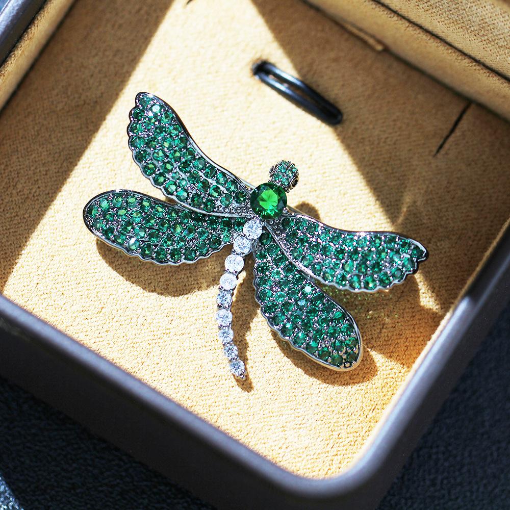Broche de libélula de dos colores, de alta gama, ligero y lujoso, con nicho de insecto galvanizado negro, accesorio de traje para hombres y mujeres.