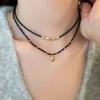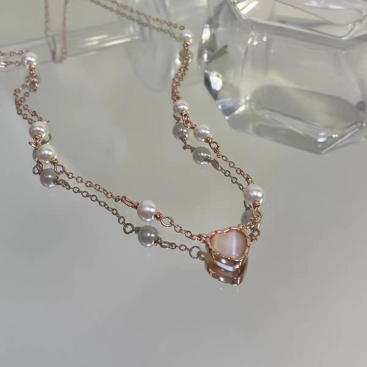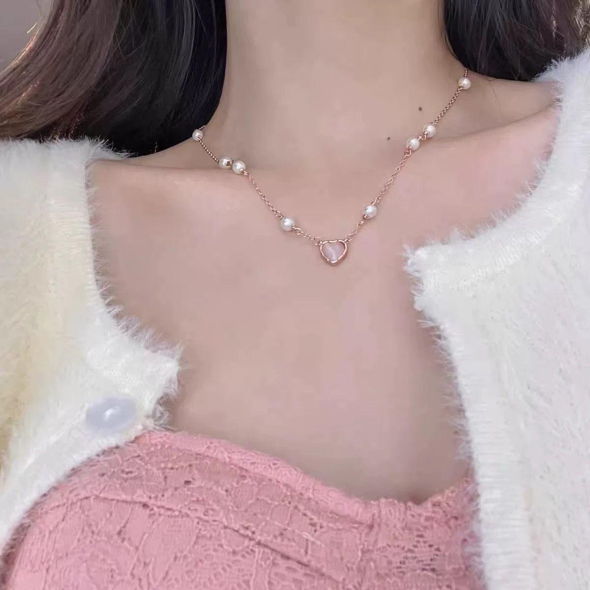Collar de Amor Ojo de Gato Estilo Frío para Mujer Diseño Nicho de Lujo Ligero Cadena Clavícula de Perlas Collar de Cristal Collar para Mujer