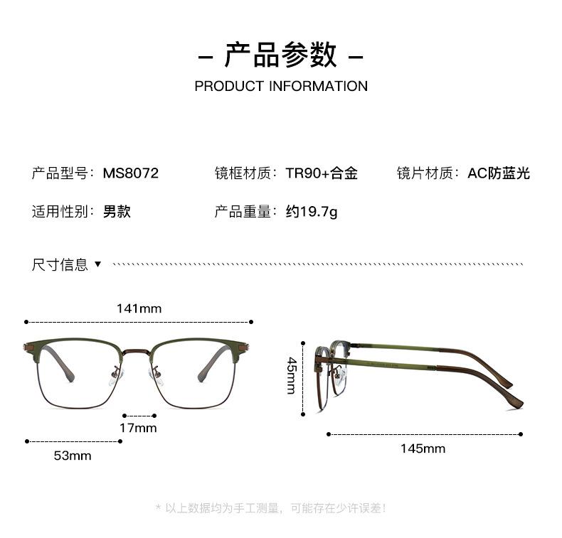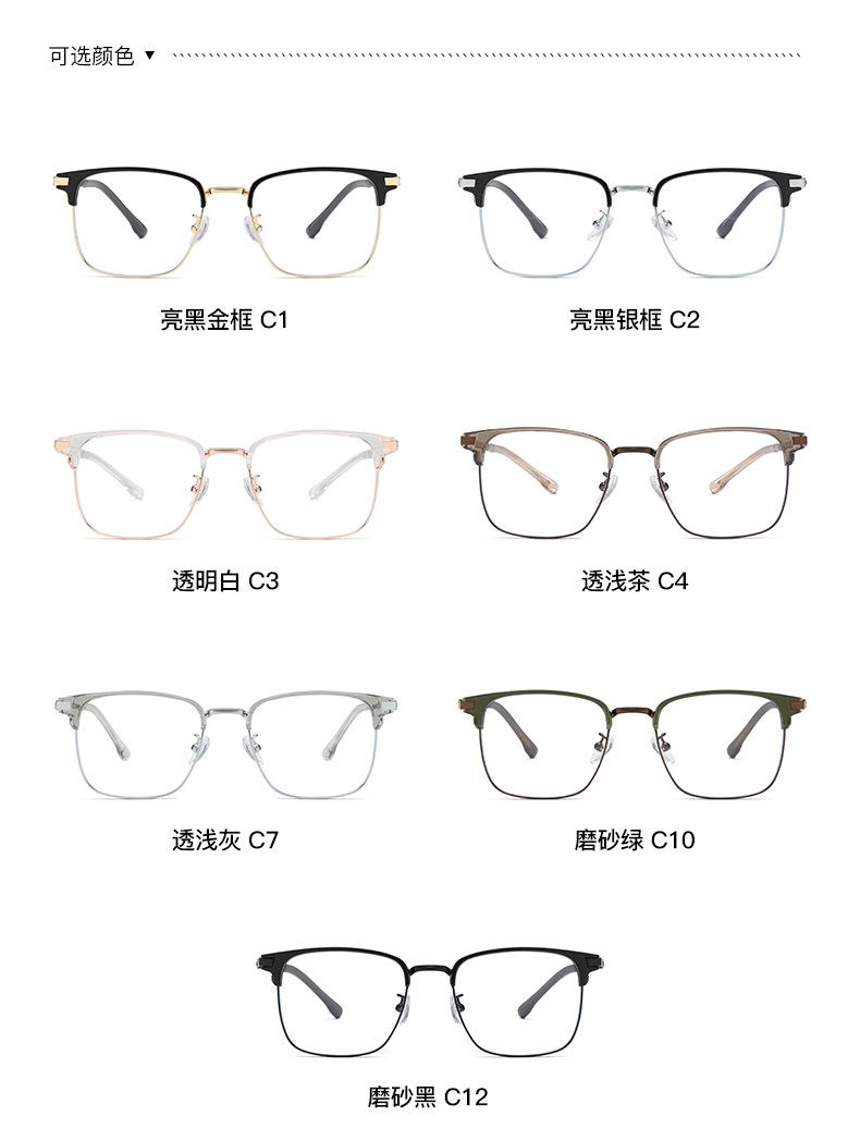 Bright black gold frame C1, Bright Black Silver Frame C2, C3., Shallow Tea C4, Transparent light gray C7, Fros...