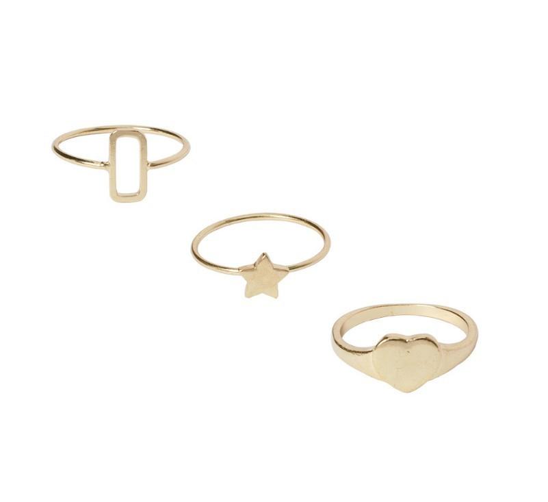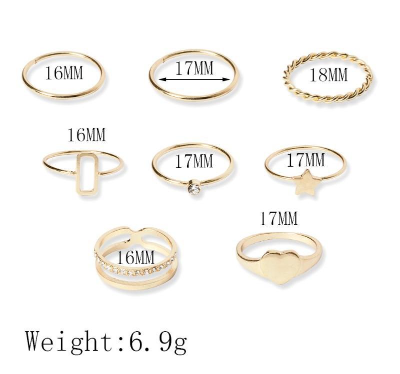 Juego de 8 anillos europeos y americanos retro dorados simples de amor estrella geométricos trenzados transfronterizos