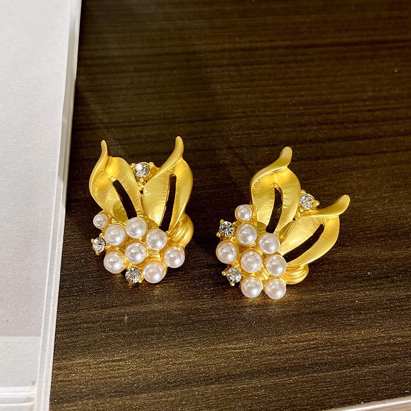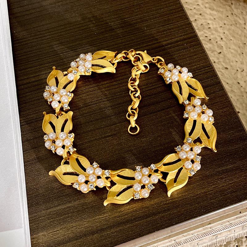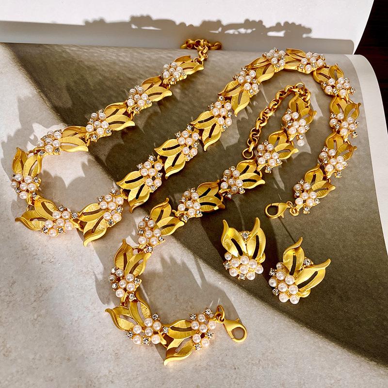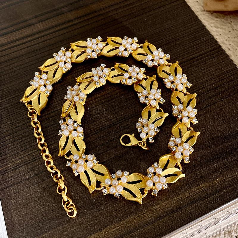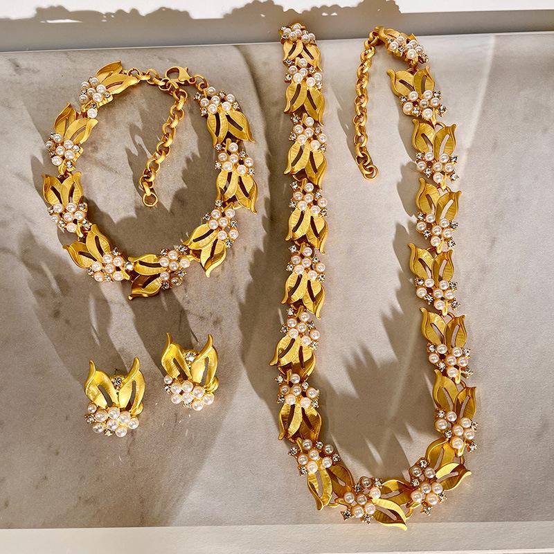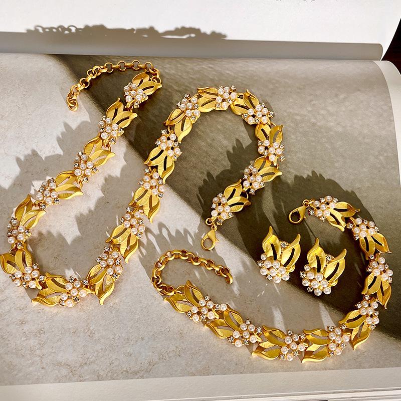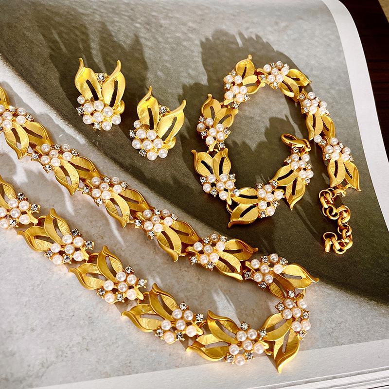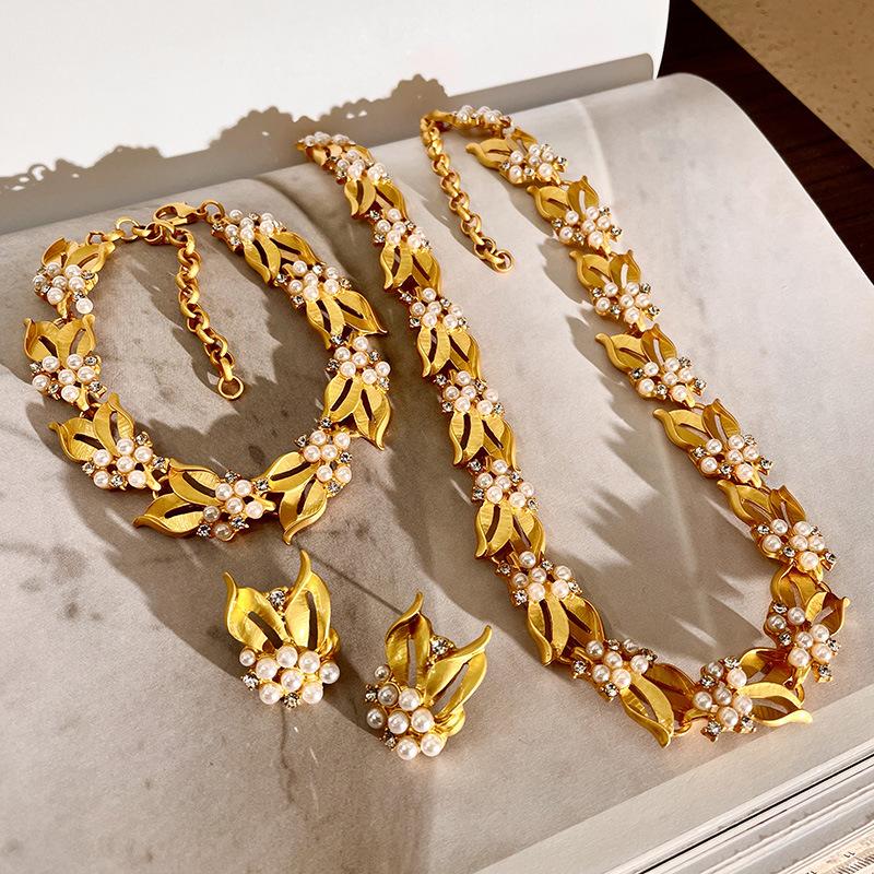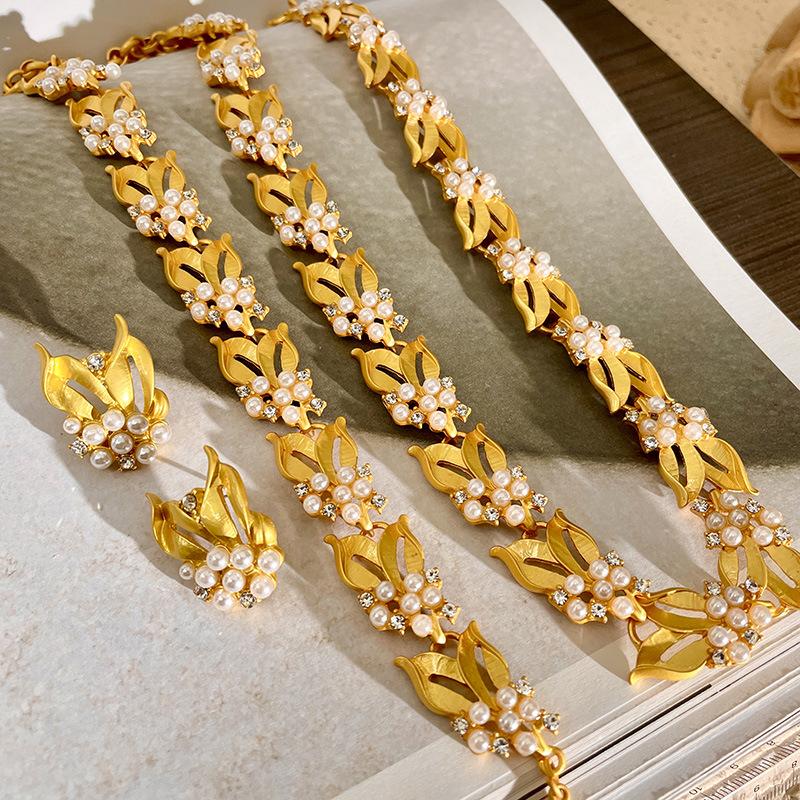 Collar de osmanthus con diseño de nicho retro francés, espigas de trigo doradas, pulsera de diamantes con destellos de perla, pendientes de alta calidad, cadena de clavícula