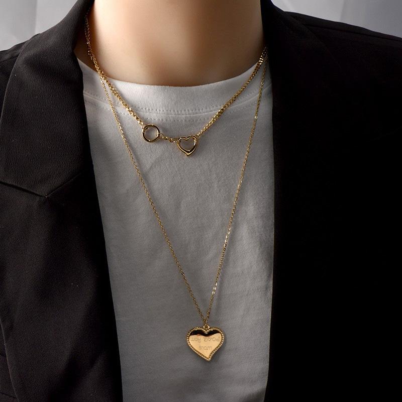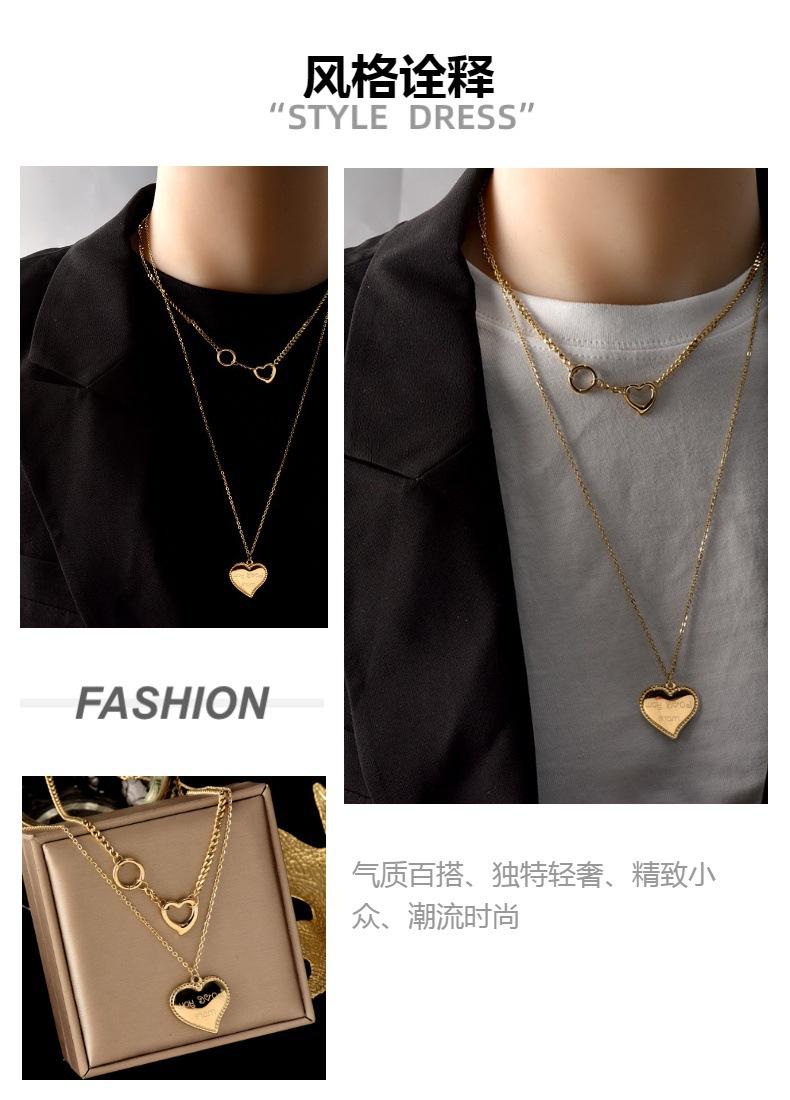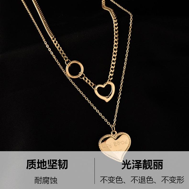 Europeo y Americano Transfronterizo Acero de Titanio de Doble Capa No Decolorable Moda Versátil Simple Colgante con Inscripción Love Irregular Collar