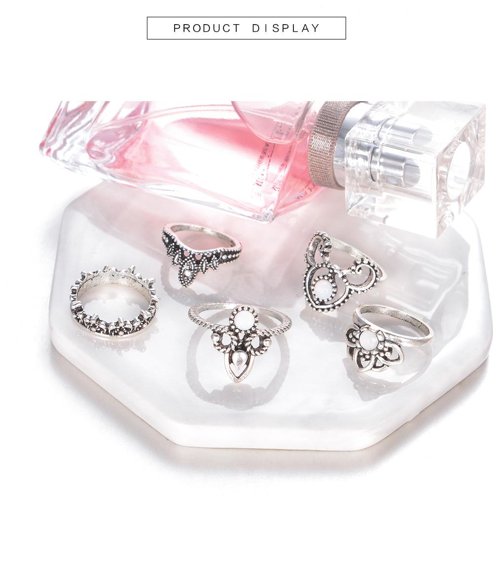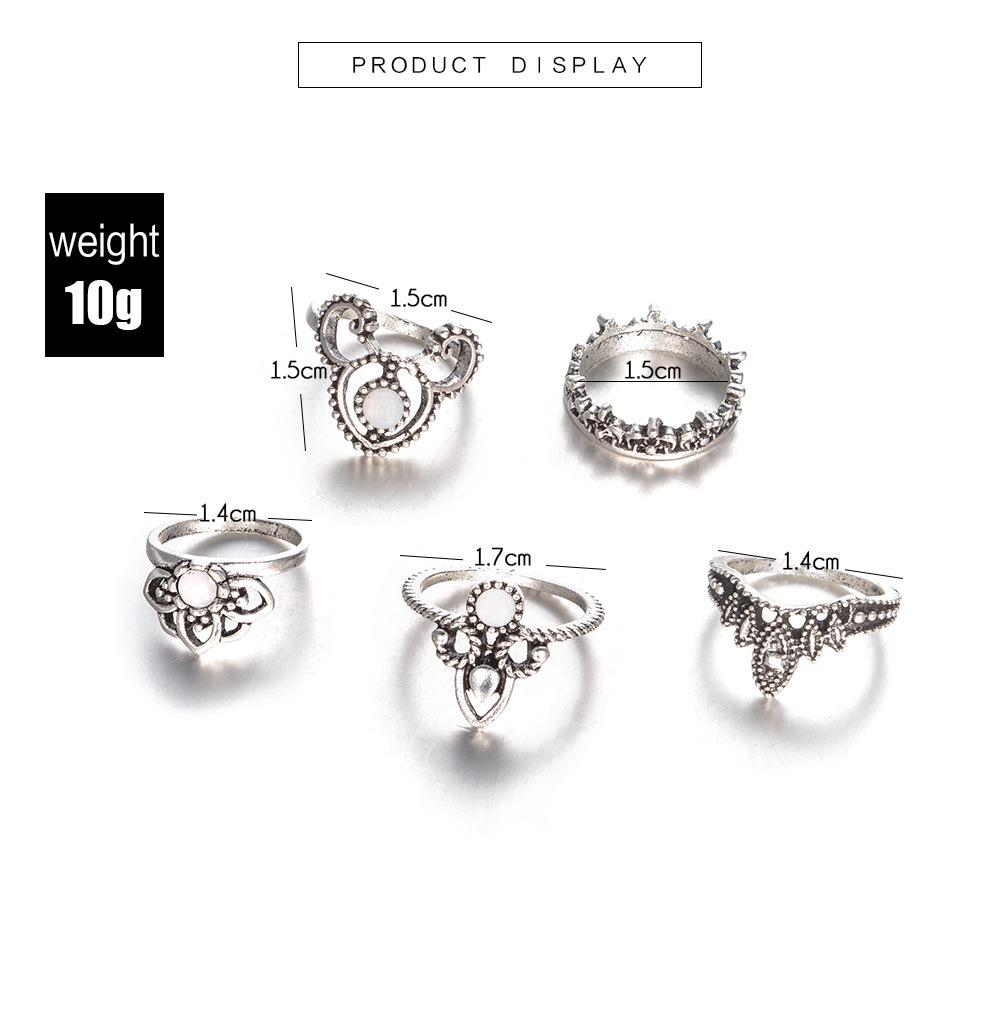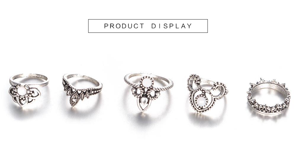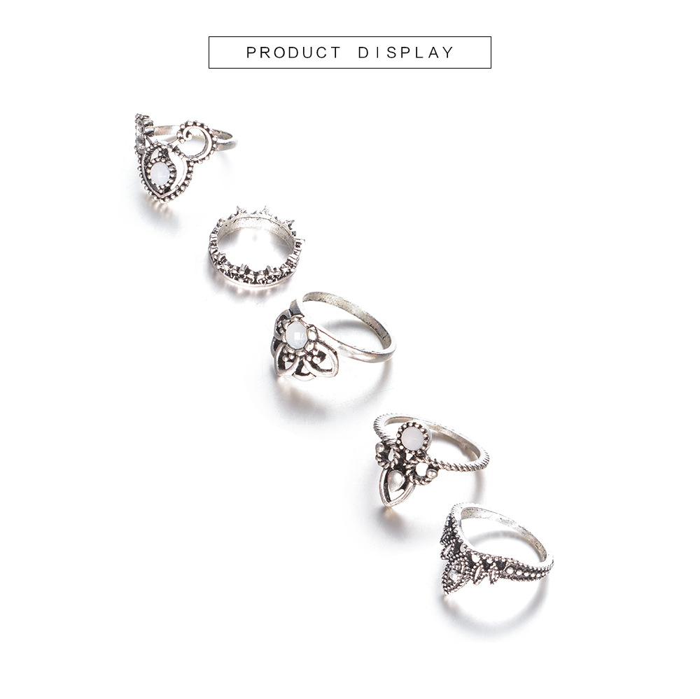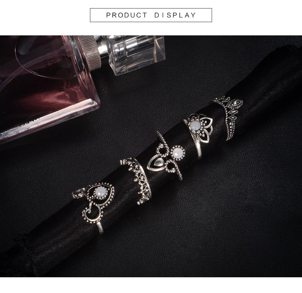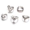 Nuevo lanzamiento en Europa y Estados Unidos, anillo de unión tallado hueco con gemas incrustadas retro, combinación de 5 piezas