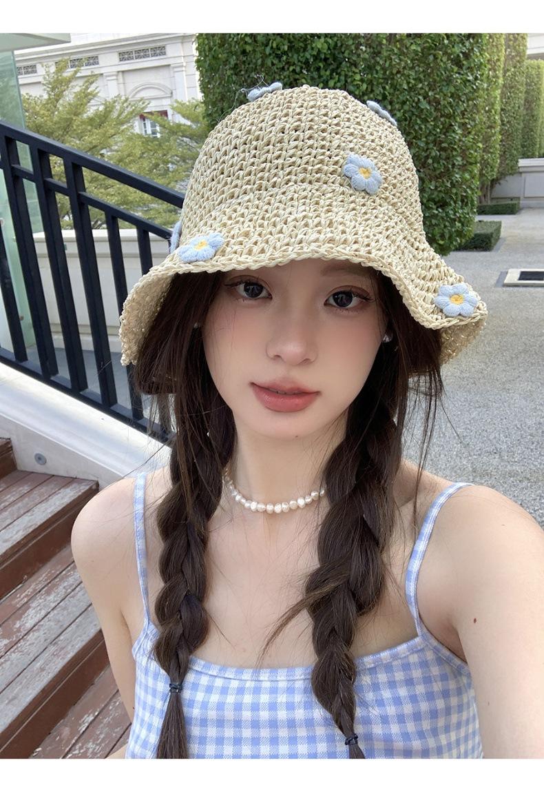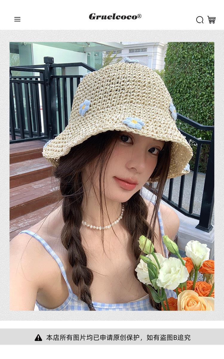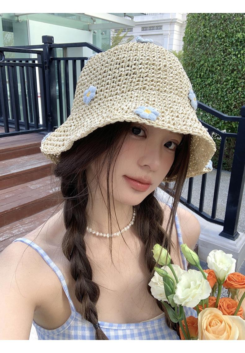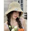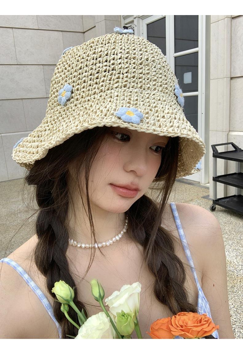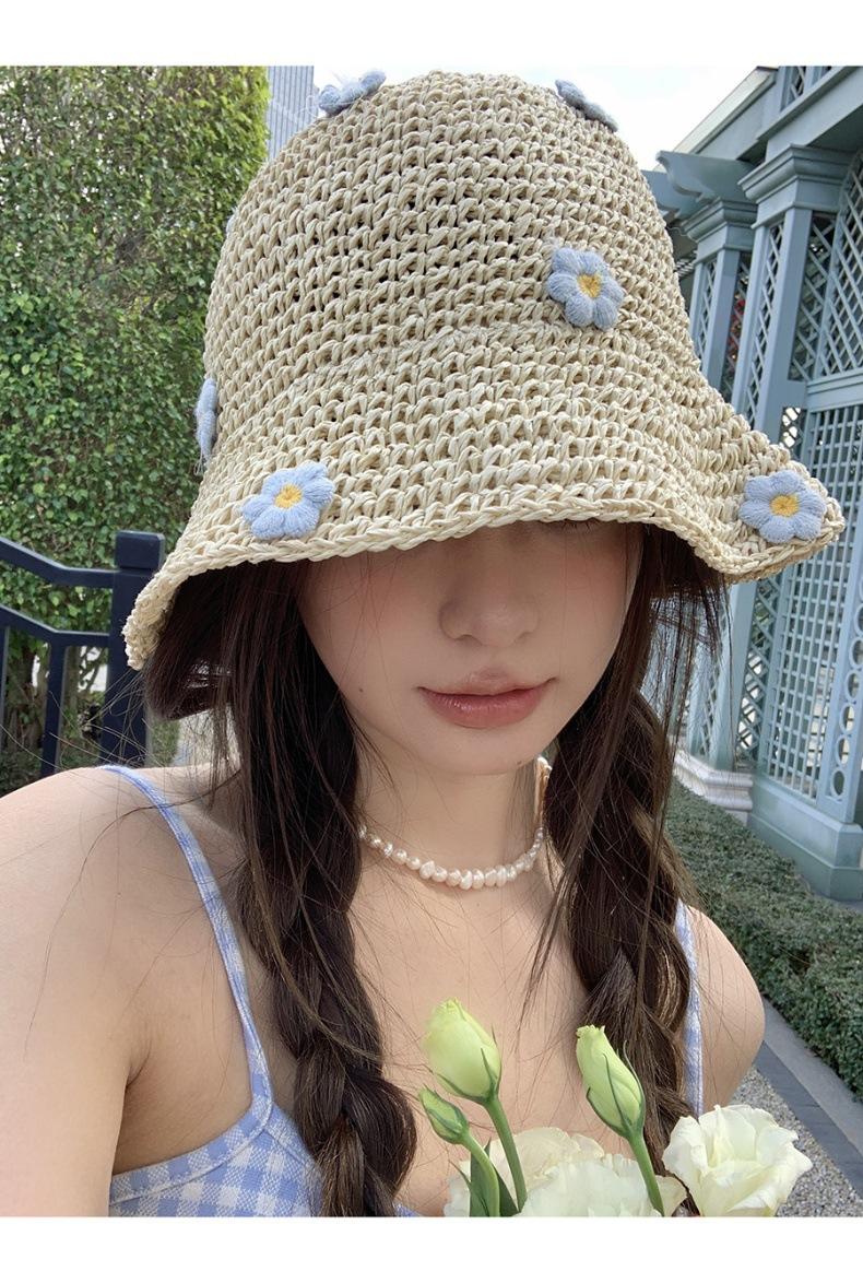 Sombrero de pescador de paja de flores para mujer primavera y verano hueco transpirable protección solar sombrero de paja sombrero de cubo que hace que la cara se vea pequeña sombrero de cuenco