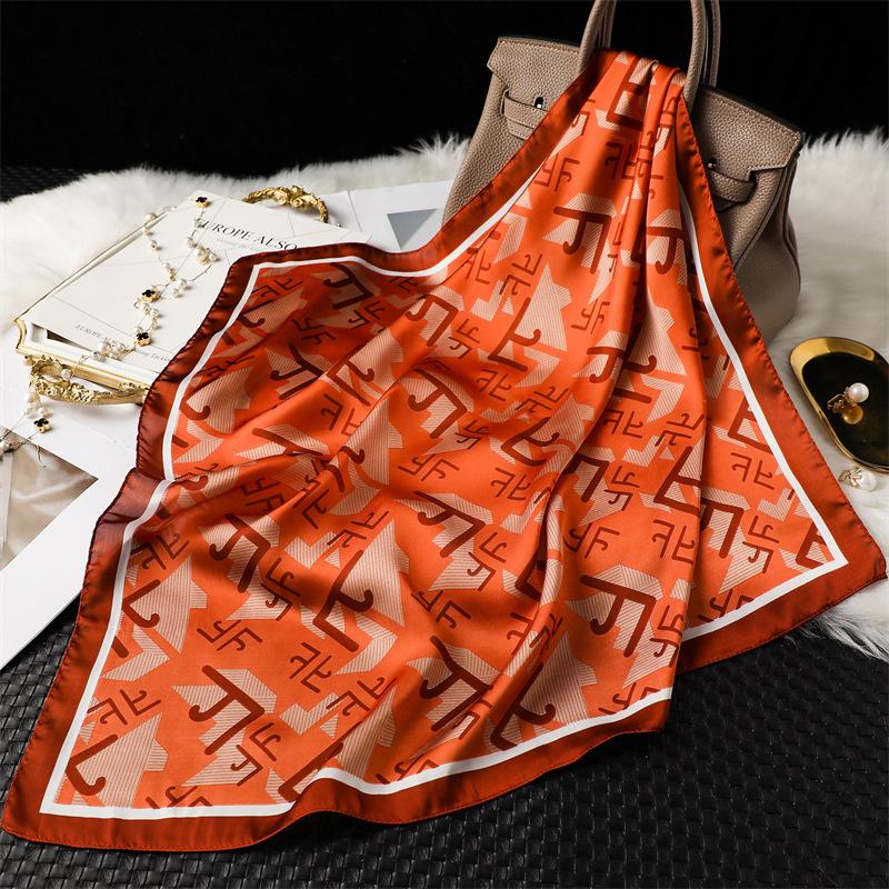 Bufanda cuadrada elegante estampada de estilo coreano de seda artificial de 70 cm, bufanda versátil de viaje para mujer, bufanda, chal protector solar