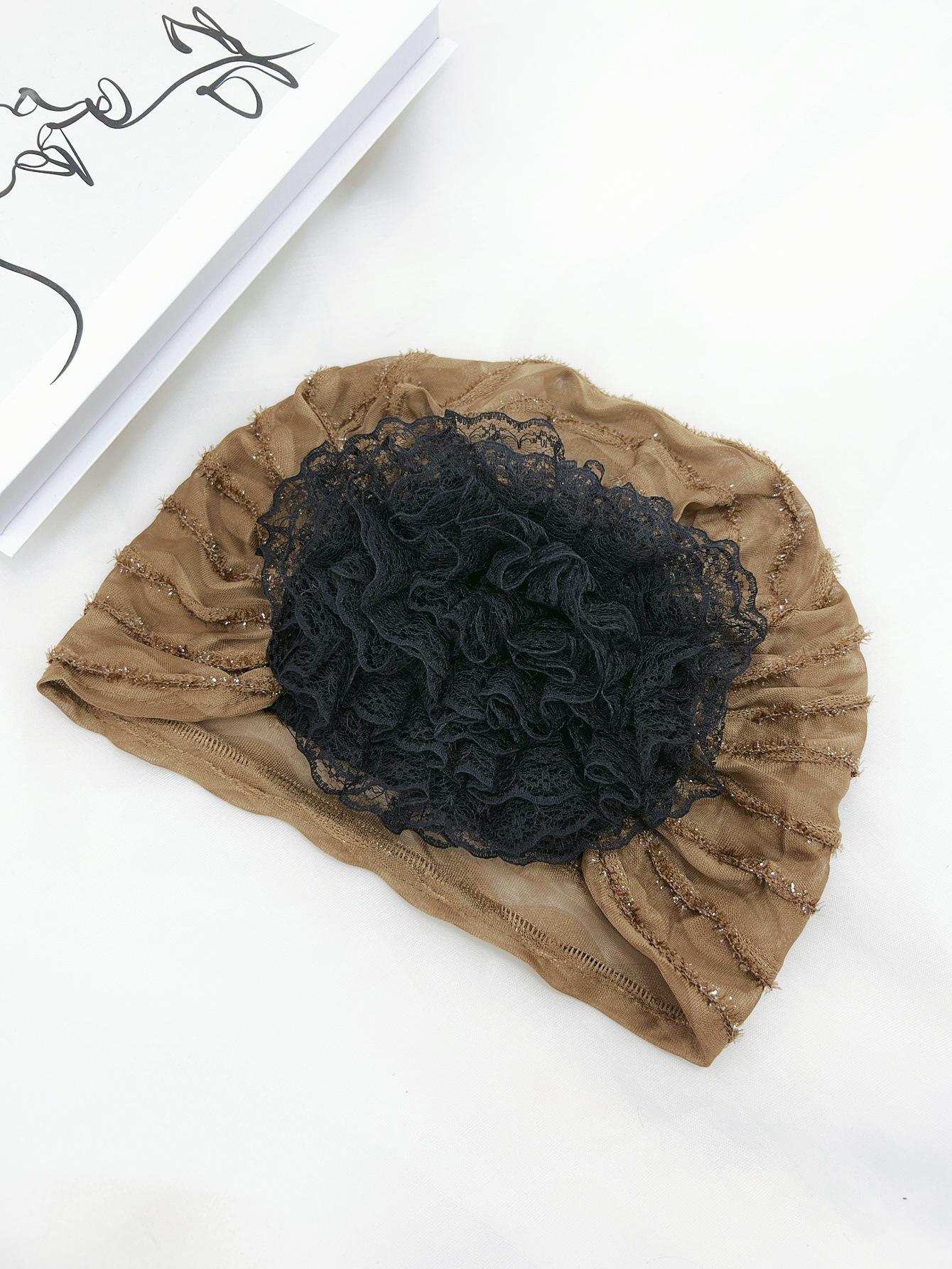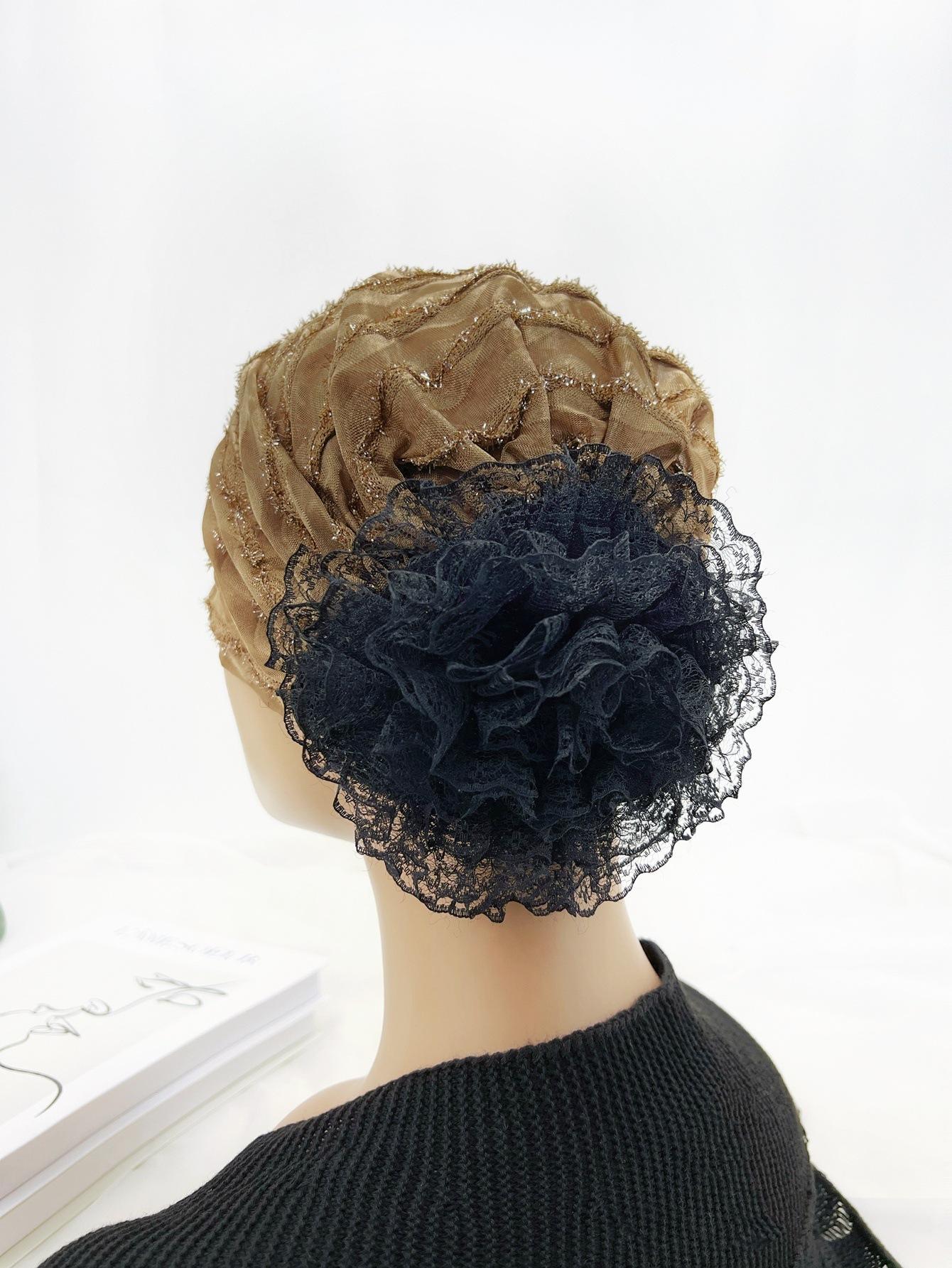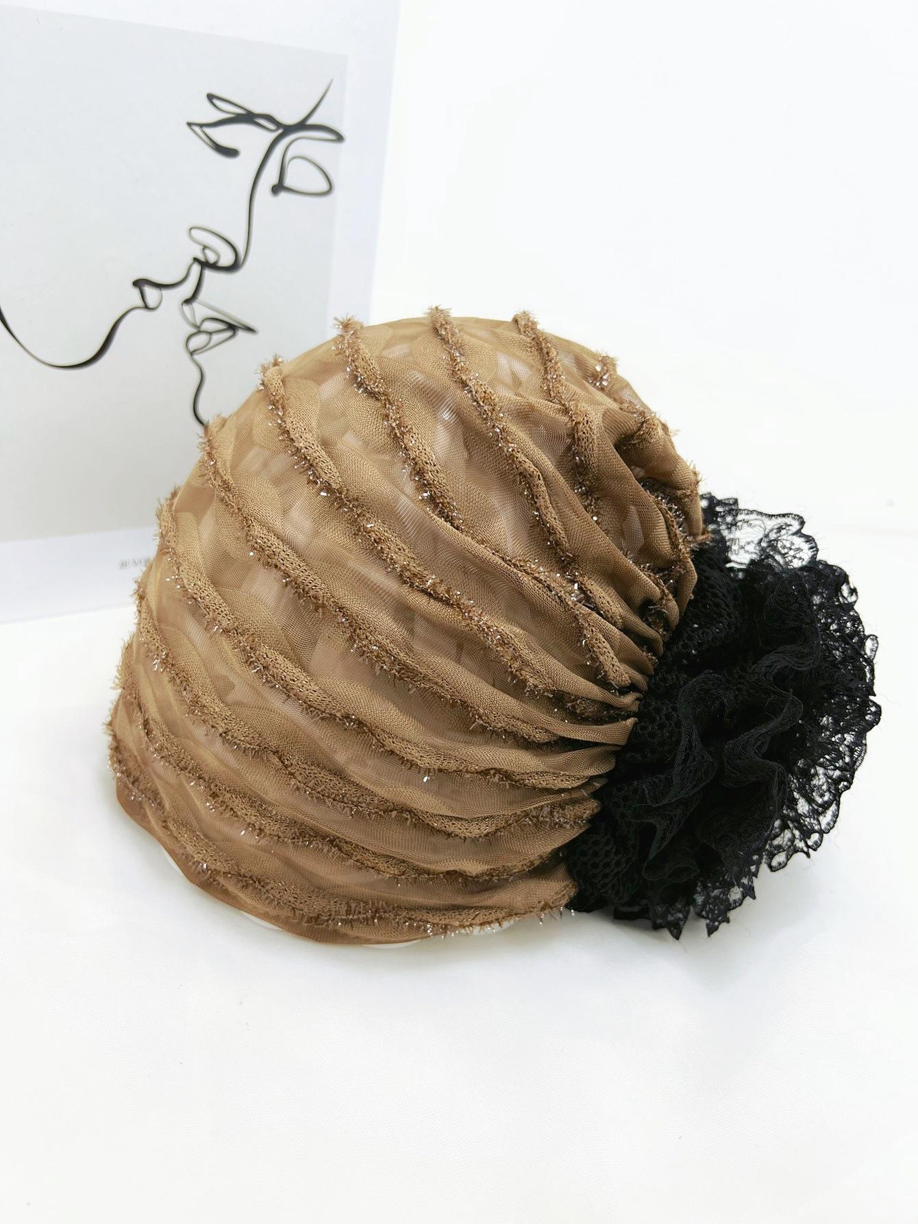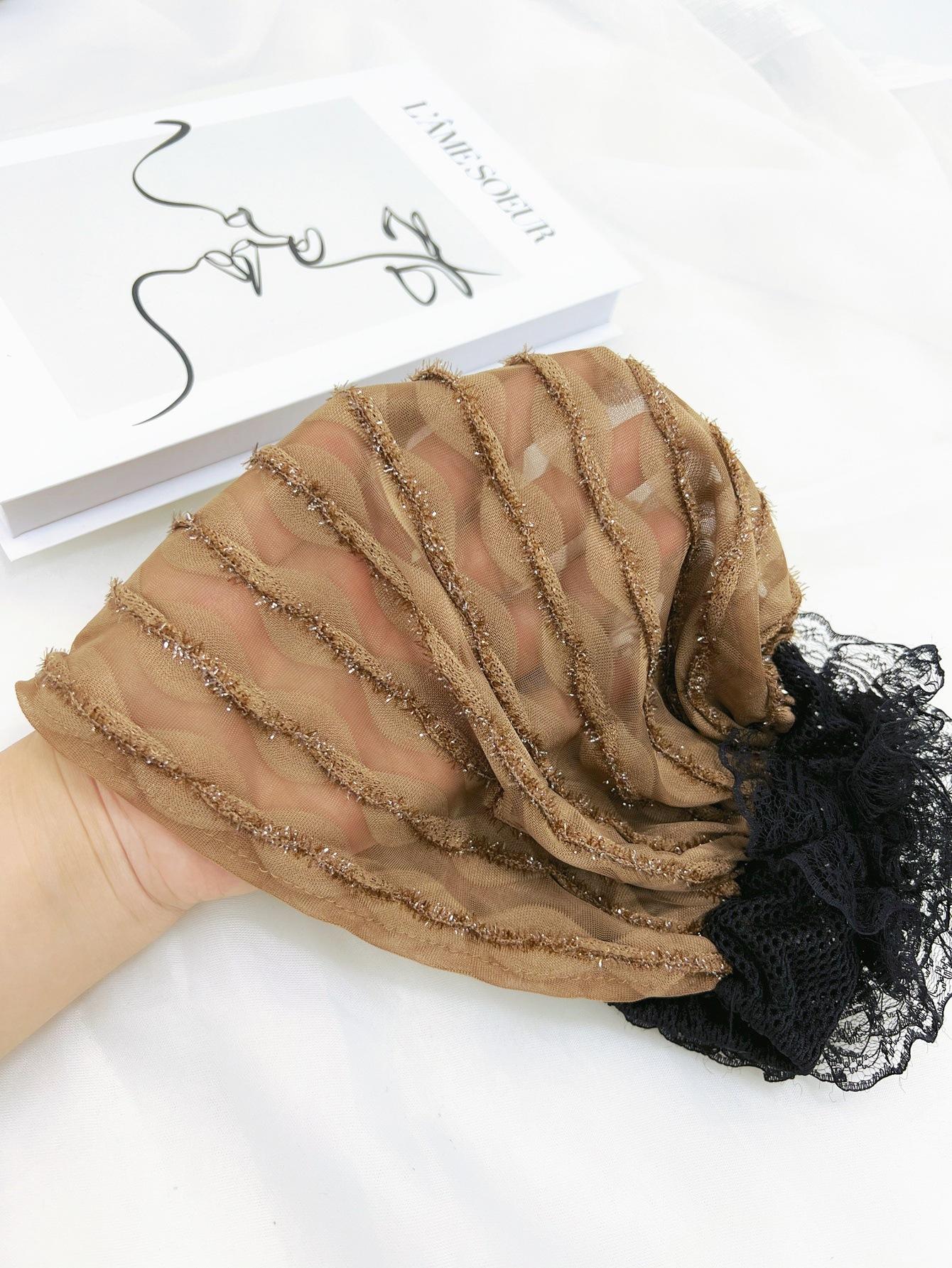Cubierta de Malla de Encaje Sombrero Baotou para Cabello Blanco Primavera y Verano Cabello Transpirable Elegante Sombrero de Estilo Extranjero Turbante para Mujer Estilo Nuevo 2024