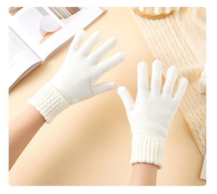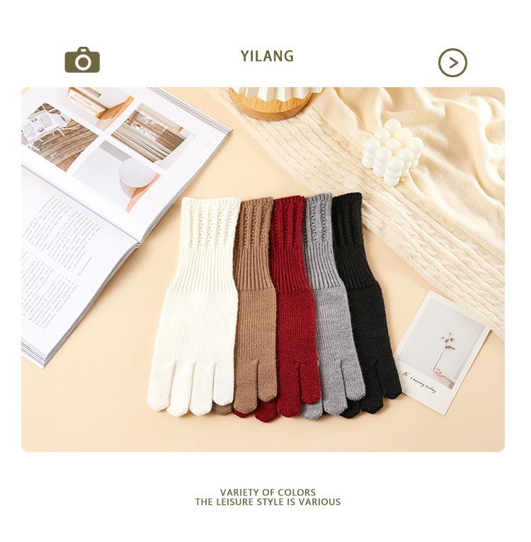 Guantes de Punto sin Dedos para Mujer Cálidos con Forro Polar Invierno 2025 Guantes de Lana de Color Puro de Cinco Dedos Guantes para Pantalla Táctil a Prueba de Frío