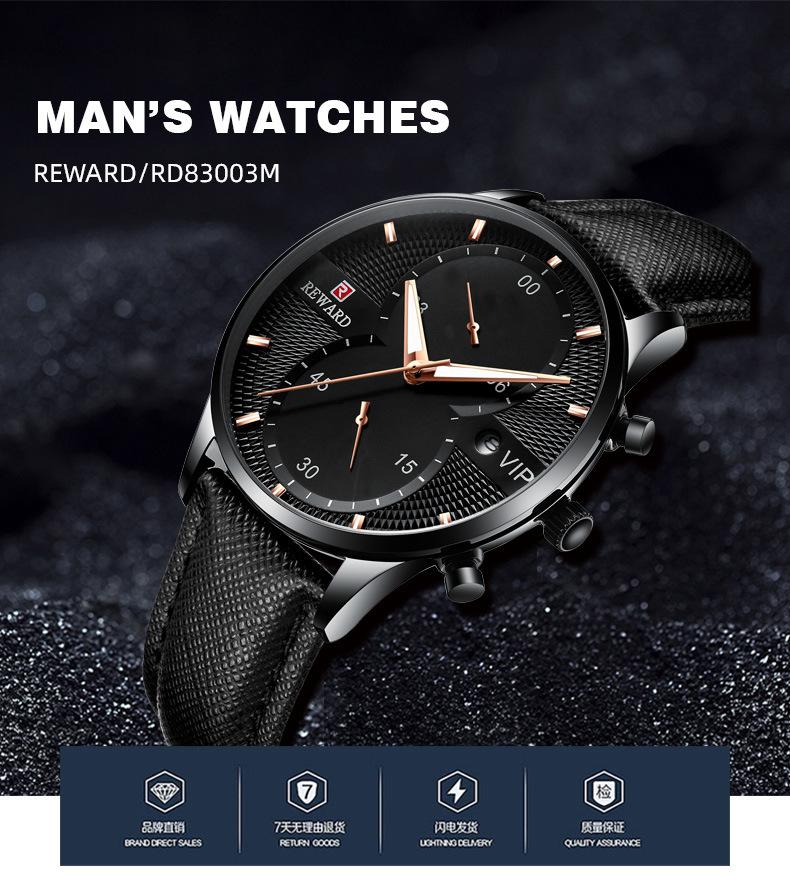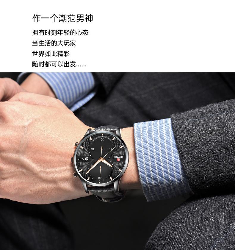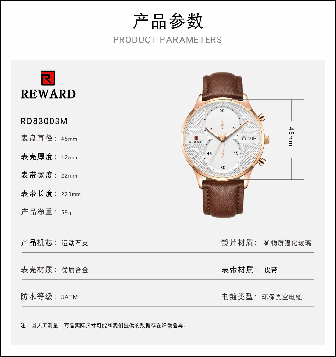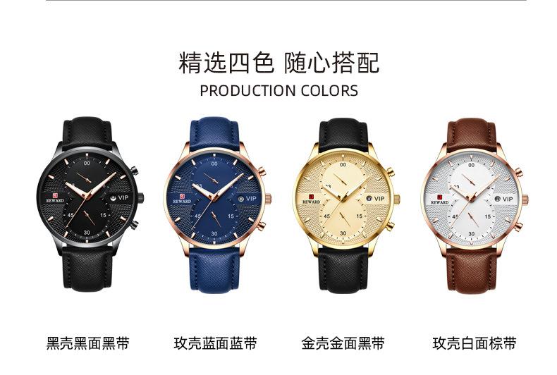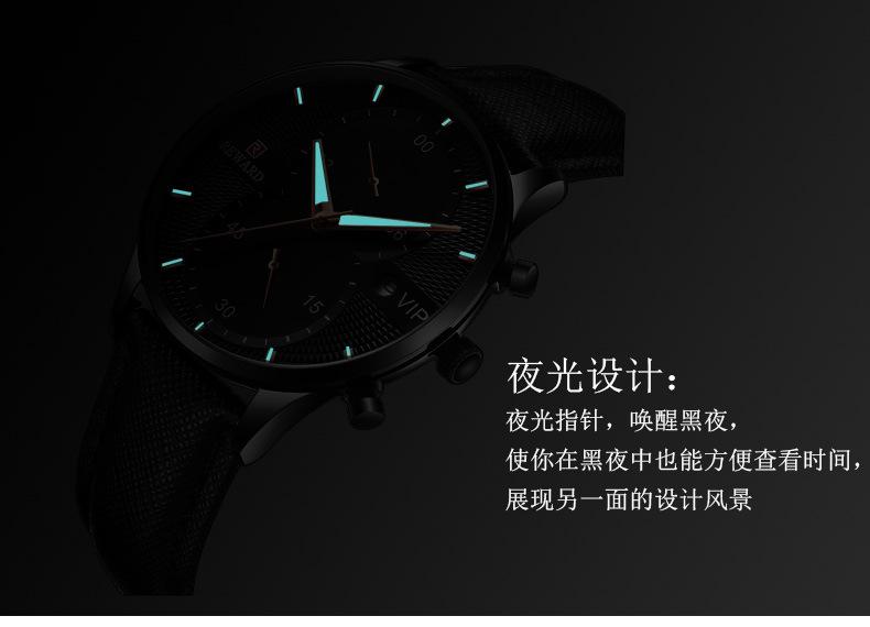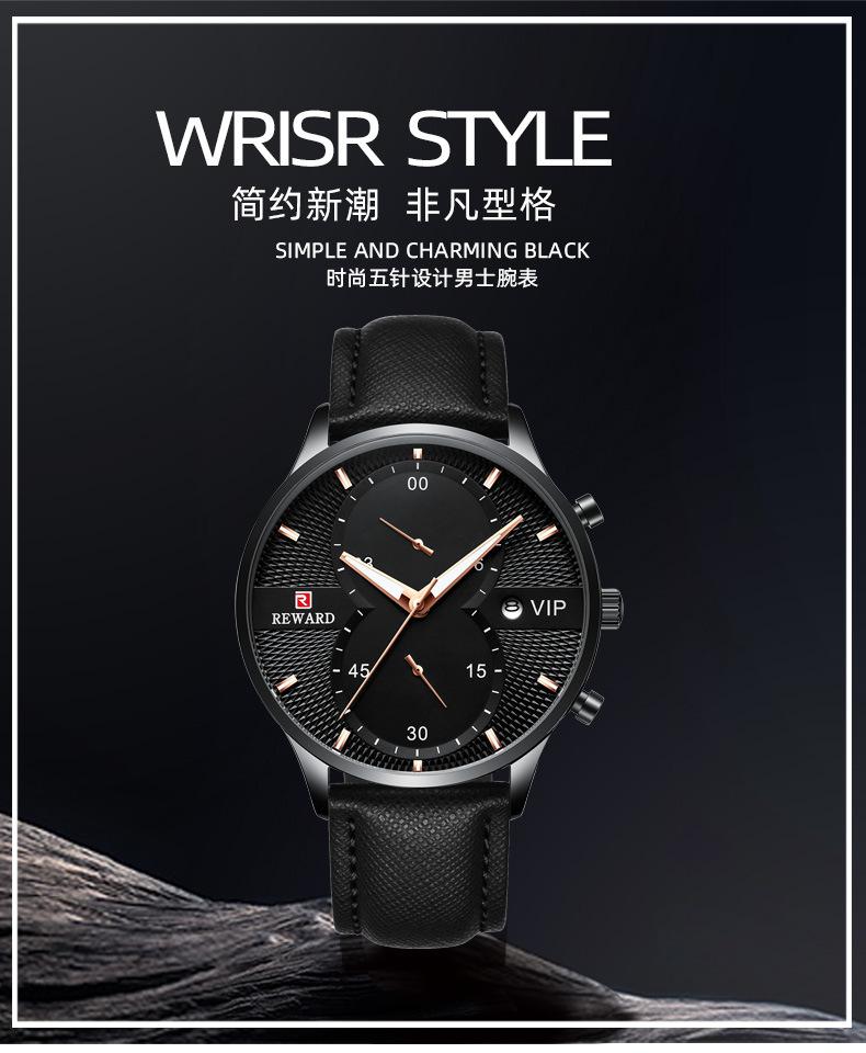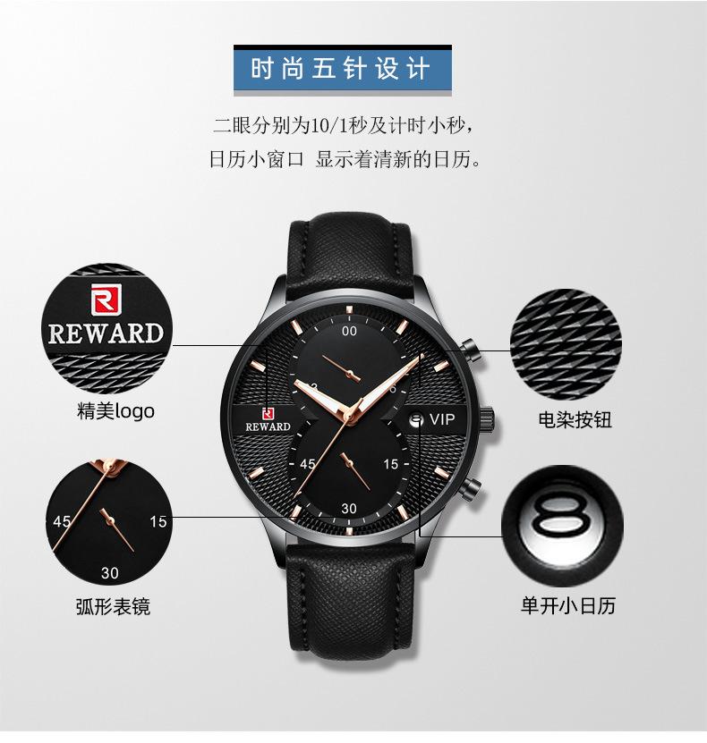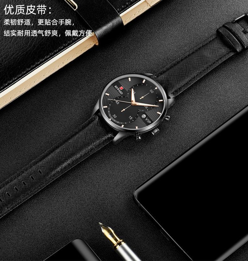 Reloj transfronterizo de recompensa, resistente al agua, para hombres de negocios, reloj de cuero casual de 5 pines, nuevo reloj ins, una generación de cabello