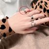 Anillo Brillante Coreano S925 Plateado para Mujer, Anillo Ancho Geométrico Retro, Anillo Ajustable para Dedo Índice de Estudiante, Moderno