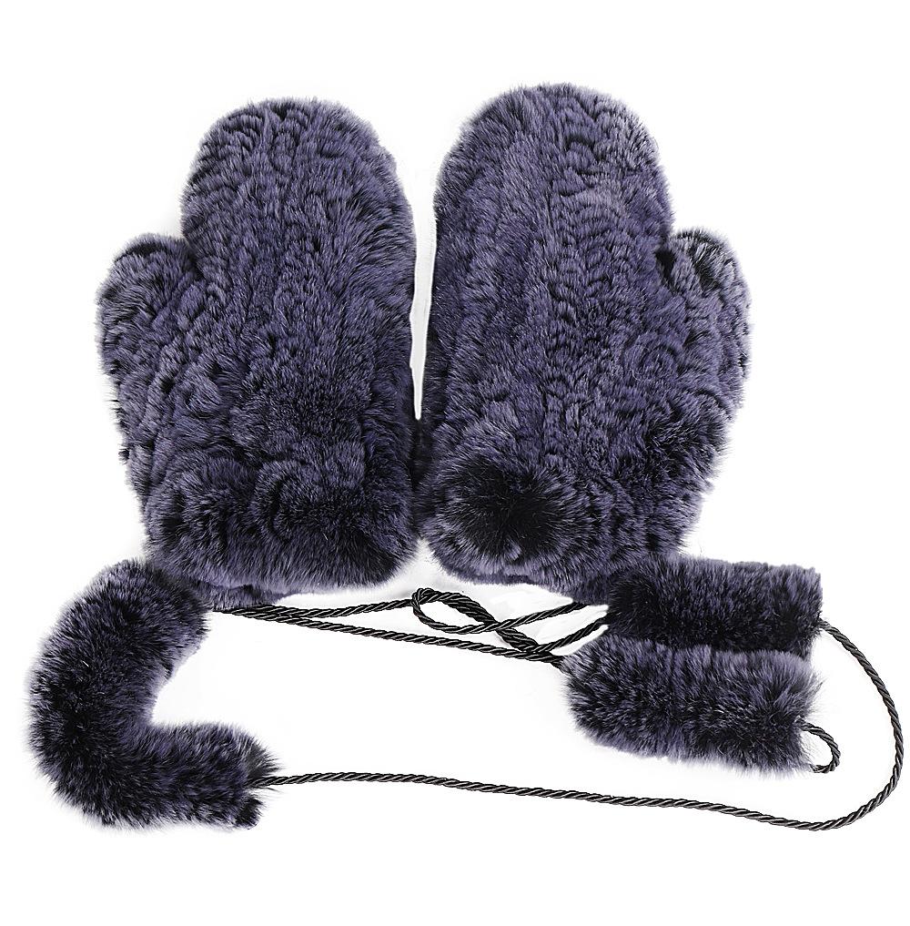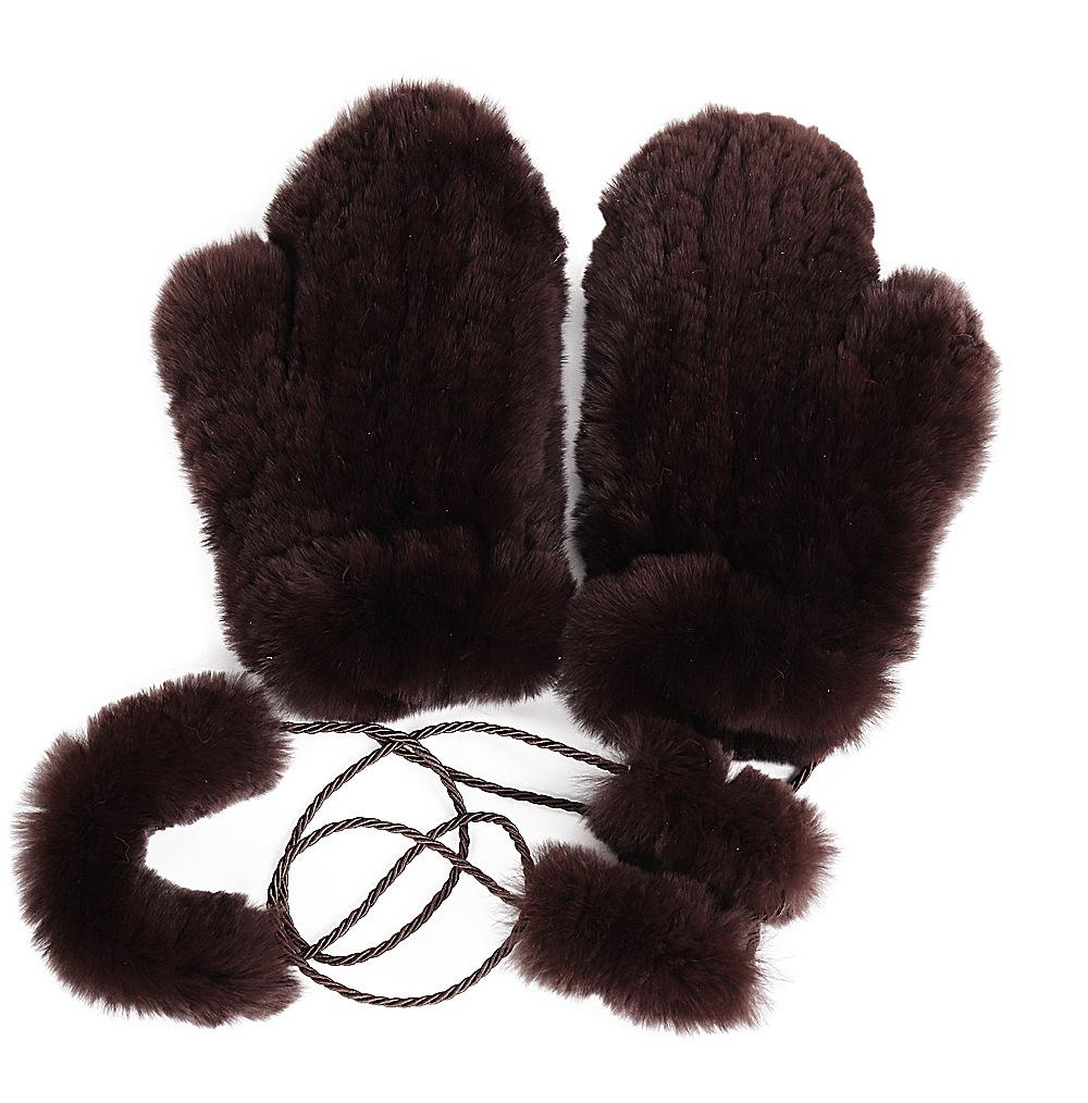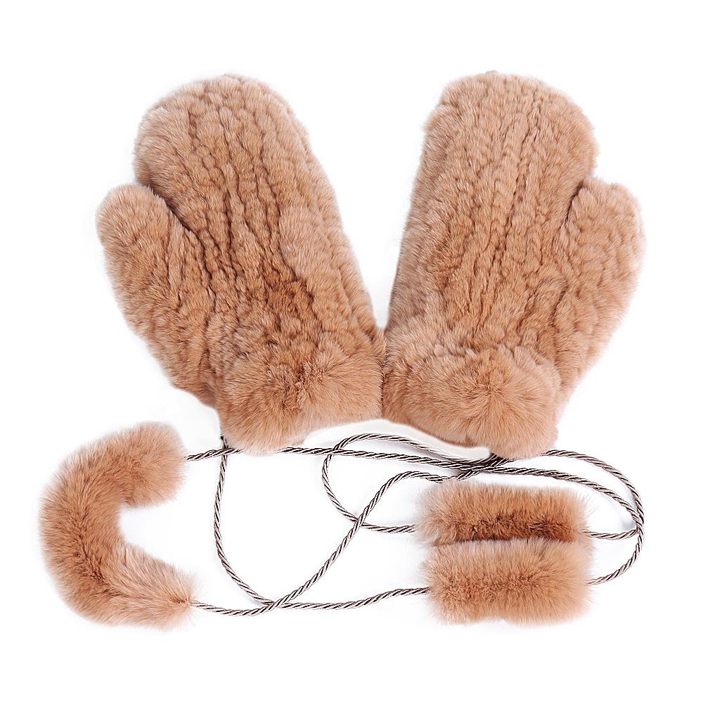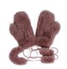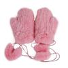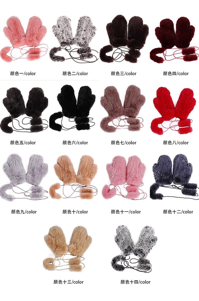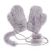 Guantes de Invierno de Felpa Lindos Cálidos a Prueba de Viento Elásticos de Piel Real de Conejo para Mujer