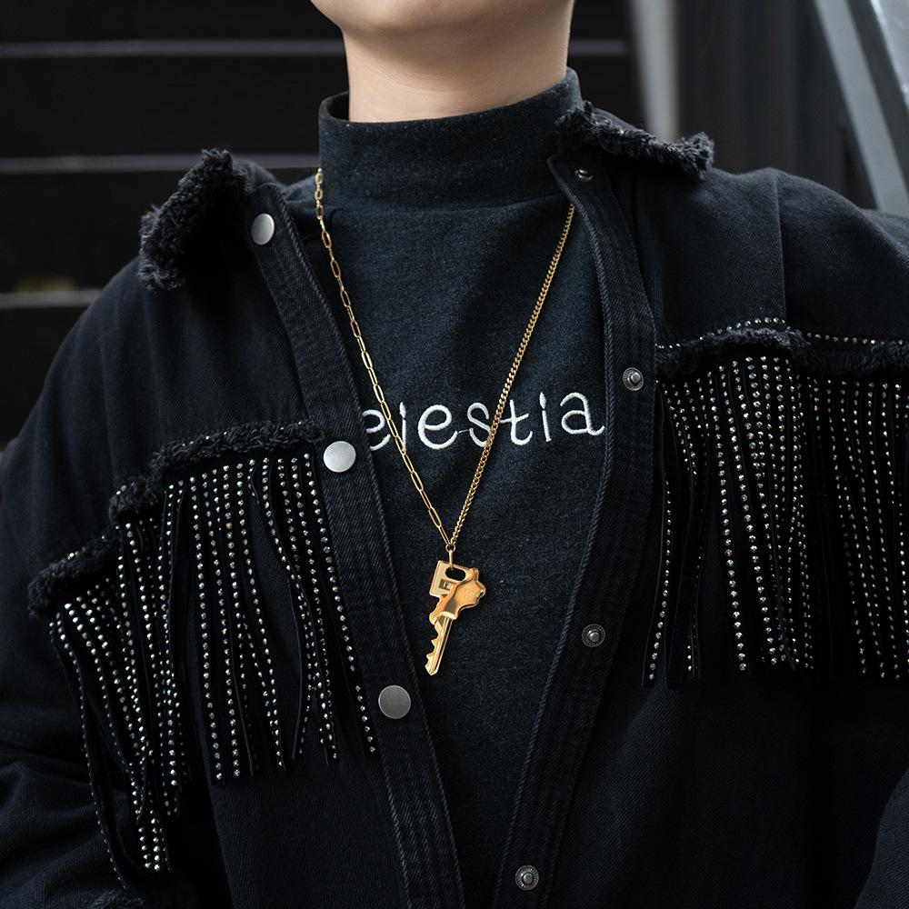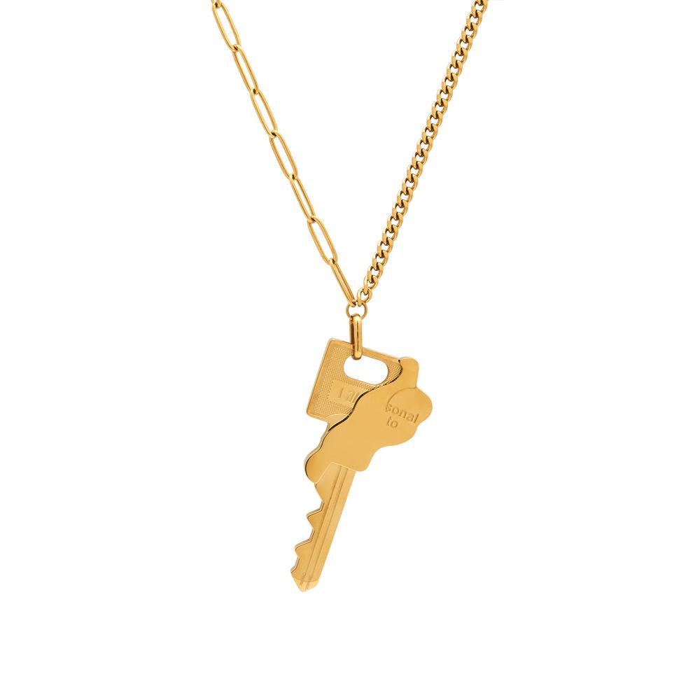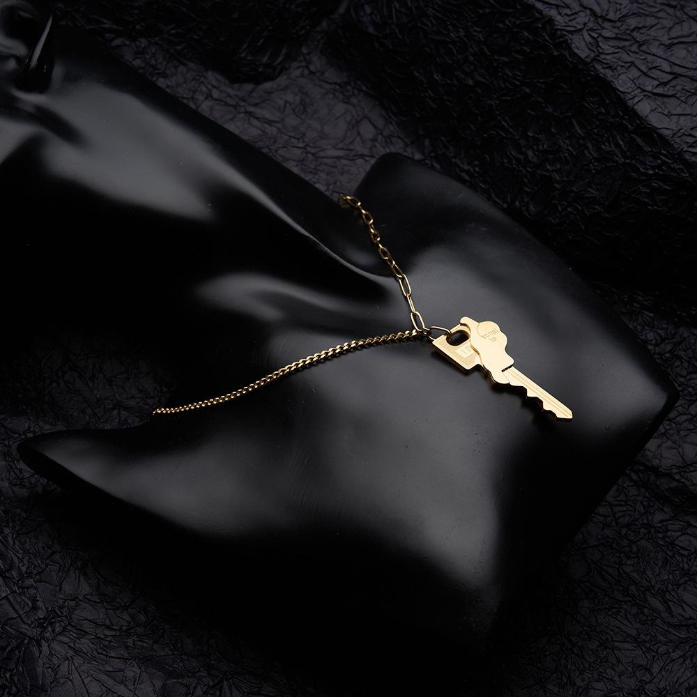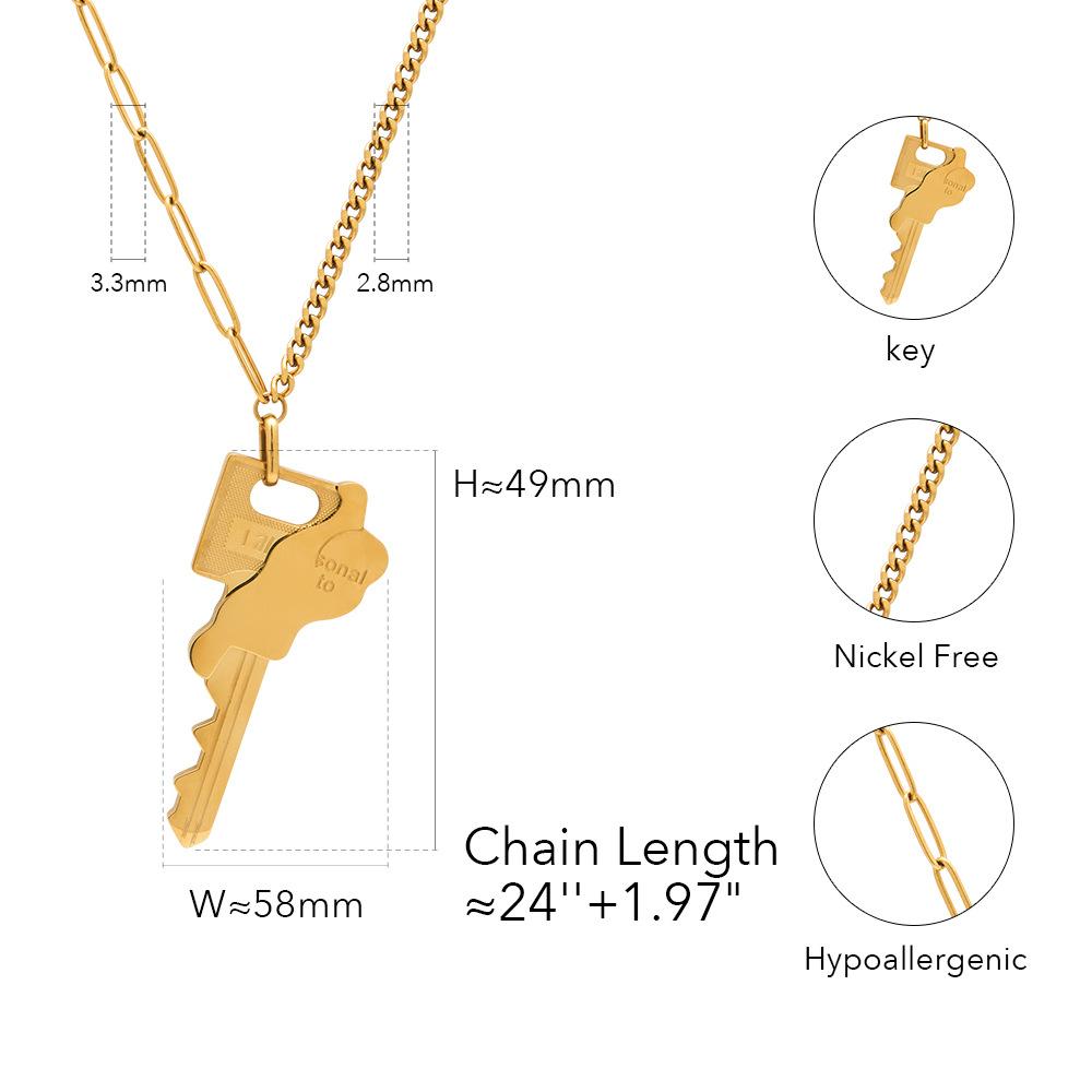 Collar con colgante de llave de cadena irregular con diseño de nicho de acero de titanio chapado en oro de 18 quilates, personalizado, estilo INS, P223359