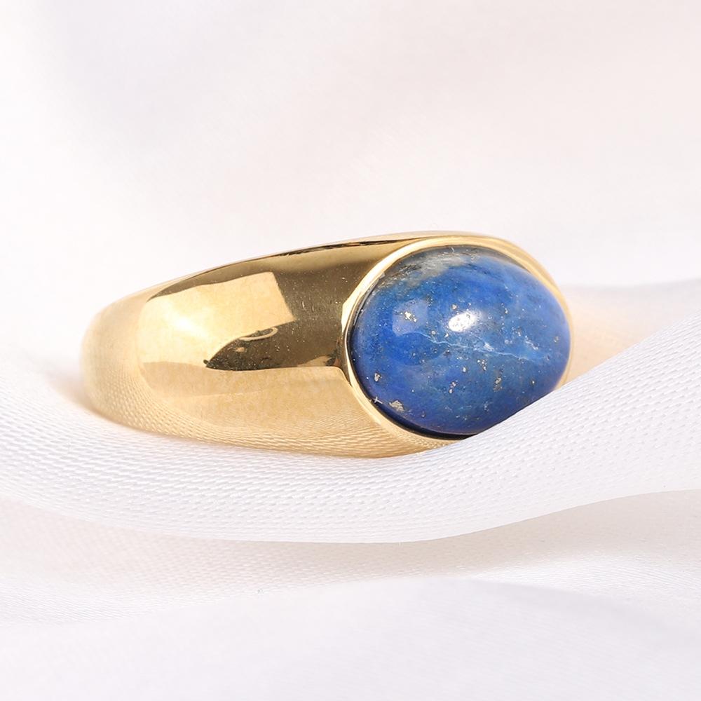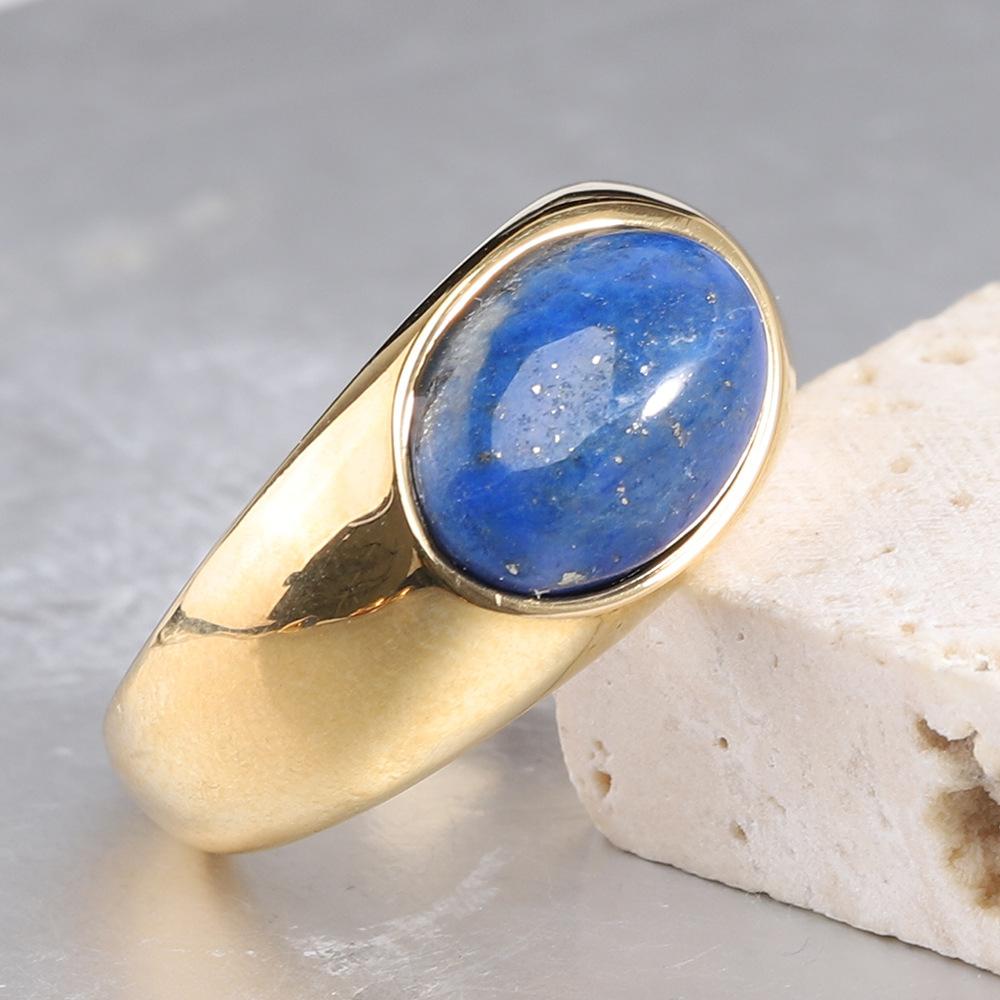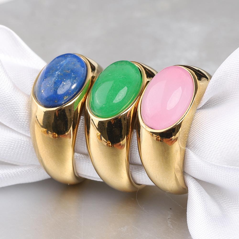 Anillo de acero inoxidable con incrustaciones de piedra natural ovalada, estilo nuevo, sencillo, para mujer, con personalidad, combina con todo, estilo vintage.