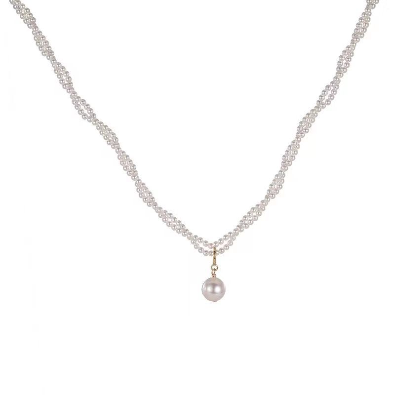 NK-8 pearl pendant double twist necklace (gold), NK-8 pearl pendant double twist necklace (white k)