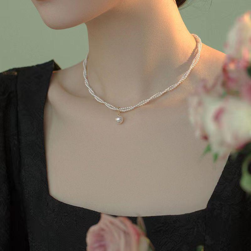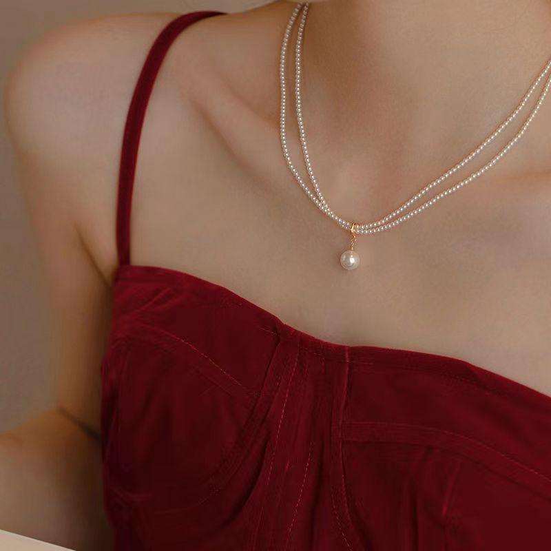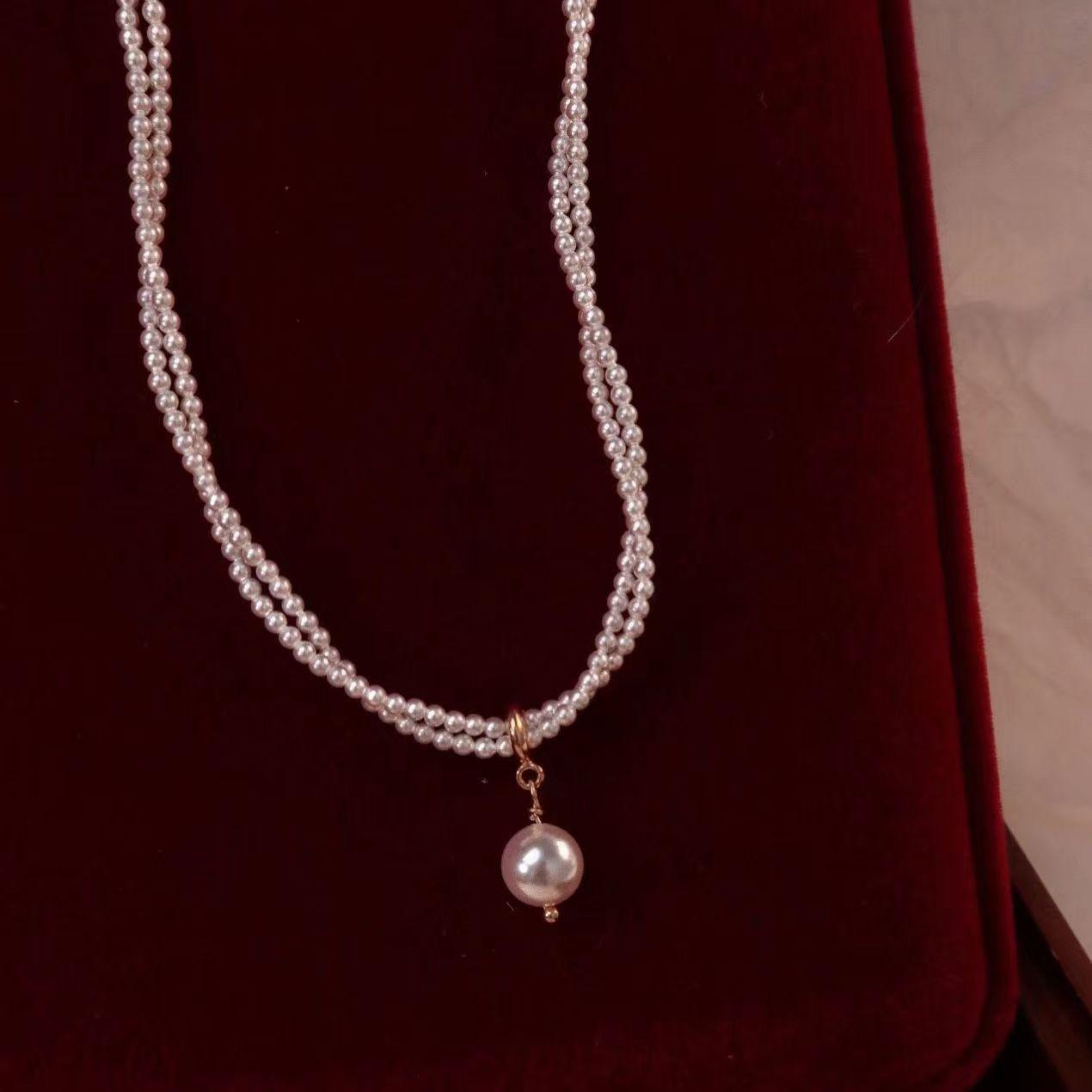 NK-8, collar con colgante de perla de doble torsión estrictamente seleccionado, cadena de clavícula de perla de mijo francés rojo de red, cadena de cuello para mujer, venta al por mayor