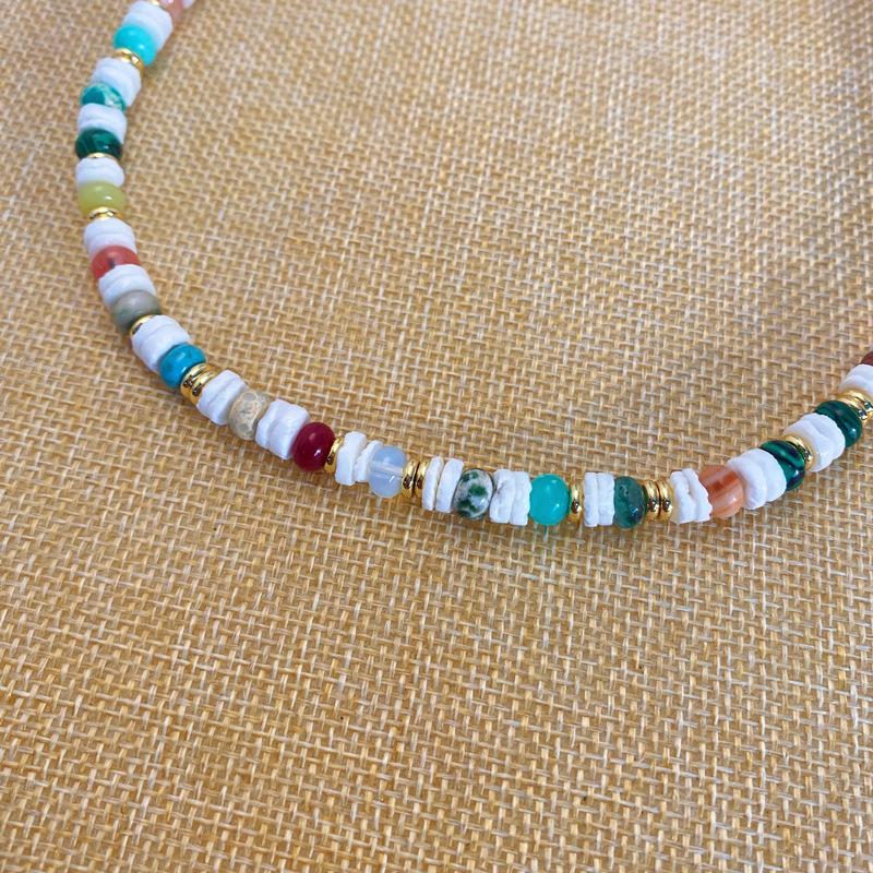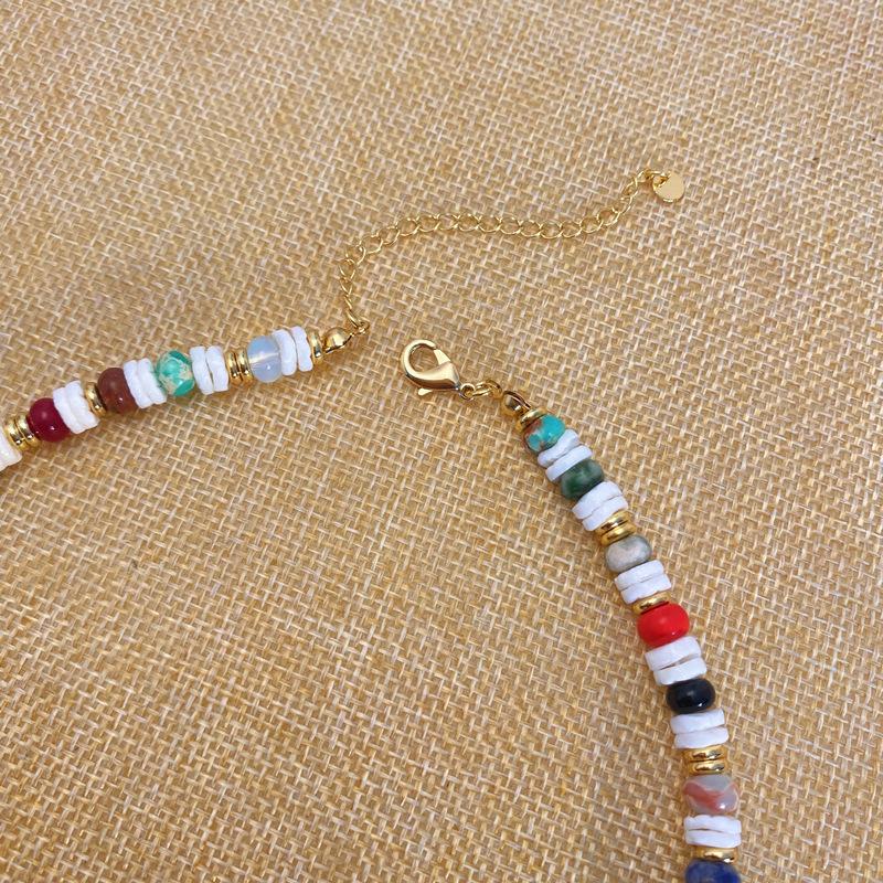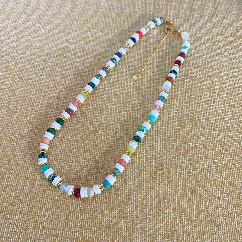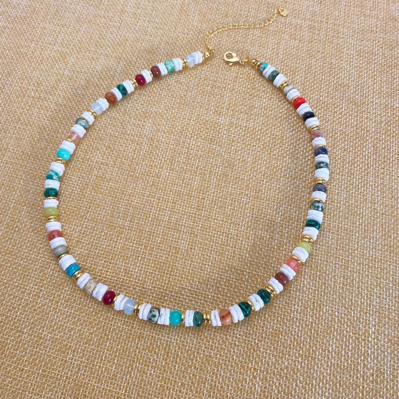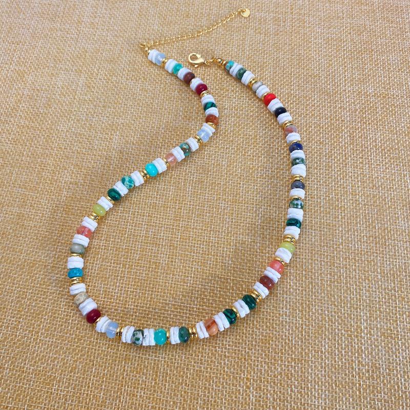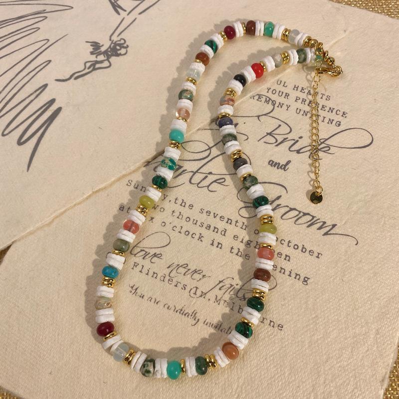 Verano hermosa piedra natural concha ágata costura color collar de cuentas para mujer sentido de alta gama nicho apilado cadena clavícula