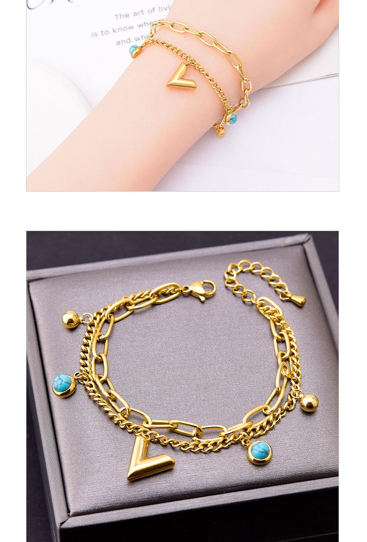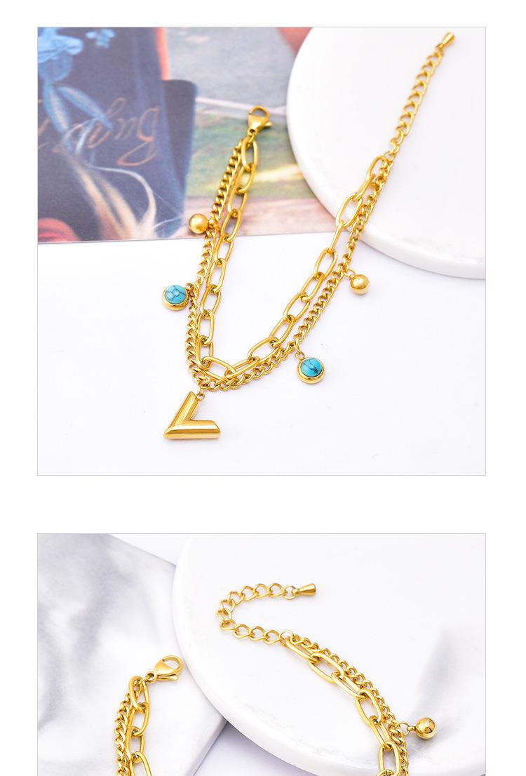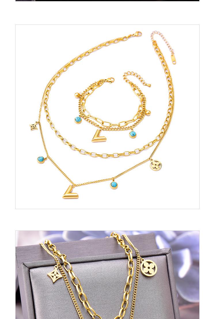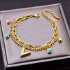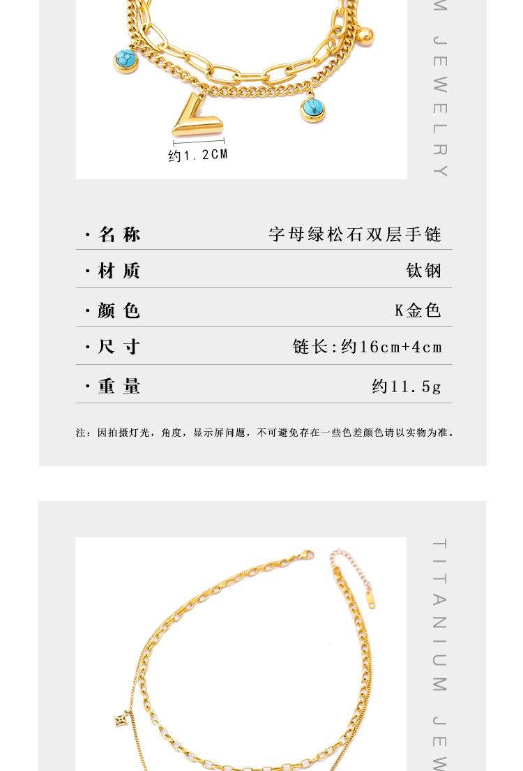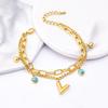 Pulsera gruesa doble europea y americana redonda pequeña collar de turquesa de frijol dorado acero titanio que no se desvanece juego de pulseras con letras joyería