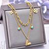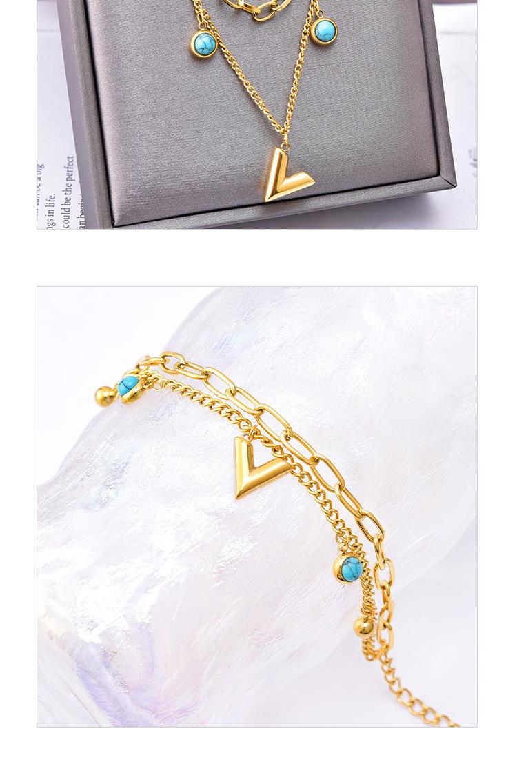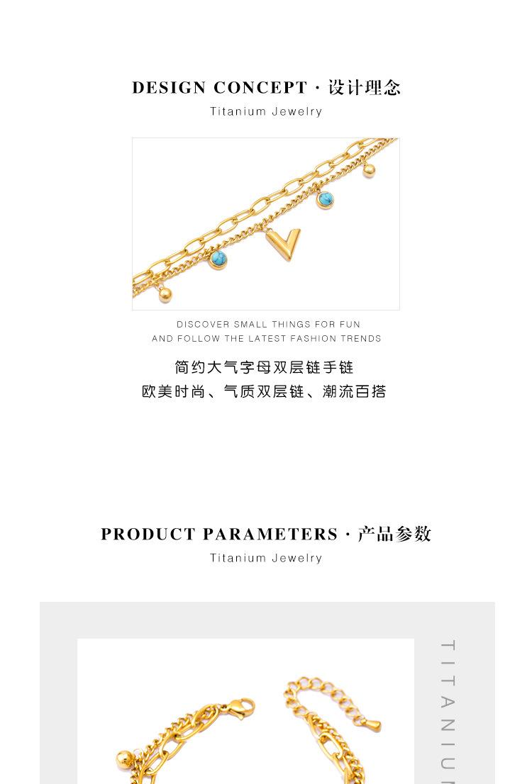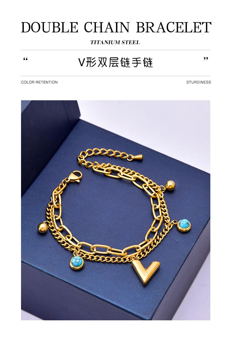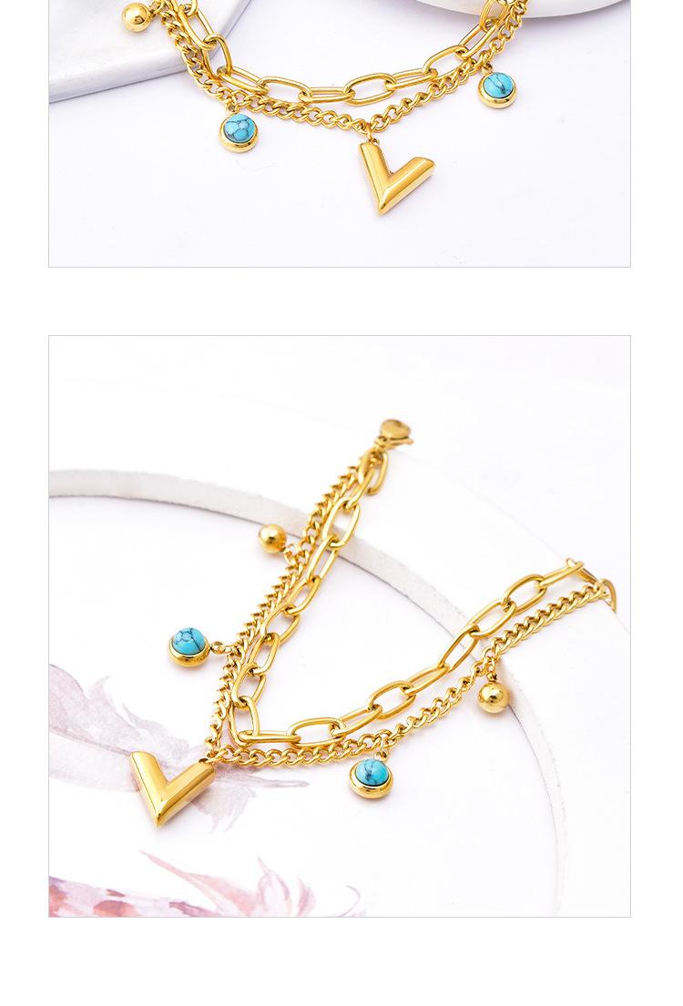 Pulsera gruesa doble europea y americana redonda pequeña collar de turquesa de frijol dorado acero titanio que no se desvanece juego de pulseras con letras joyería