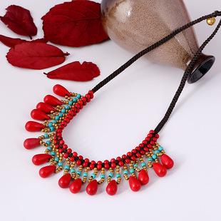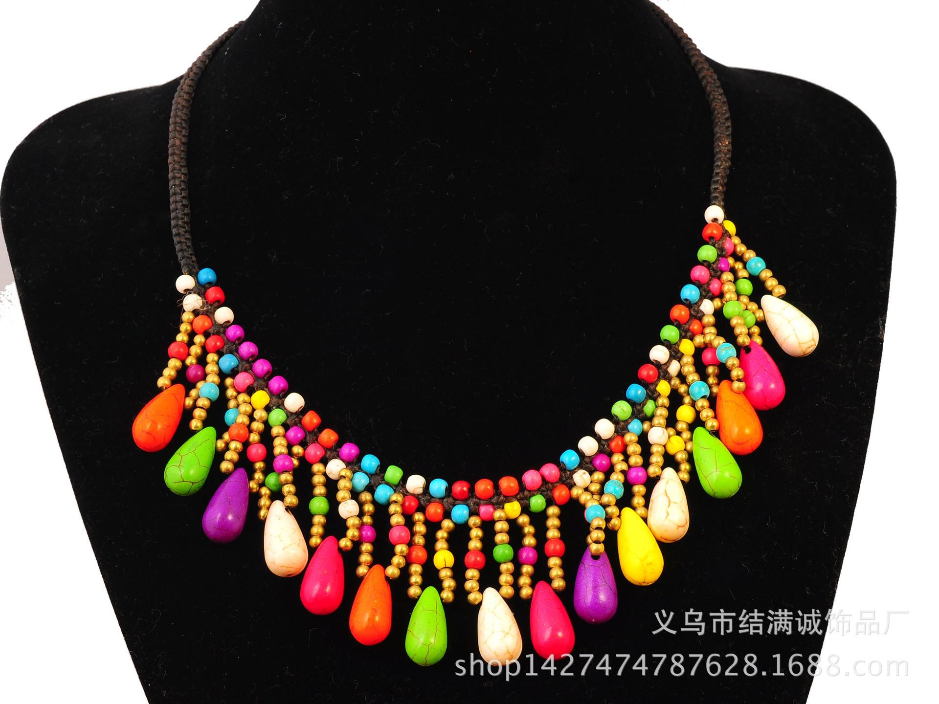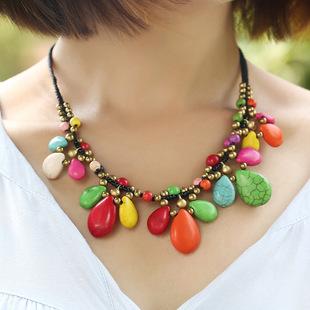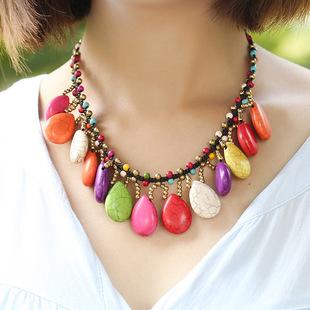nombre:Collar corto étnico de primavera y verano con forma de gota de agua