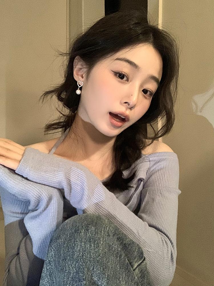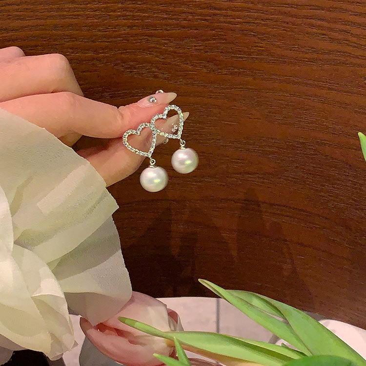 Pendientes de plata S925 con forma de aguja y perlas de amor para mujer, diseño de nicho, de alta calidad, con clip para la oreja, elegantes y exquisitos.