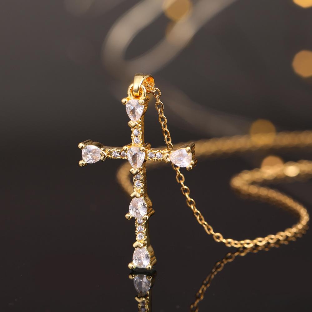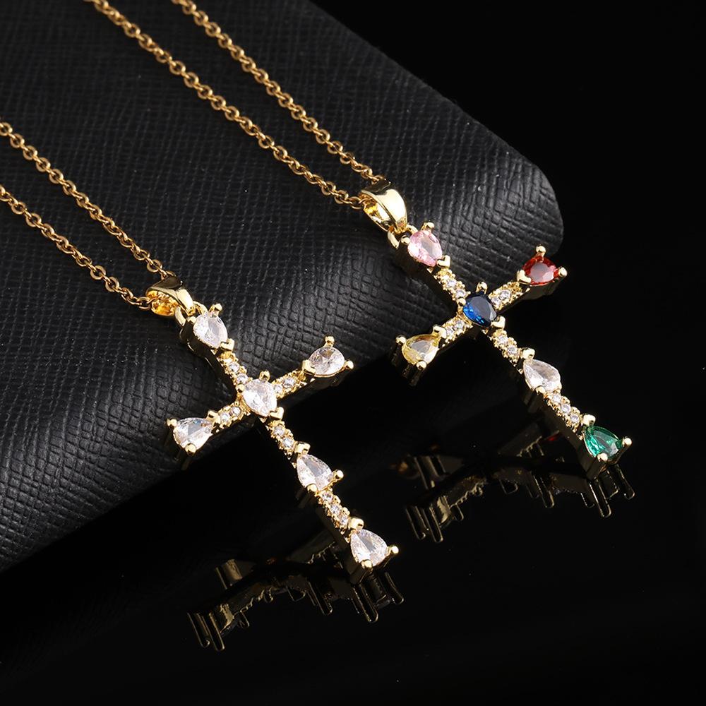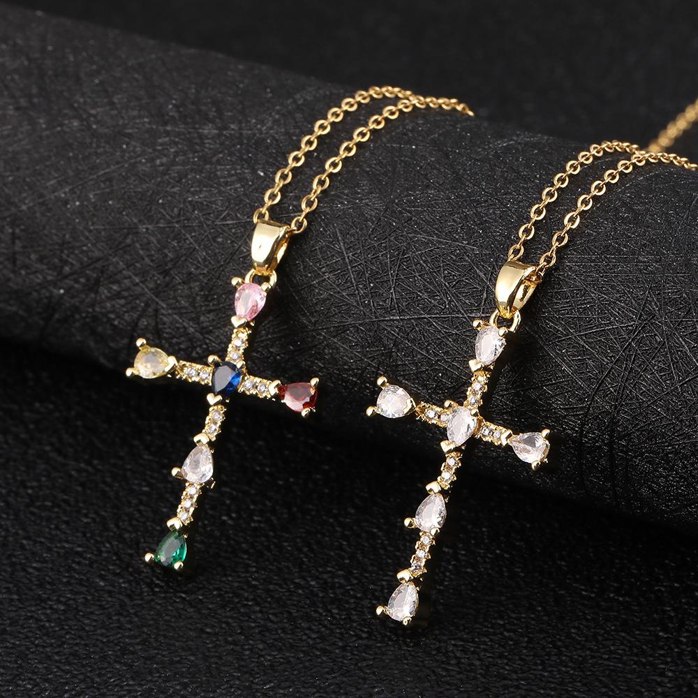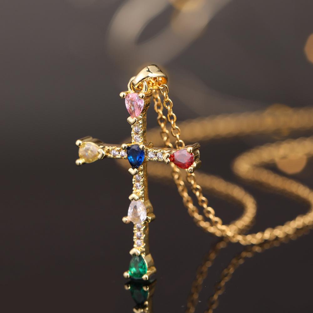 Colgante de cruz de color con diseño de nicho que combina con todo, de lujo ligero, para mujer, estilo europeo y americano, nuevo collar con cadena de clavícula.