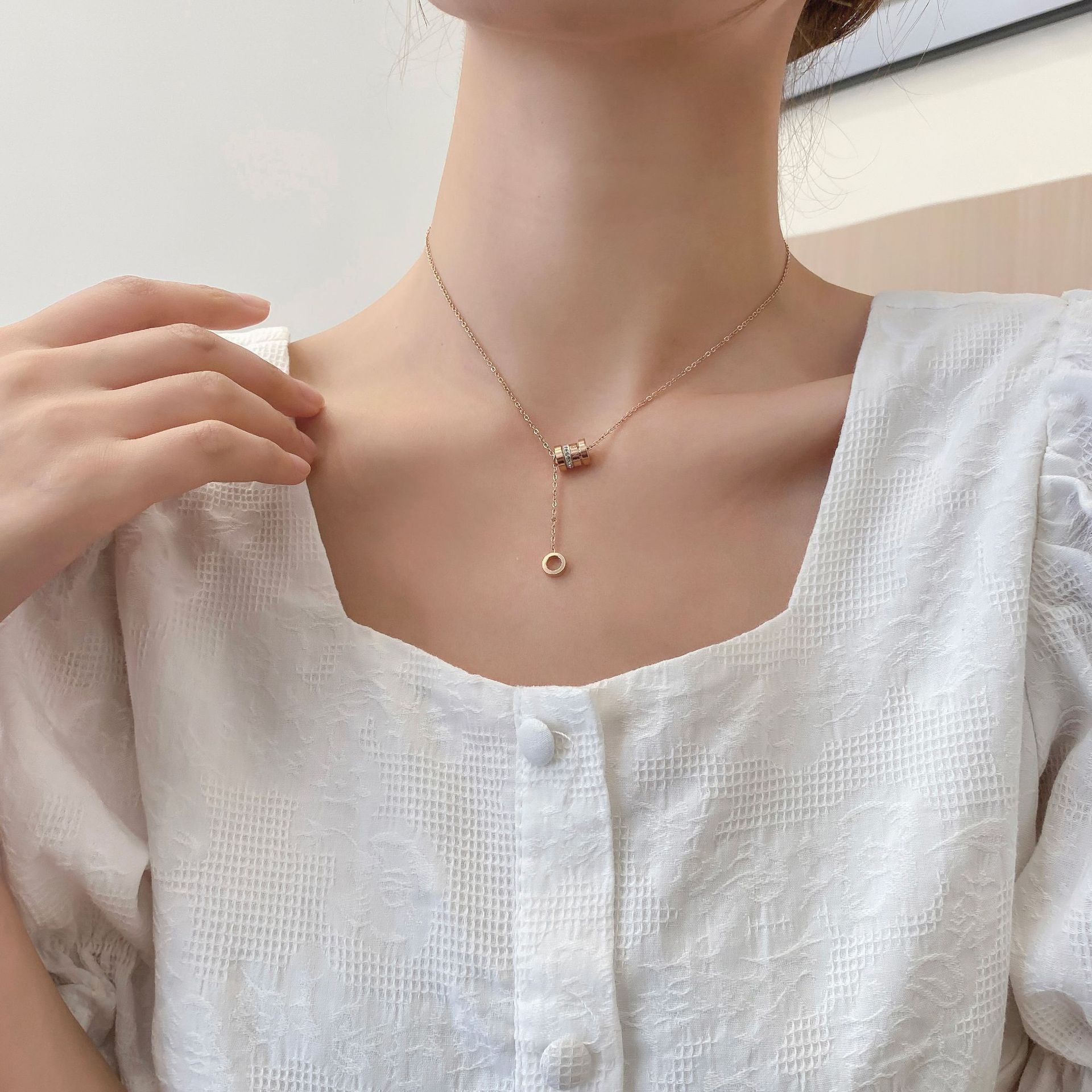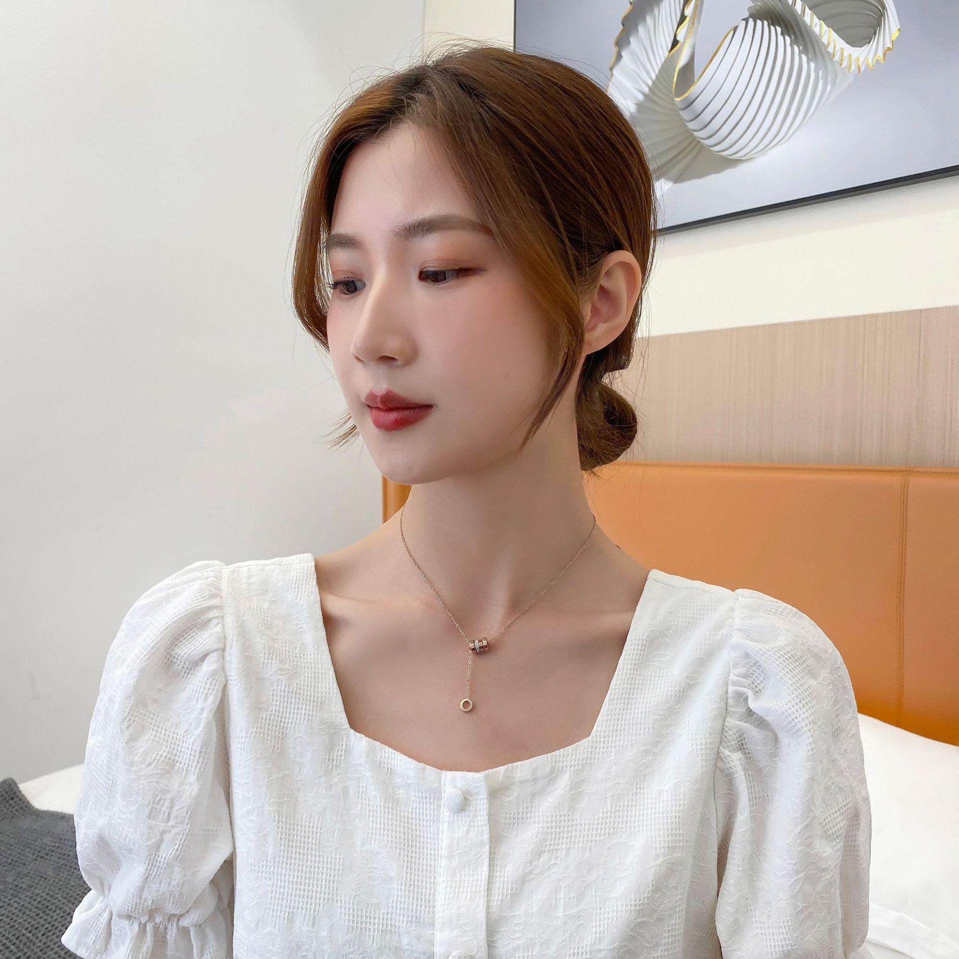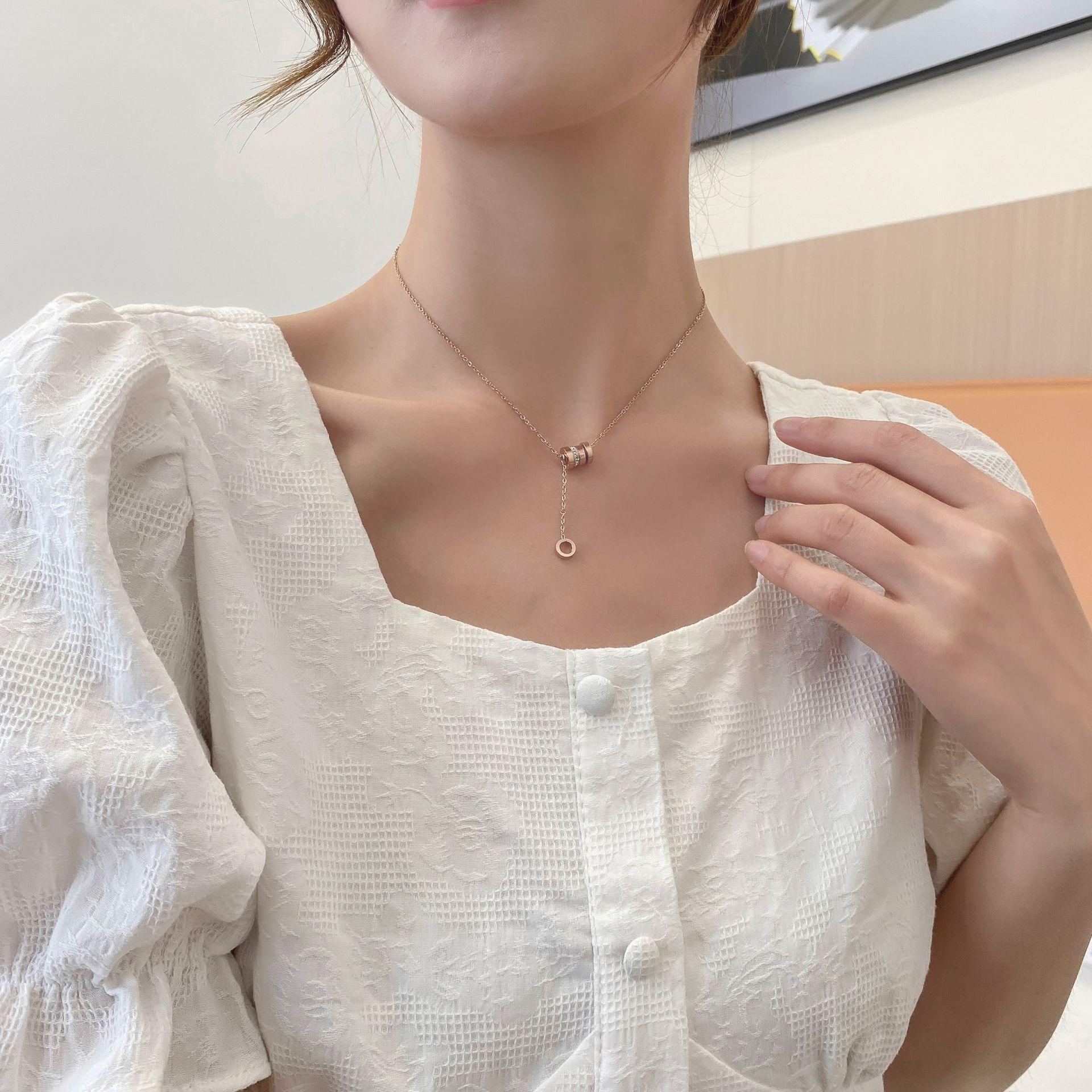 Collar para Mujer Estilo Japonés y Coreano Cintura Pequeña Elegante Nicho Cadena Clavícula Popular Trendy Micro Diamante Moda Nuevo Collar de Acero Titanio