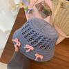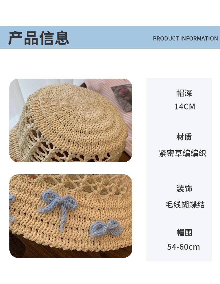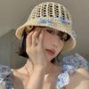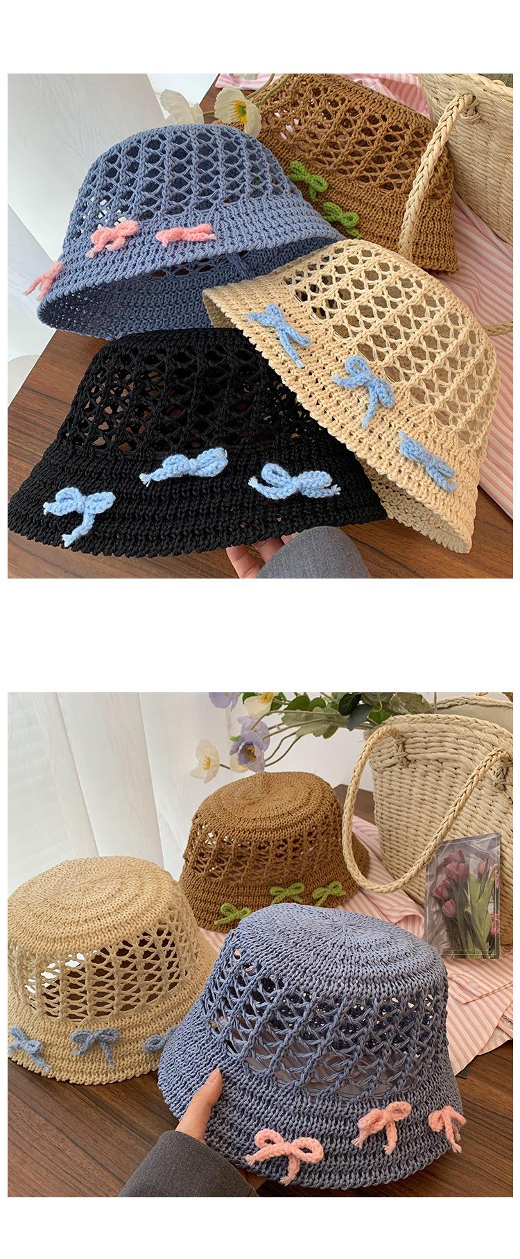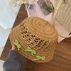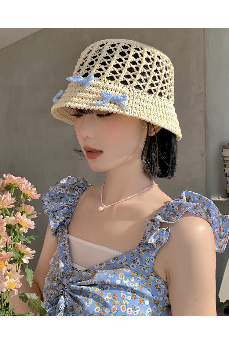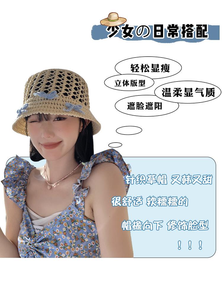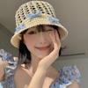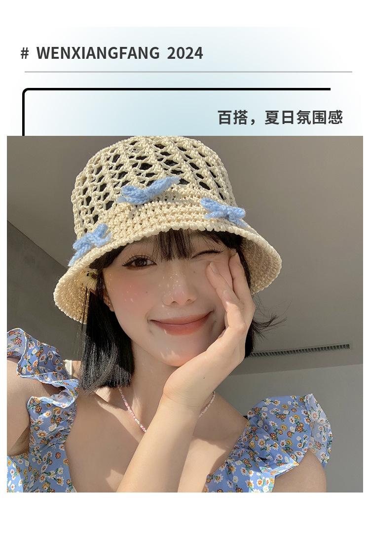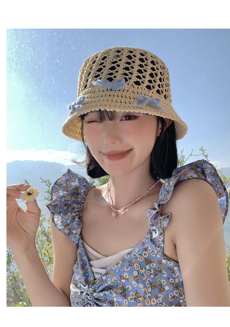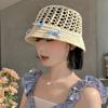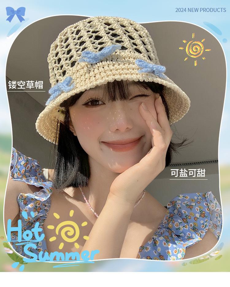 Sombrero de paja francés con lazo azul hueco para mujer, nuevo sombrero playero de verano, diseño de nicho, protector solar.