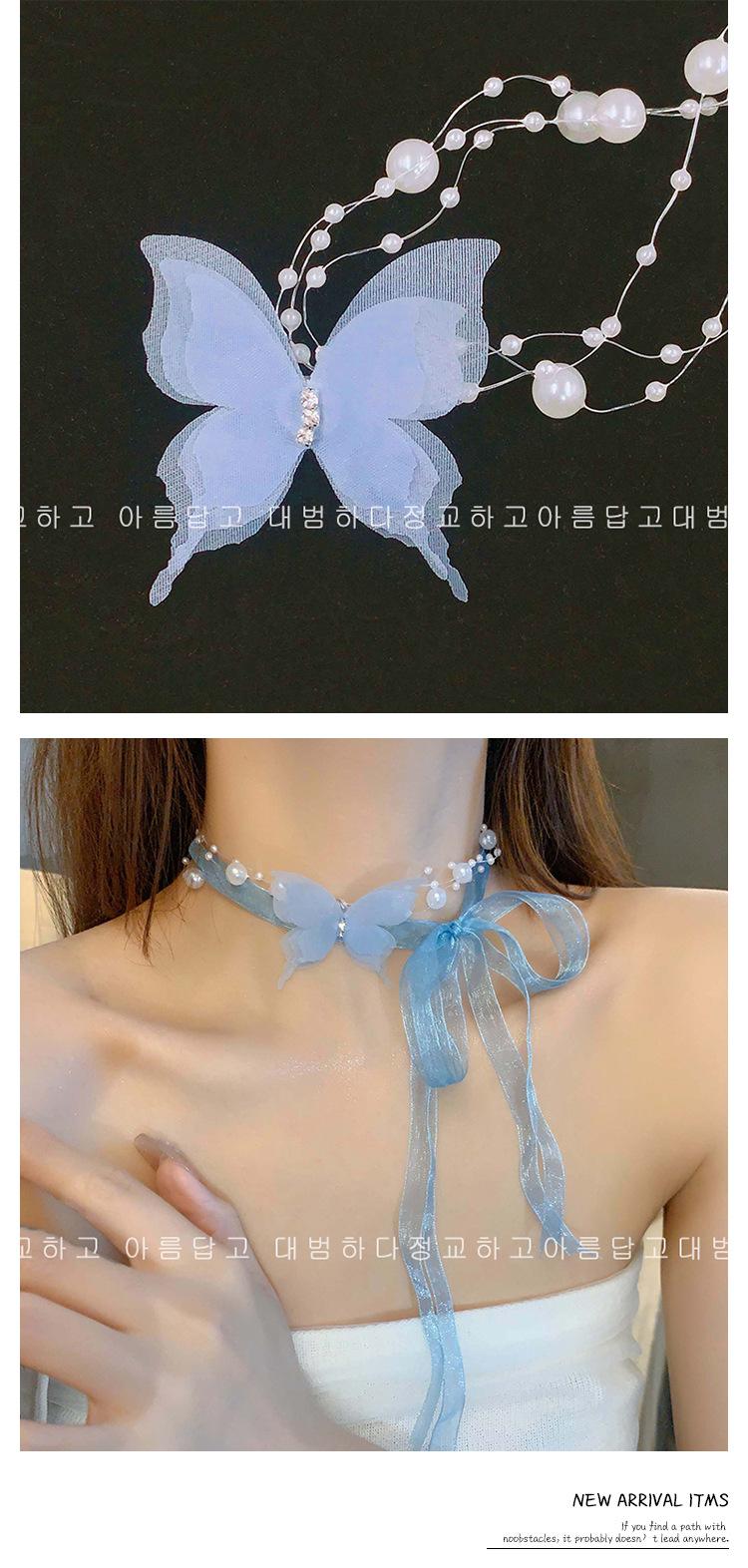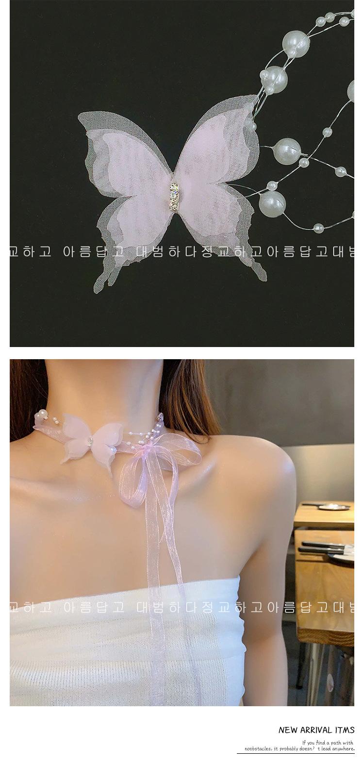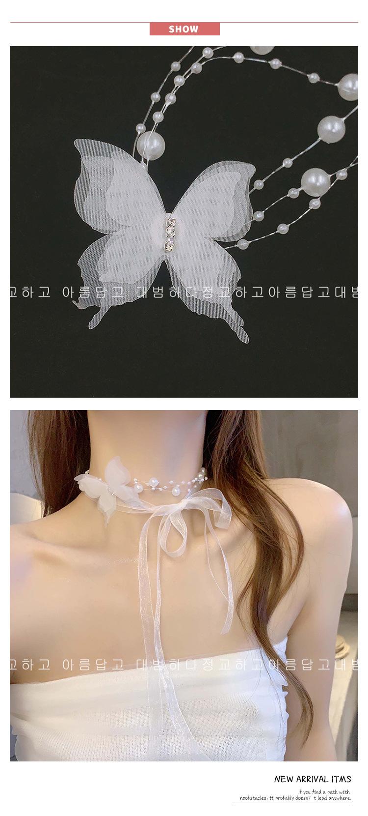 Collar de Perlas de Mariposa para Mujer Lujo Ligero Nicho Alta Gama Cadena Clavicular Nuevo Temperamento Súper Hada Versátil Cadena para el Cuello Venta al por Mayor
