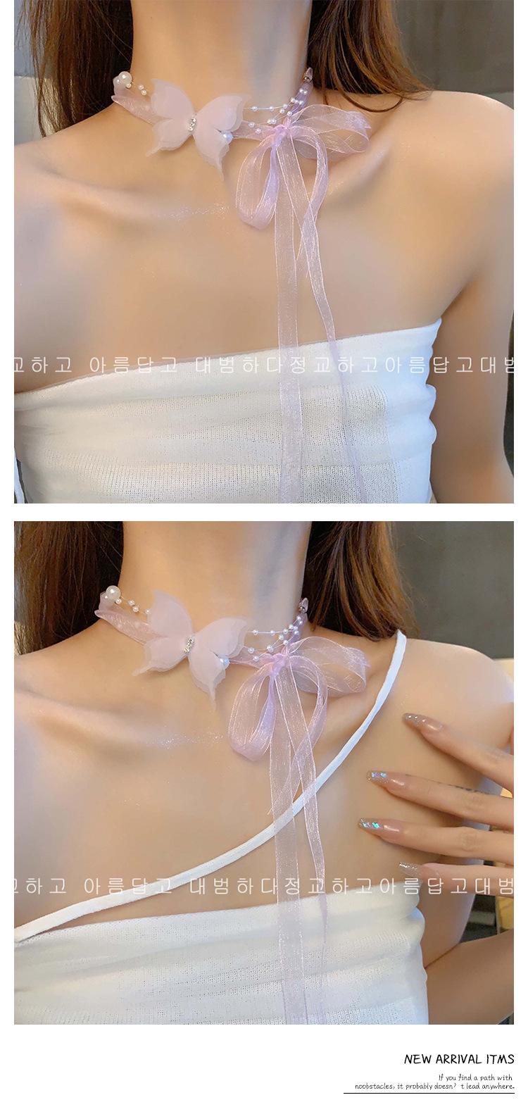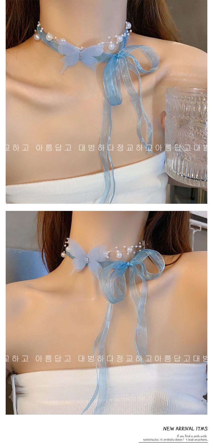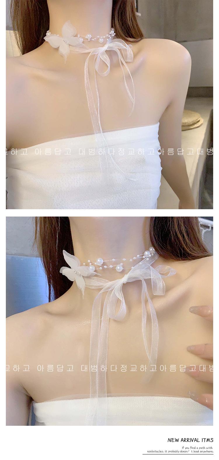 Collar de Perlas de Mariposa para Mujer Lujo Ligero Nicho Alta Gama Cadena Clavicular Nuevo Temperamento Súper Hada Versátil Cadena para el Cuello Venta al por Mayor