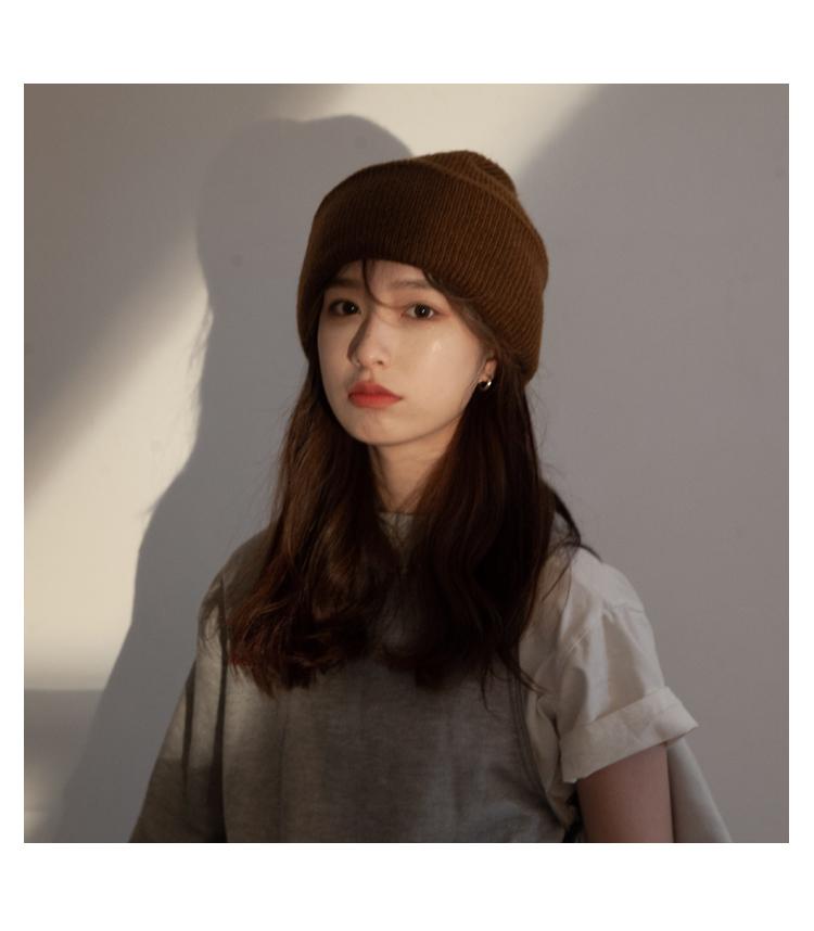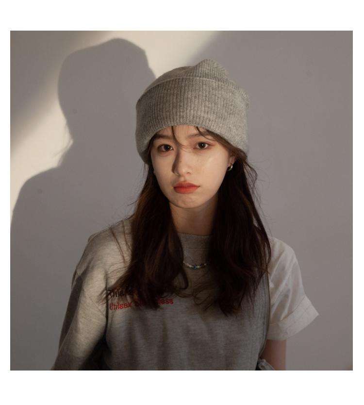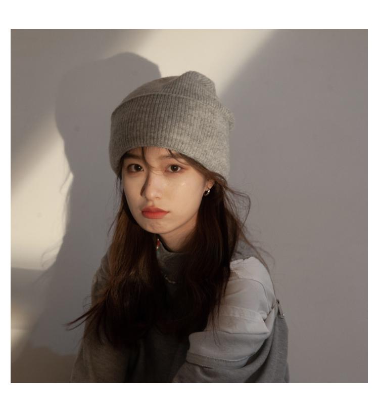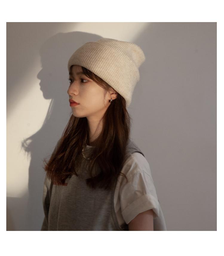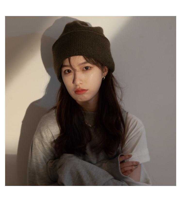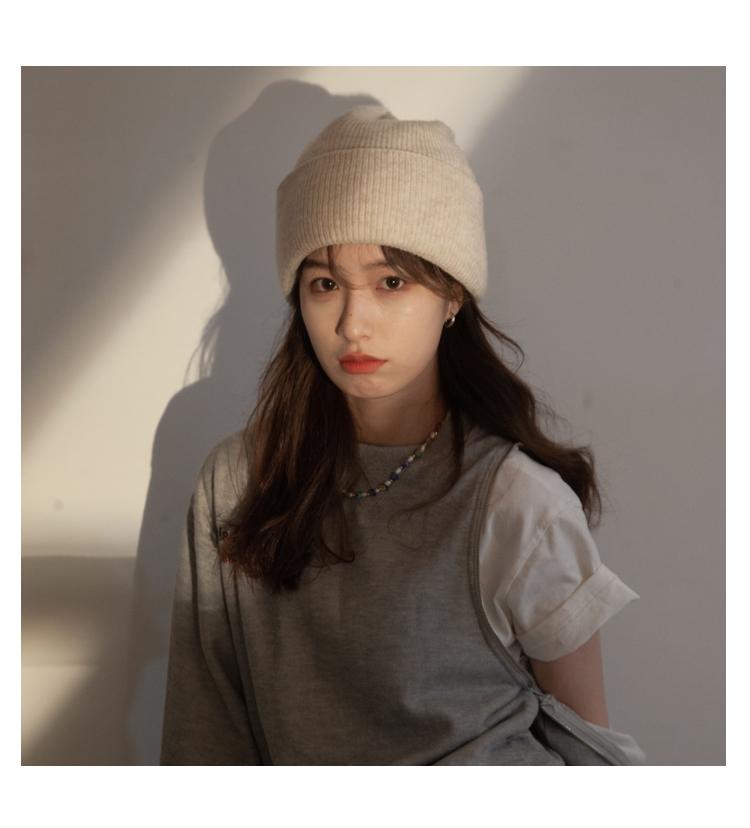 Gorro de lana para mujer, de otoño e invierno, estilo coreano, moderno, para el frío, de color liso, tejido a juego, cálido.