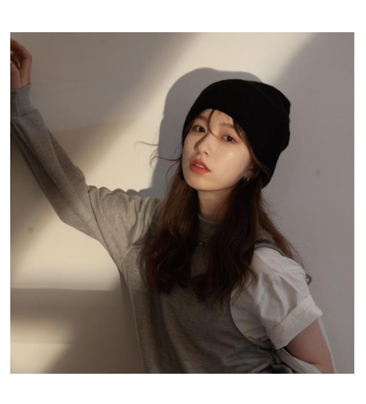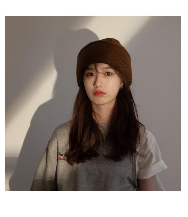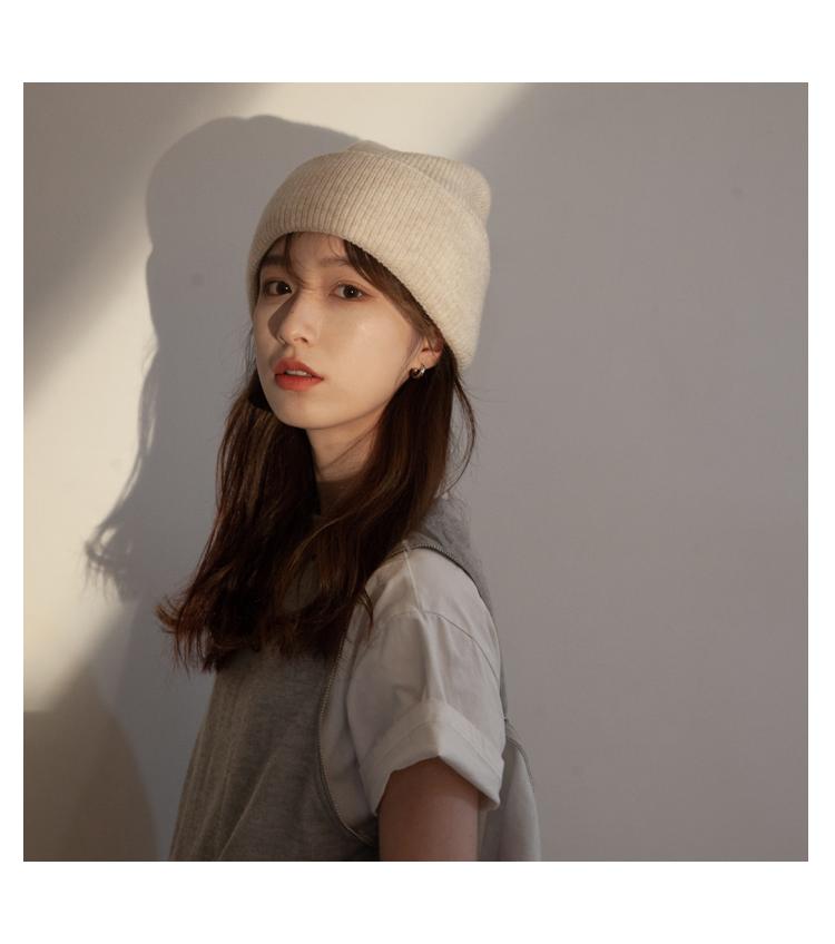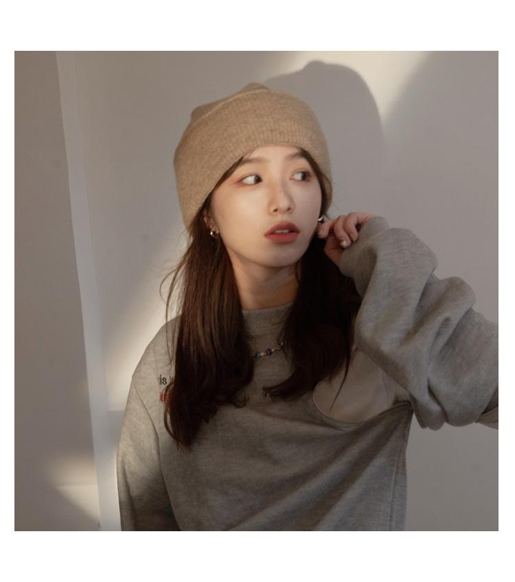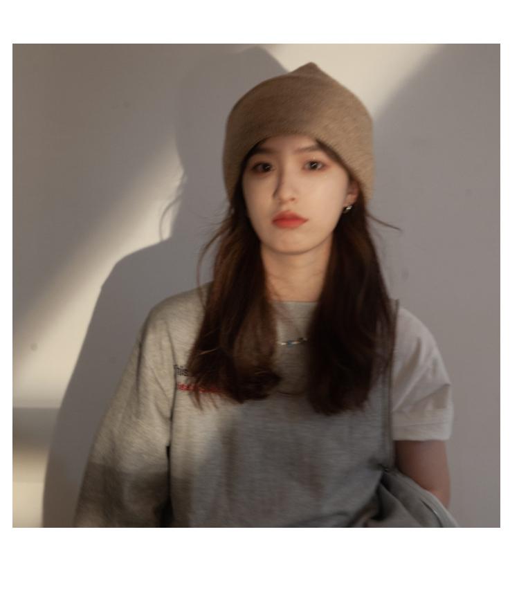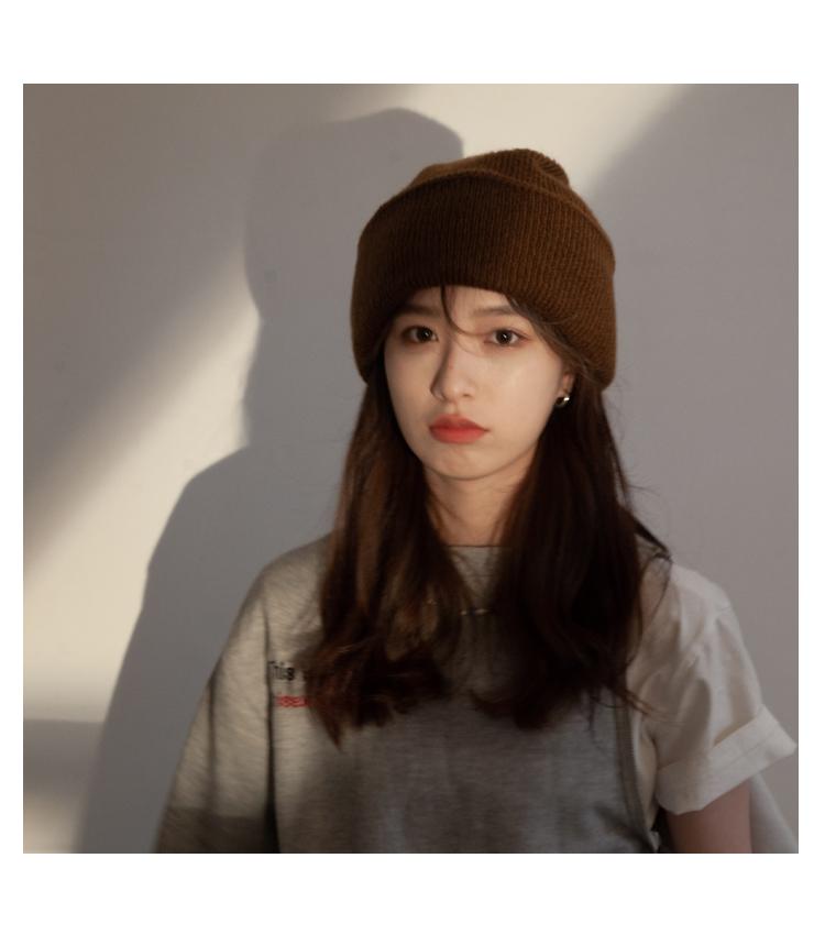 Gorro de lana para mujer, de otoño e invierno, estilo coreano, moderno, para el frío, de color liso, tejido a juego, cálido.