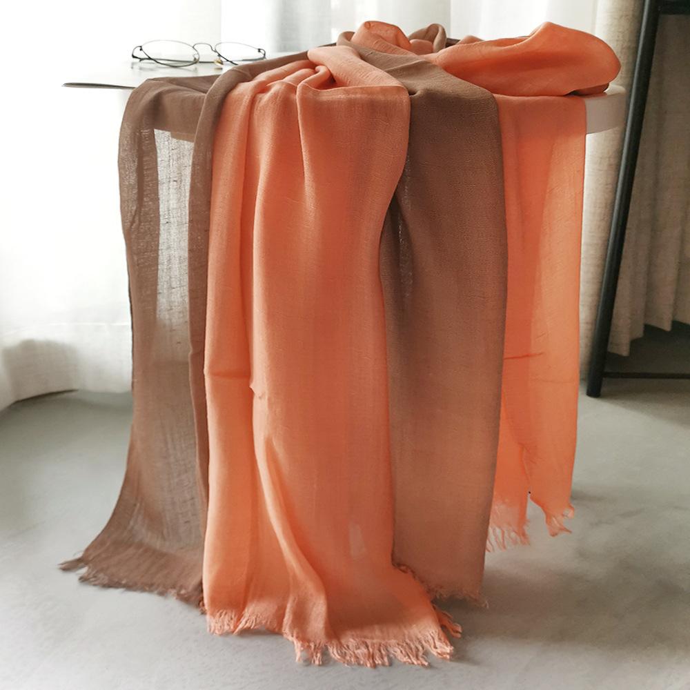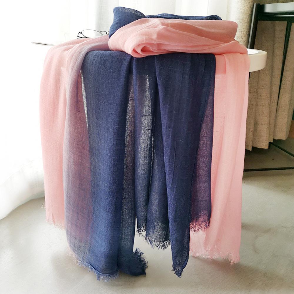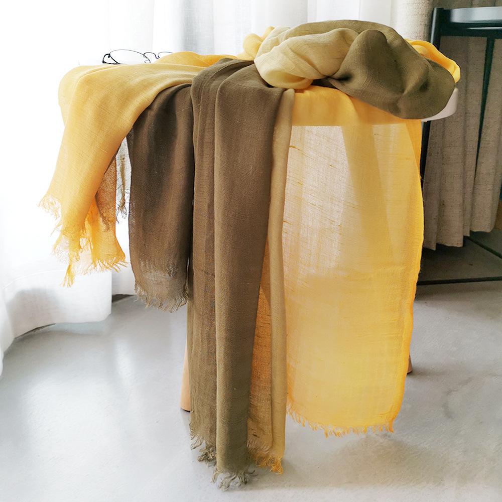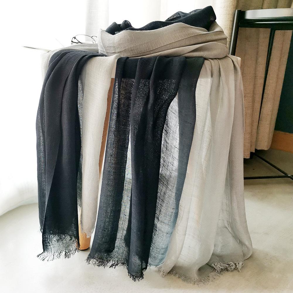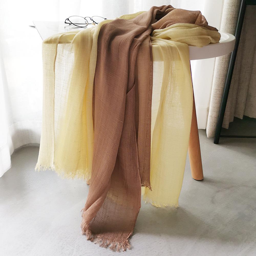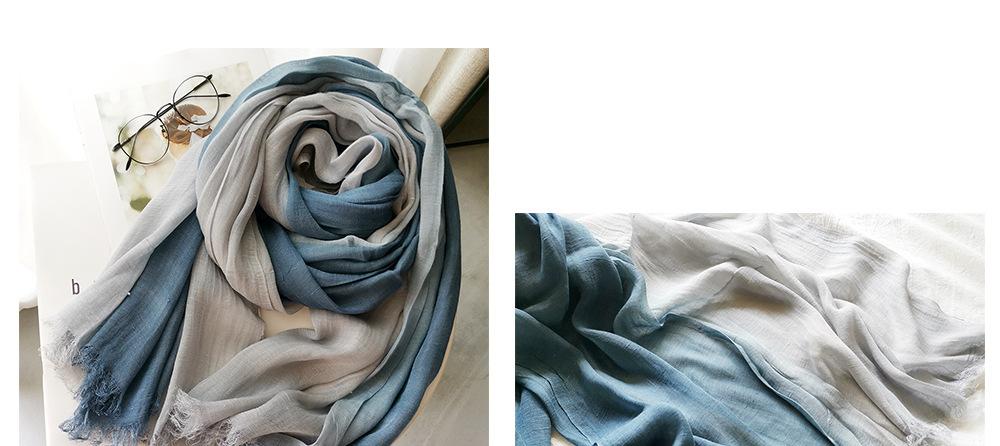 Bufanda Casual de Otoño e Invierno de Algodón y Lino para Mujer, Bufanda de Seda Degradada con Combinación de Colores Lino, Chal Versátil de Hilo de Bambú para Mujer Japonesa y Coreana
