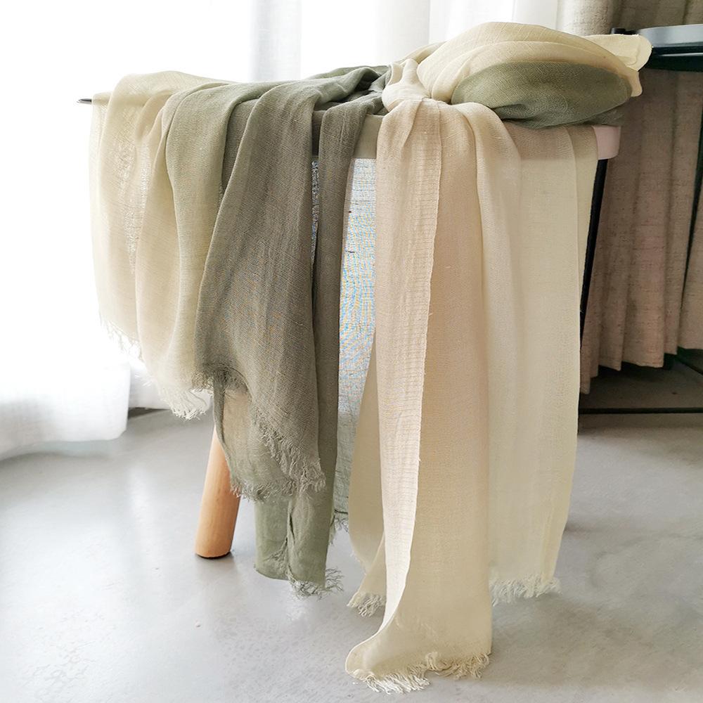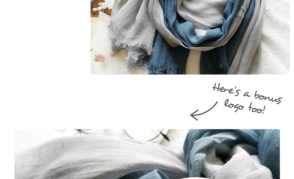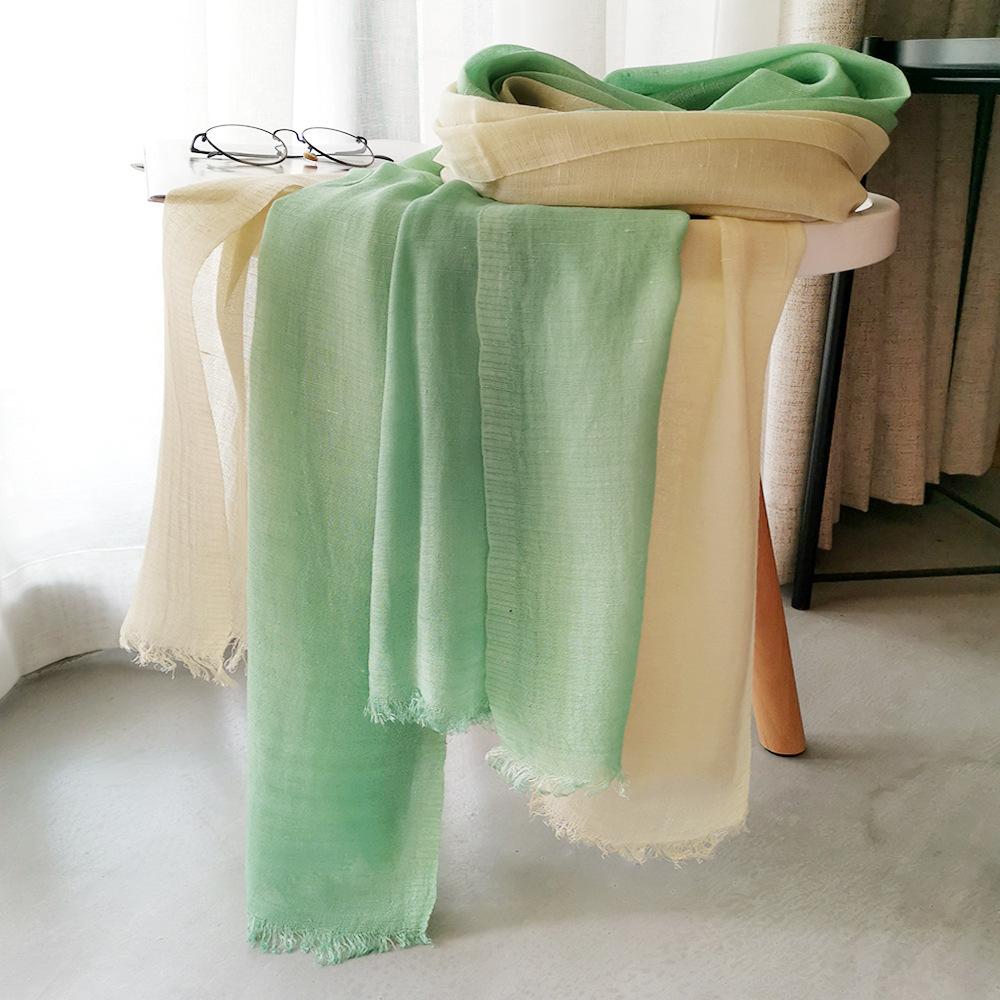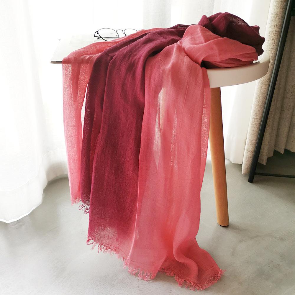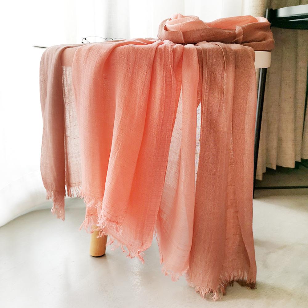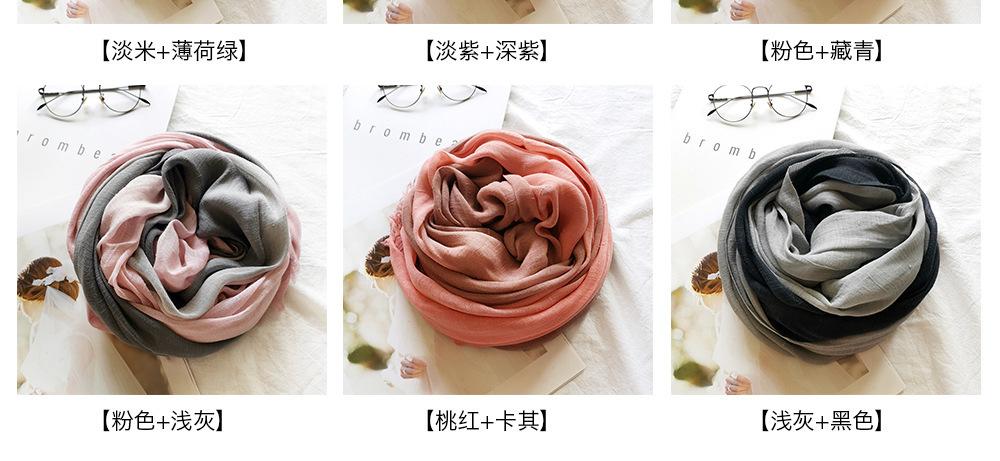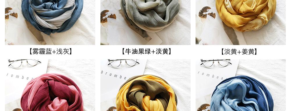 Bufanda Casual de Otoño e Invierno de Algodón y Lino para Mujer, Bufanda de Seda Degradada con Combinación de Colores Lino, Chal Versátil de Hilo de Bambú para Mujer Japonesa y Coreana