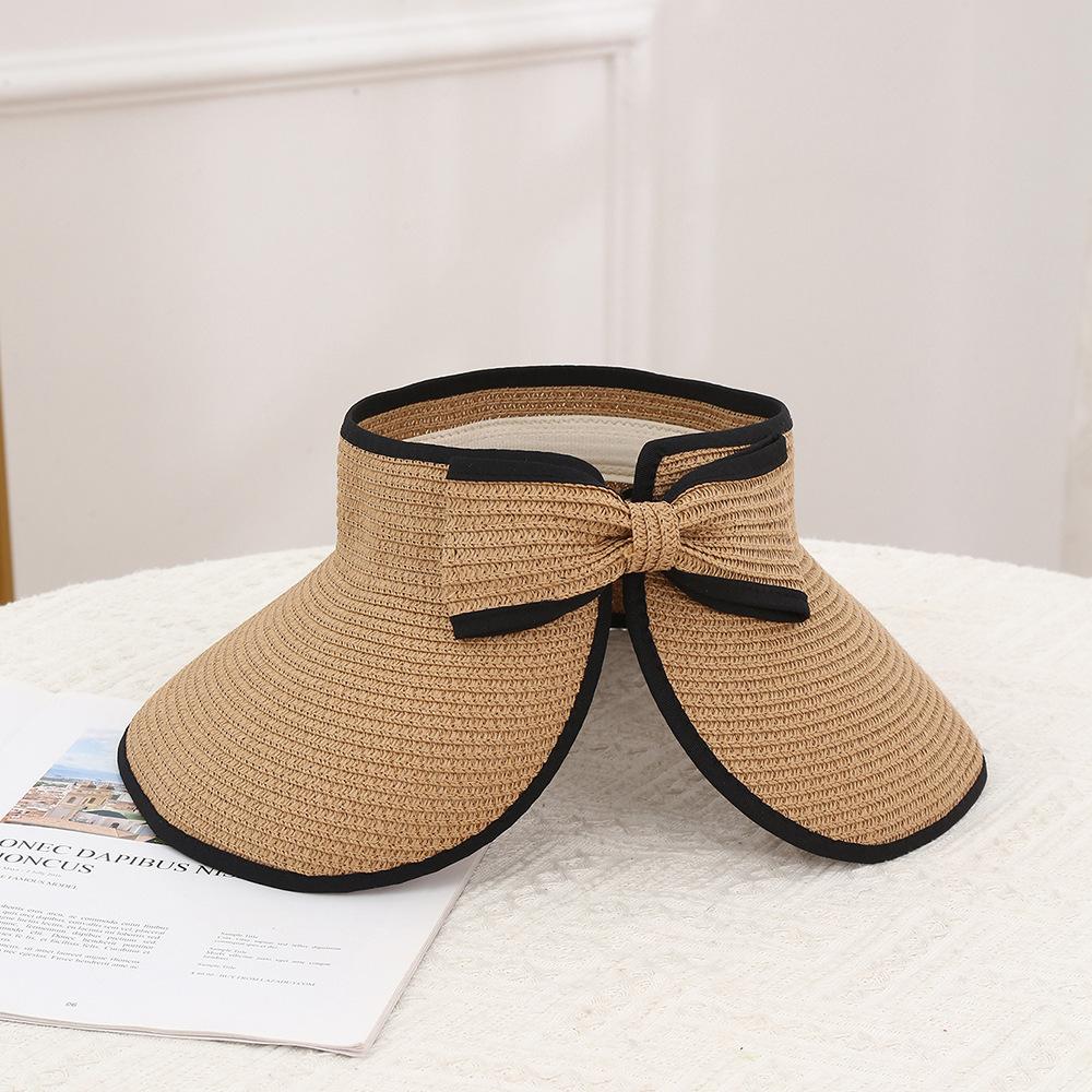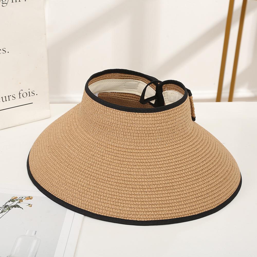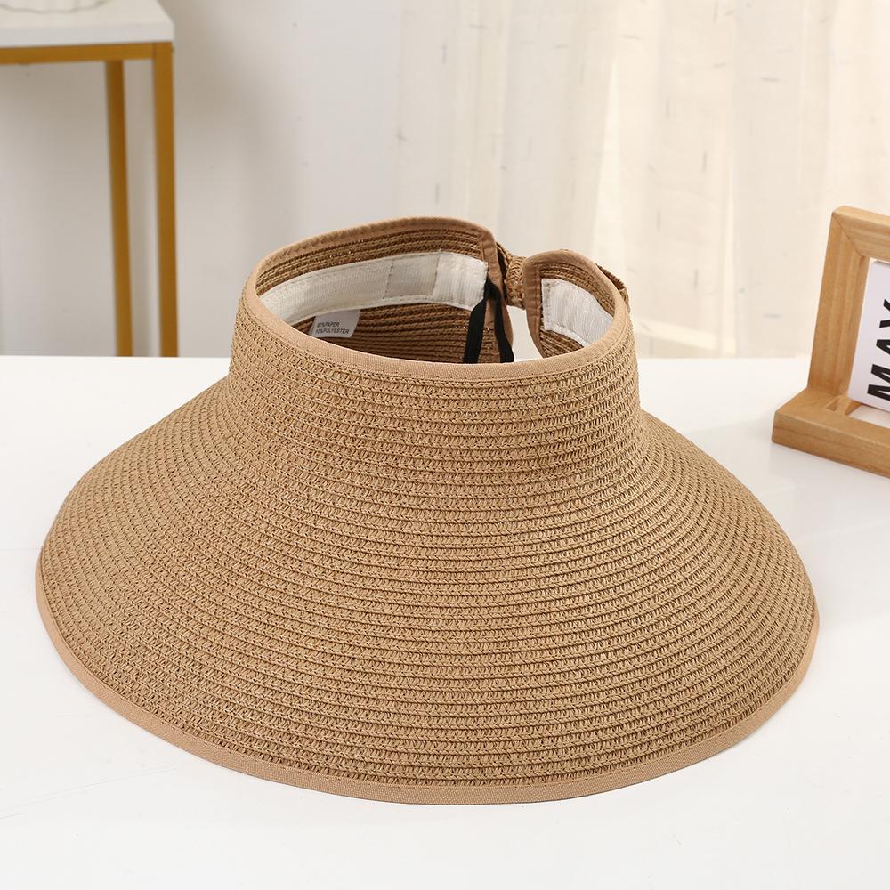 Sombrero para el sol nuevo de primavera y verano para mujer que puede usar cola de caballo, sombrero transpirable de copa vacía, sombrero para el sol para exteriores, sombrero plegable de ala grande