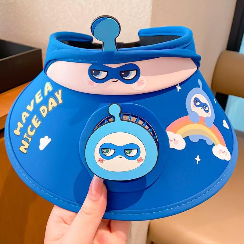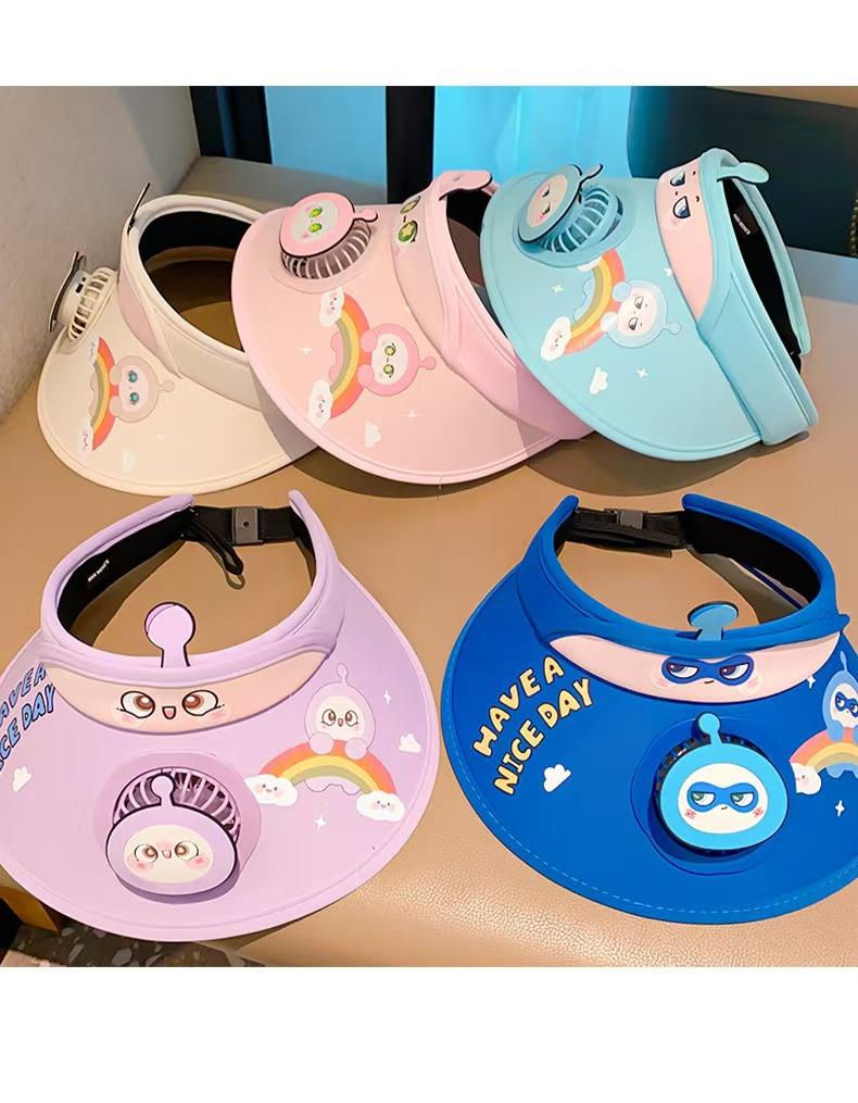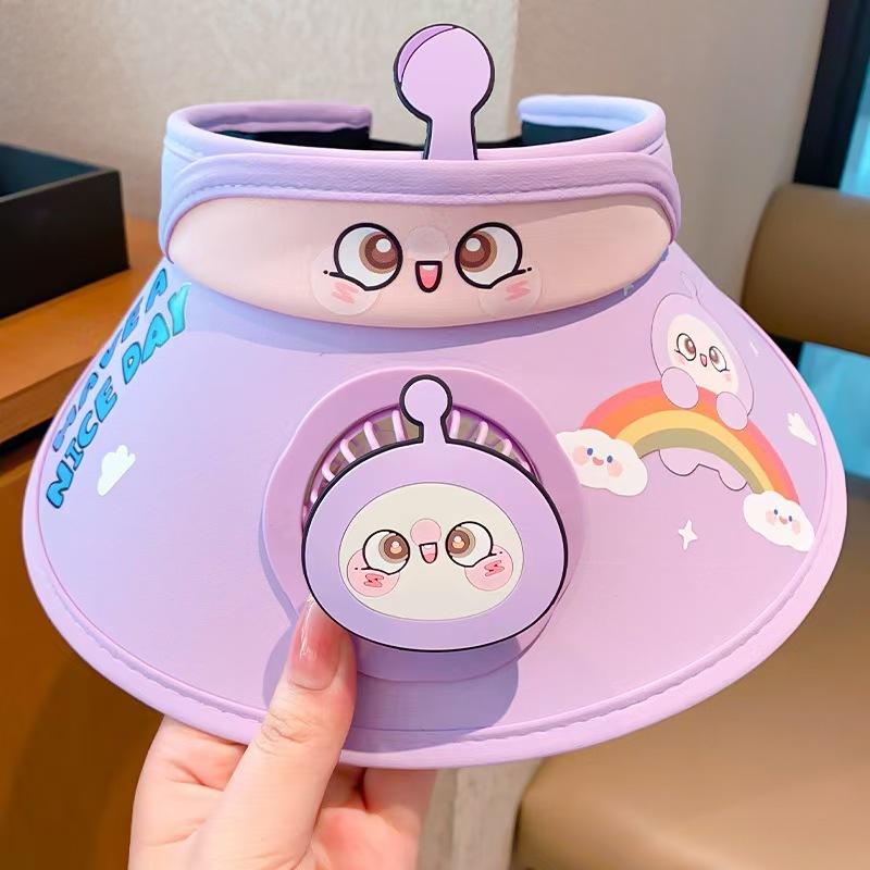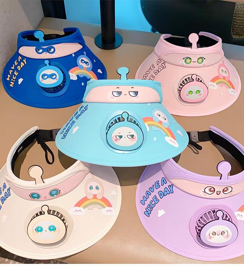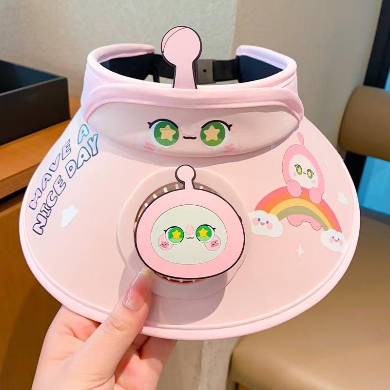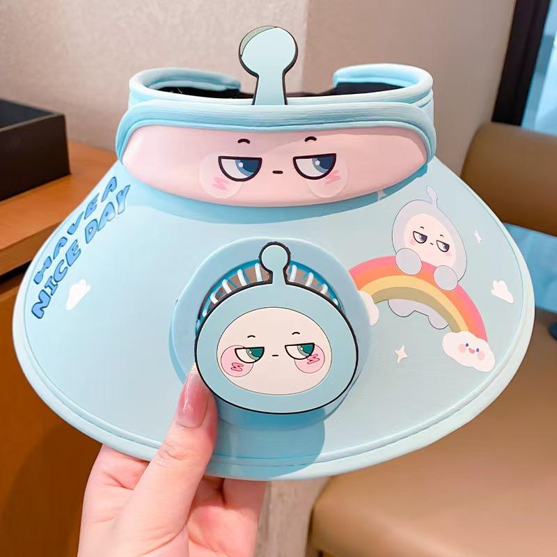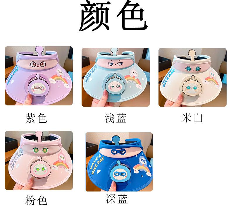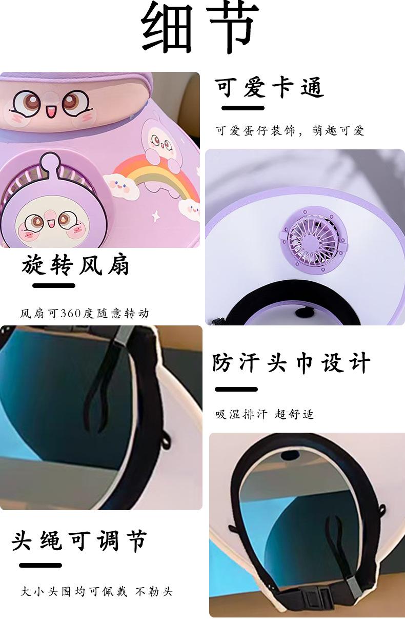 Chapéu de ovo de desenho animado infantil 2024 verão novo estilo chapéu alto vazio com ventilador para mulheres chapéu protetor solar anti-UV para homens