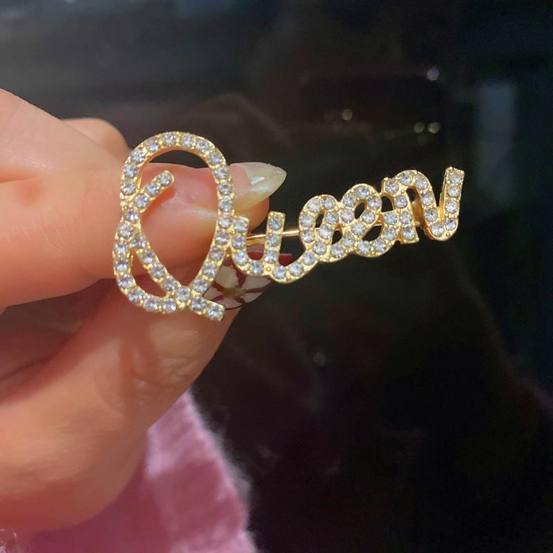 Broche con letras de la reina de las celebridades de Internet para mujer, estilo coreano, lindo, estilo japonés, con hebilla de collar con alfiler distintivo de moda, accesorios con luz anti-corrosión