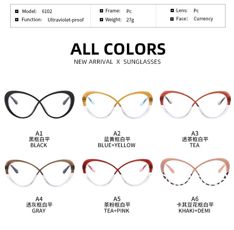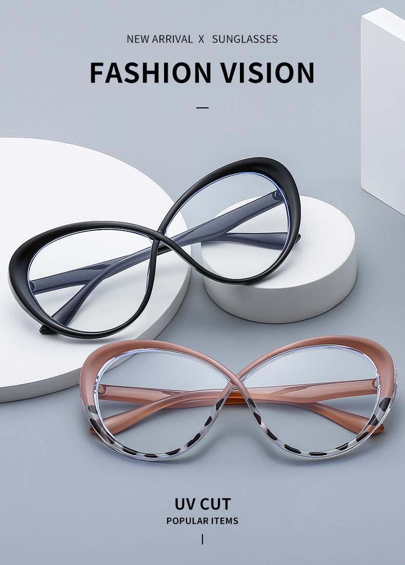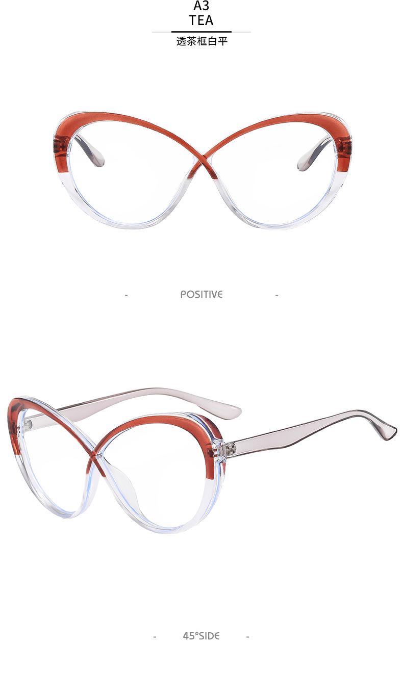 ¡Nuevo marco transfronterizo ojo de gato hembra Europa y los Estados Unidos red calle roja espejo plano comercio exterior gafas anti-azules bisagra dientes!