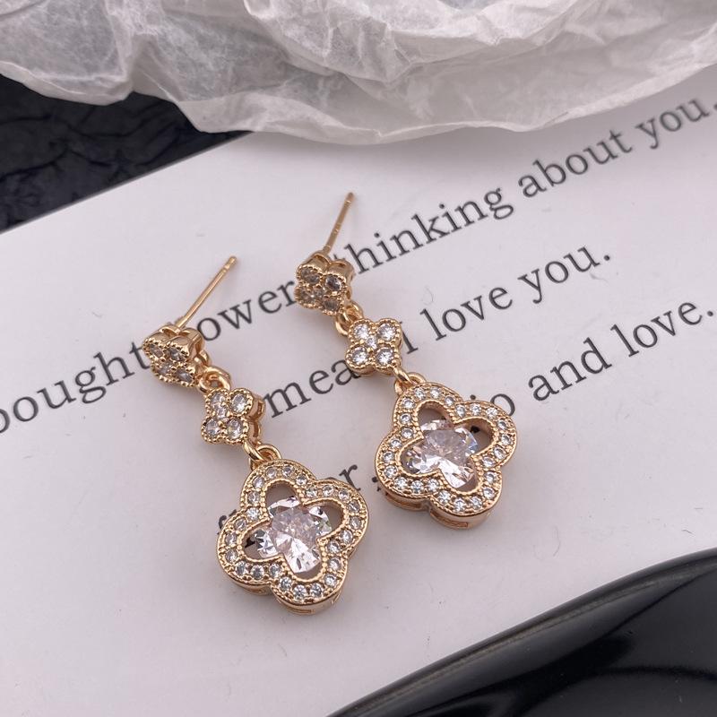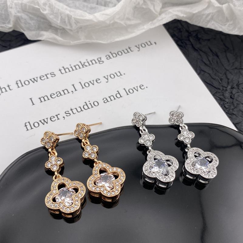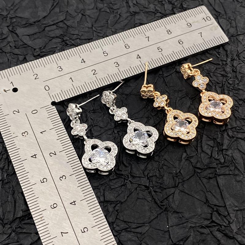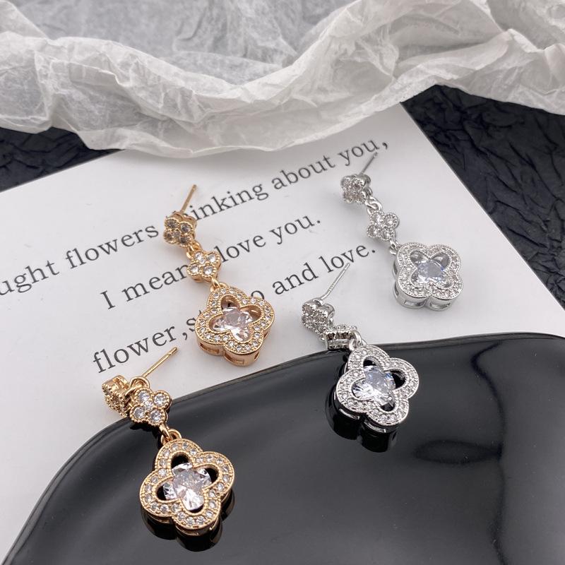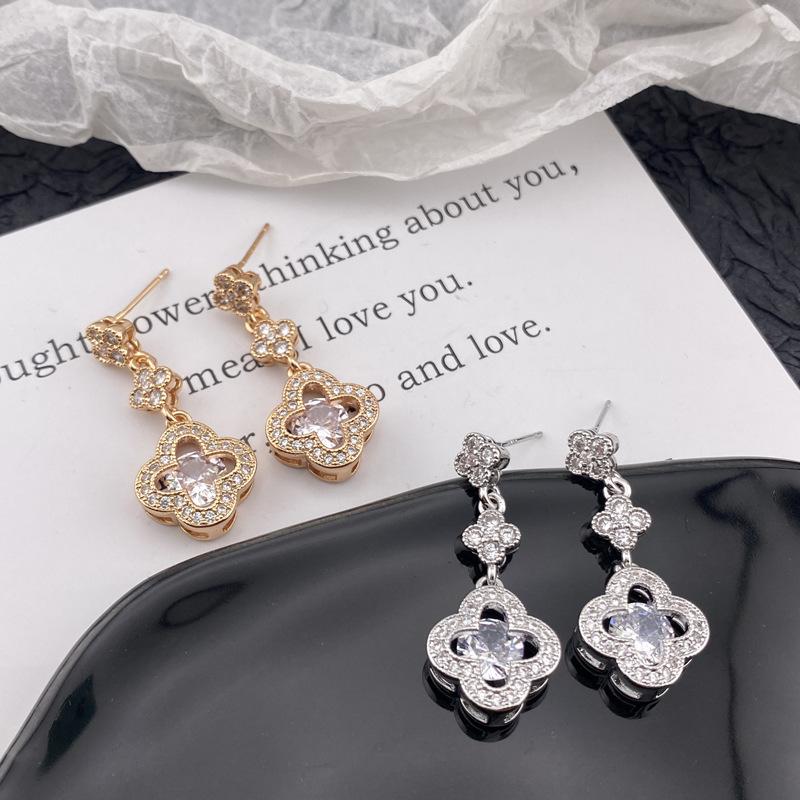 Exquisitos pendientes con microincrustaciones de circonitas y flores de cuatro hojas, modernos, ligeros, lujosos y elegantes, con borlas largas, sencillos y de alta calidad.