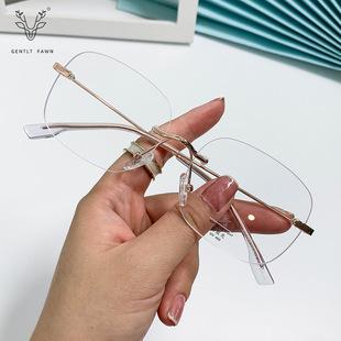 S31763 nuevas gafas anti-luz azul de moda sin marco con borde cortado para damas, ligeras, con efecto espejo plano y marco liso