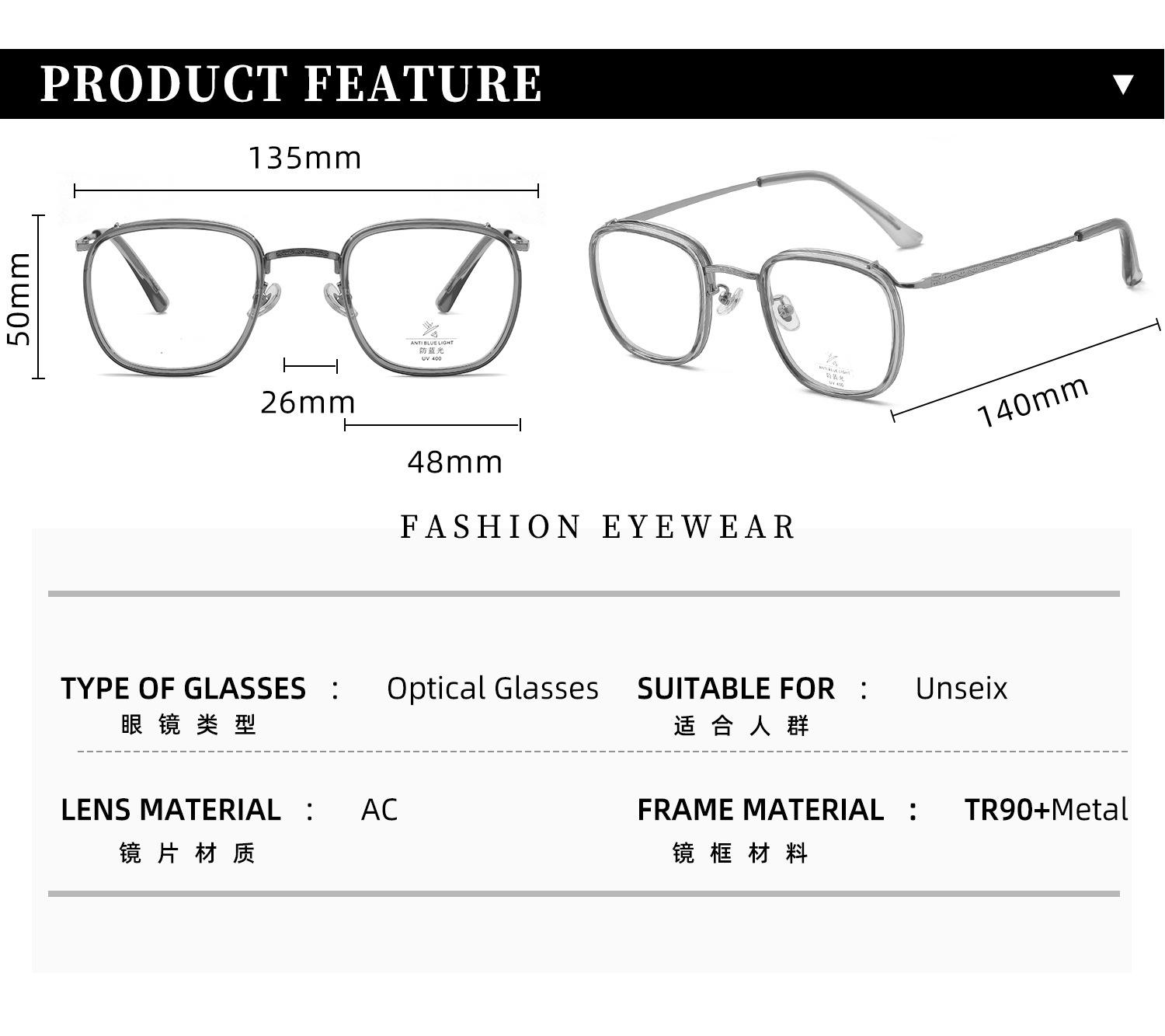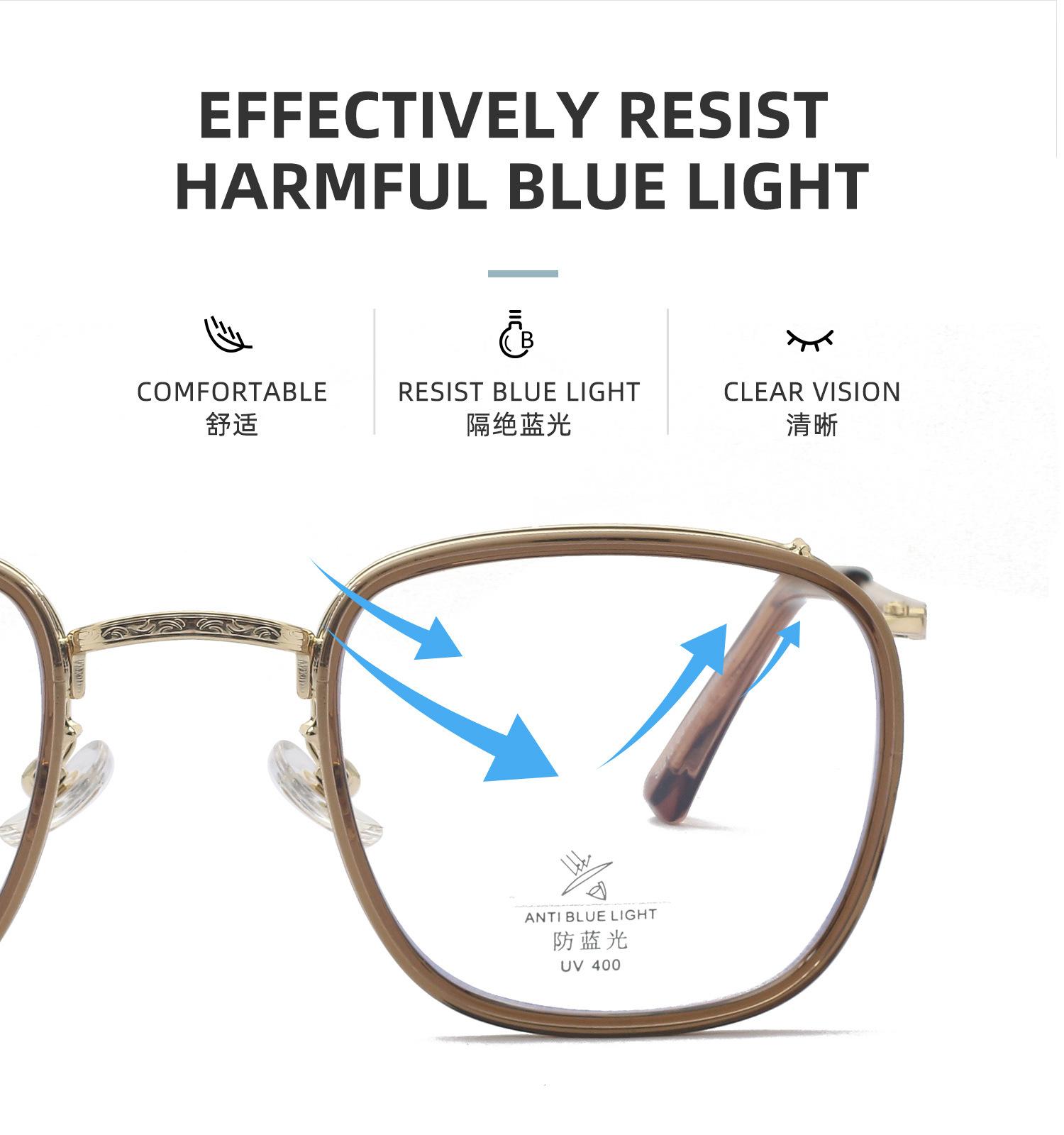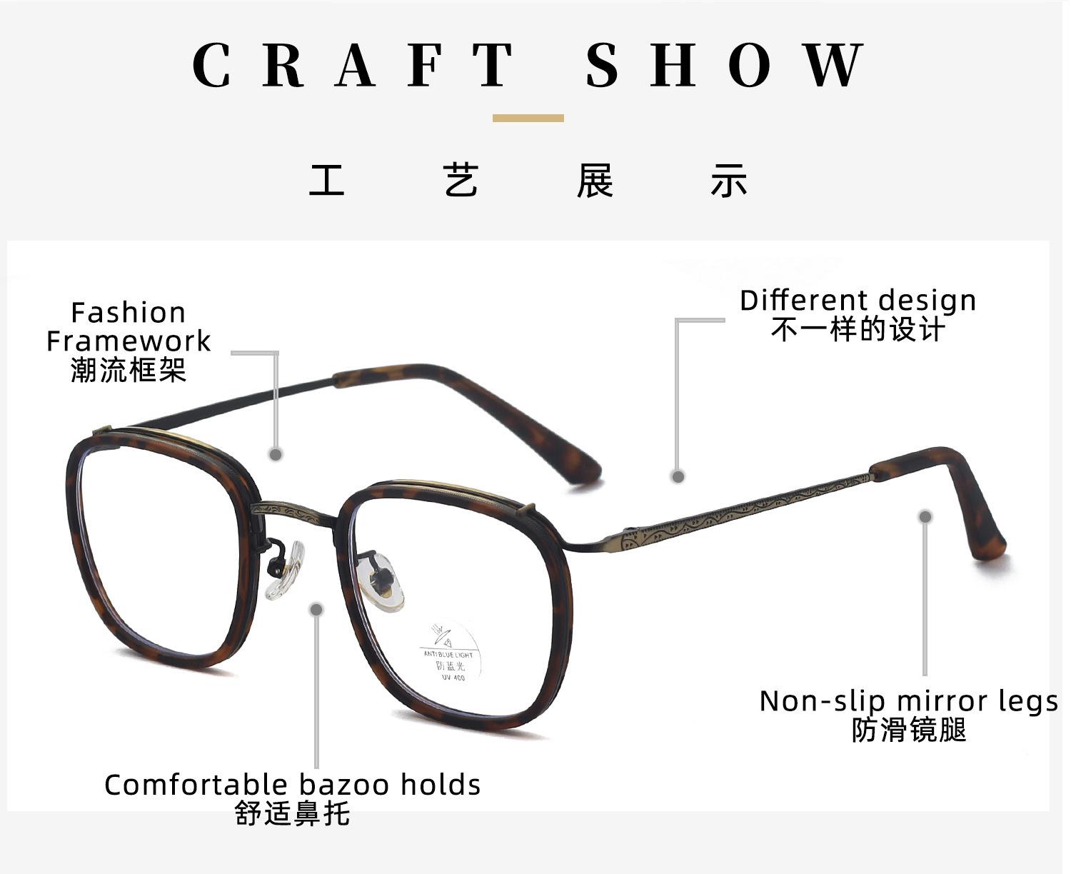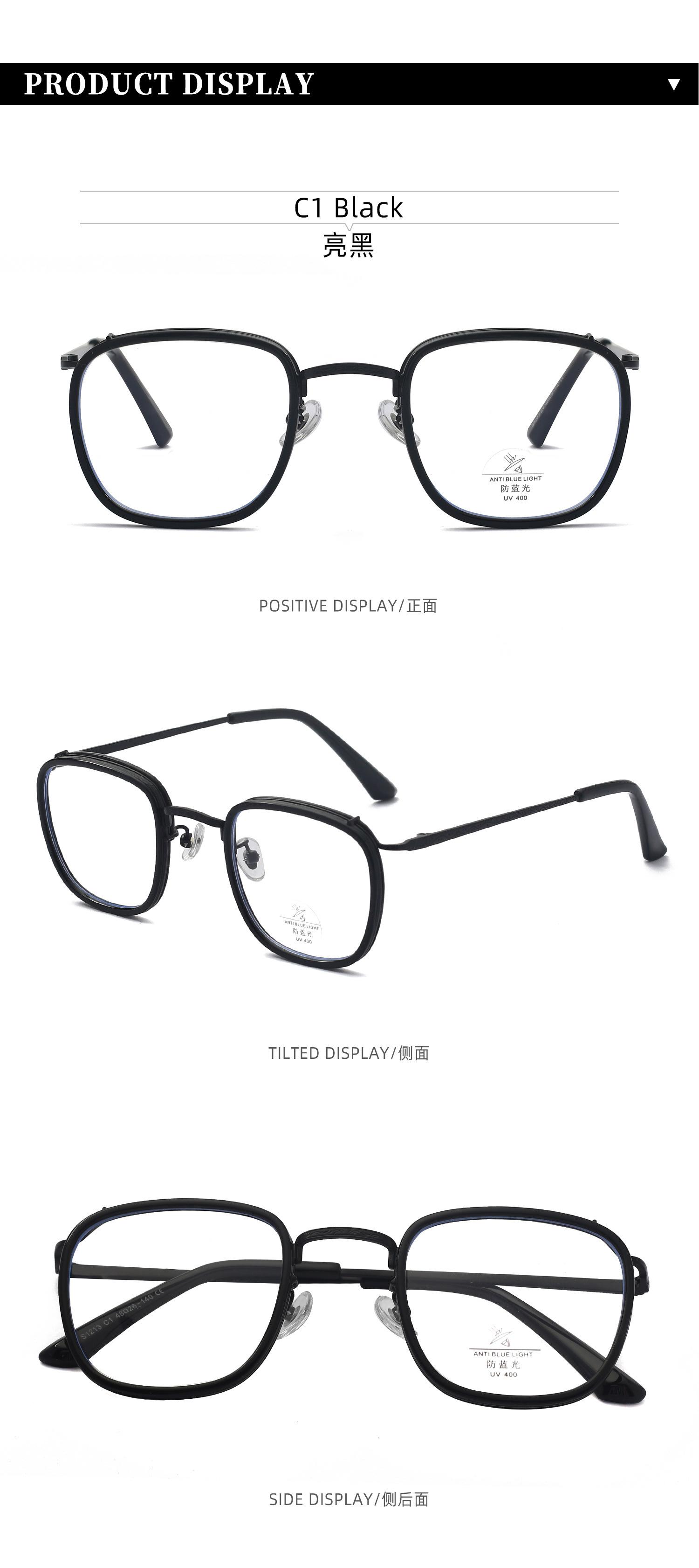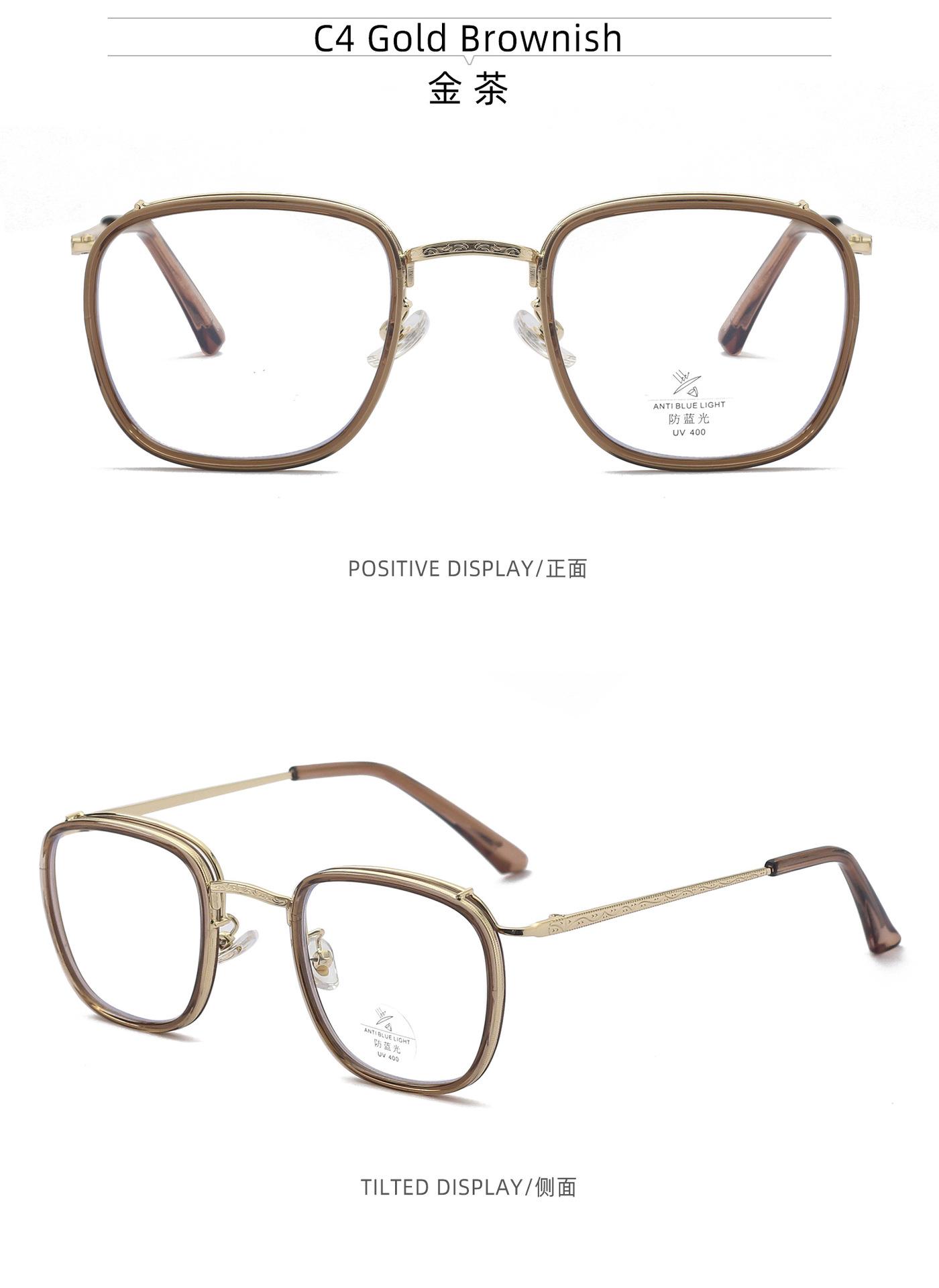 1001 2022 nuevas gafas de montura metálica grande con protección contra la luz azul, monturas planas que se pueden combinar con gafas para miopía para hombres